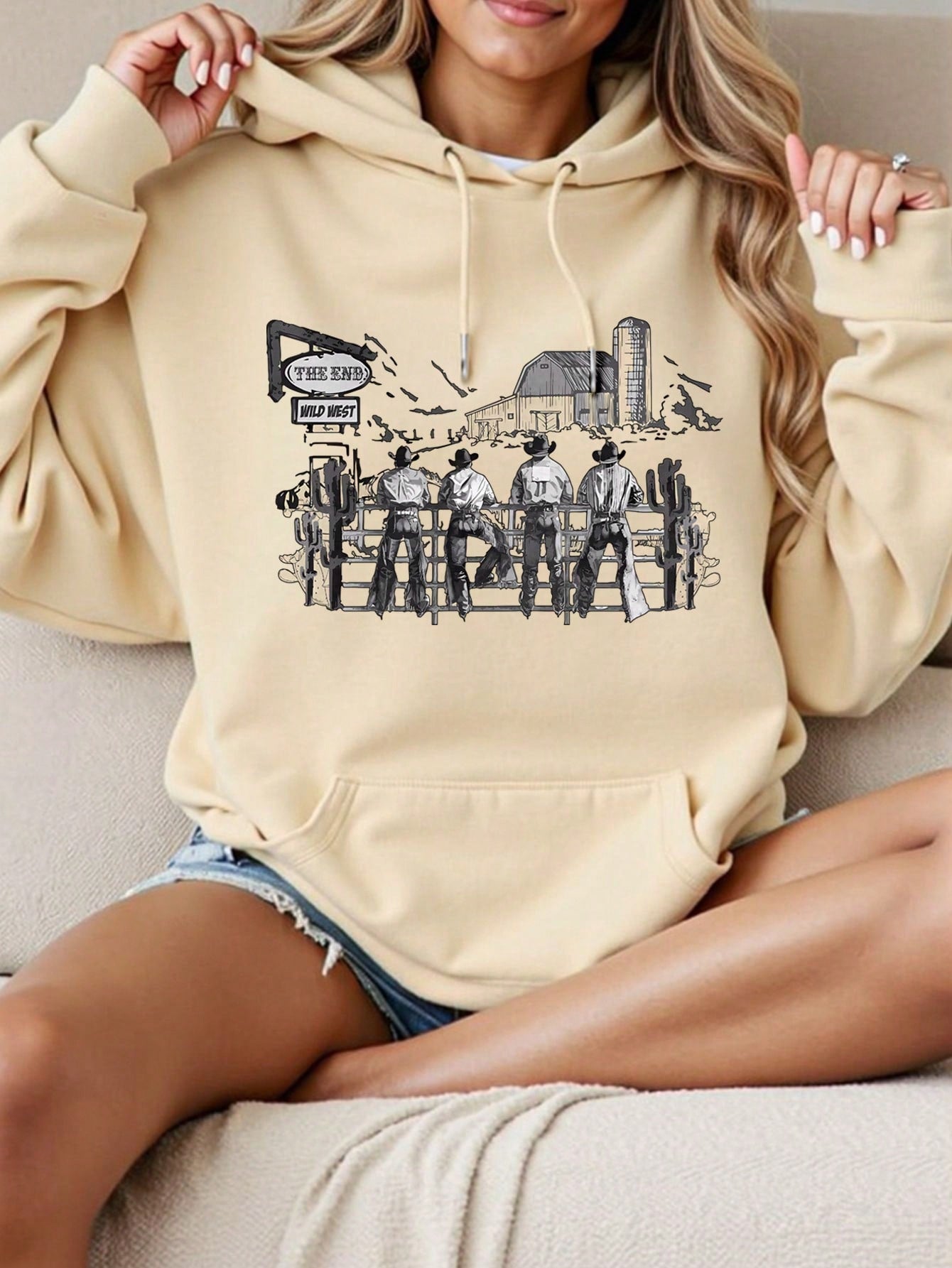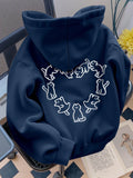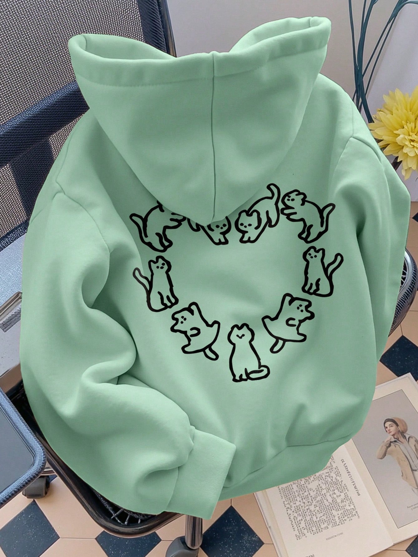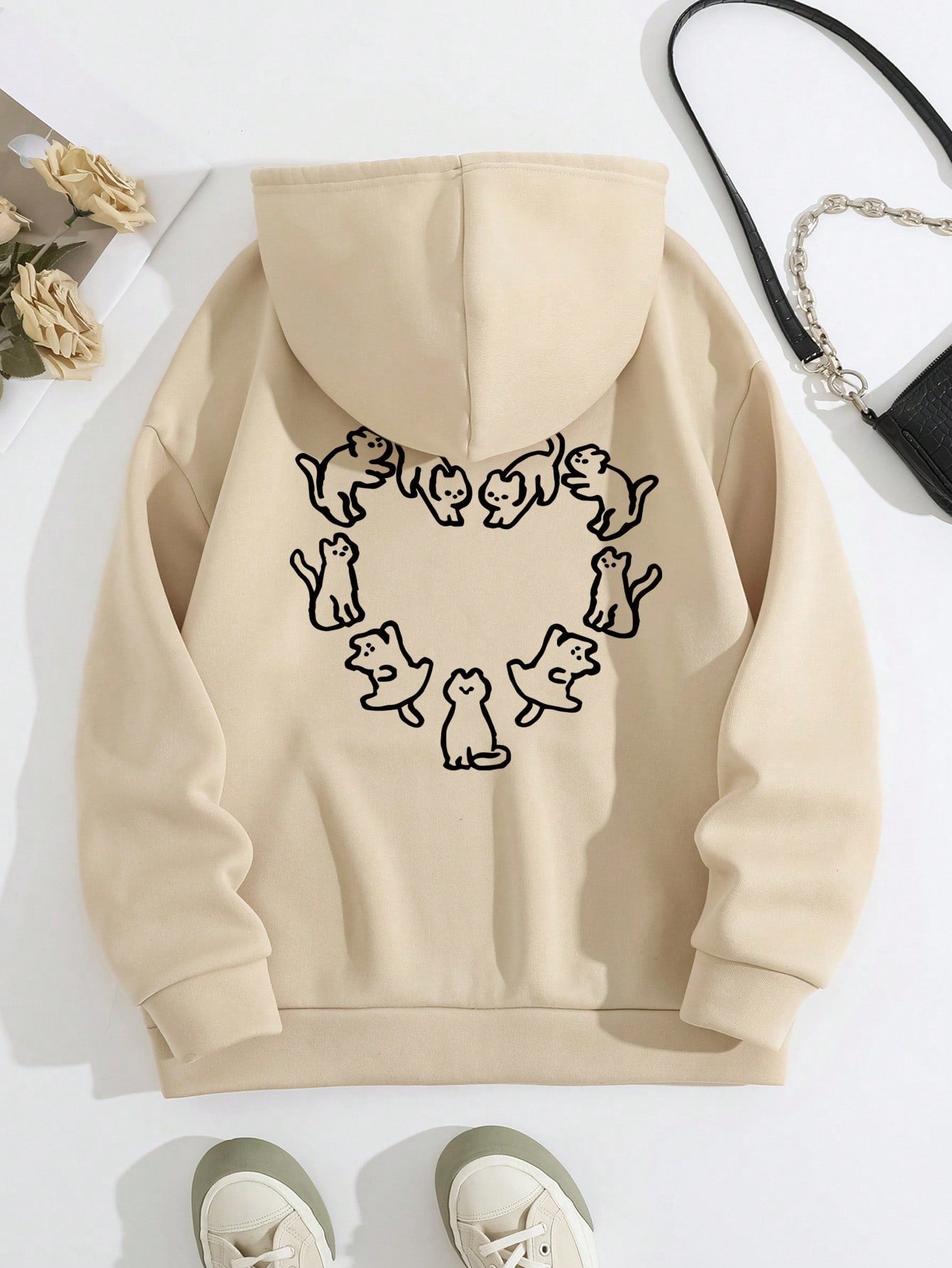 Cozy Cat Love: Heart Print Casual Hoodie for Autumn & Winter
