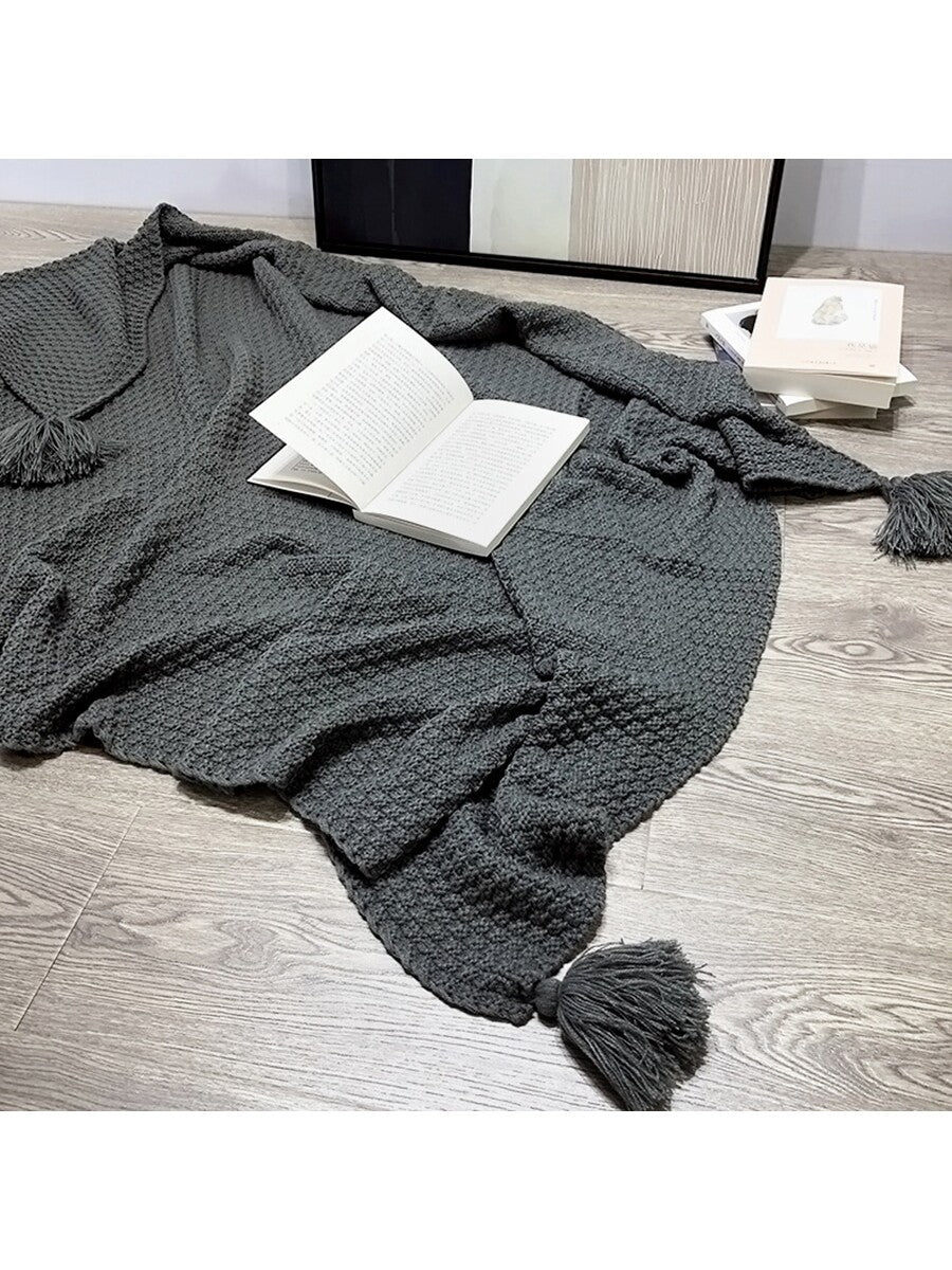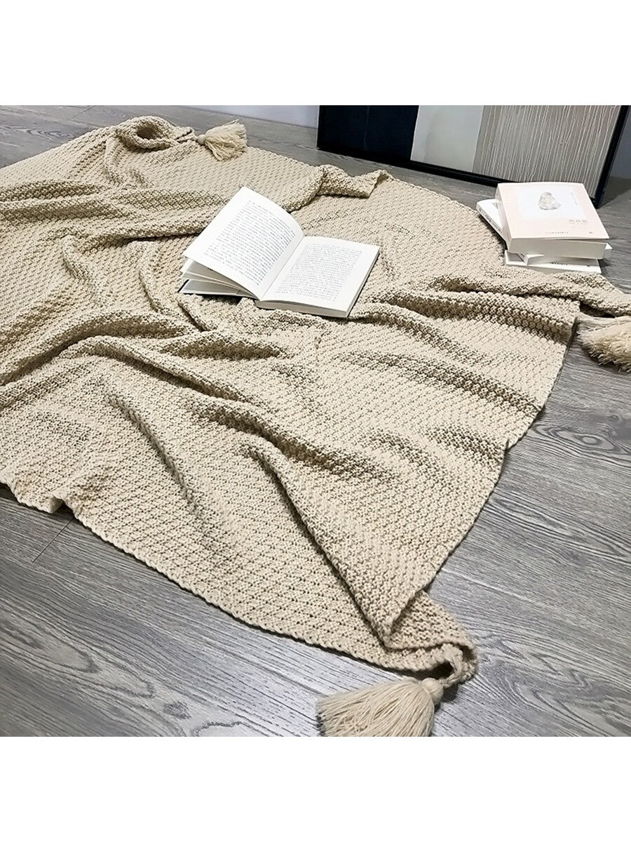 Cozy Chic: Fringed Knitted Blanket for Sofa, Nap, and Air Conditioner