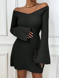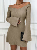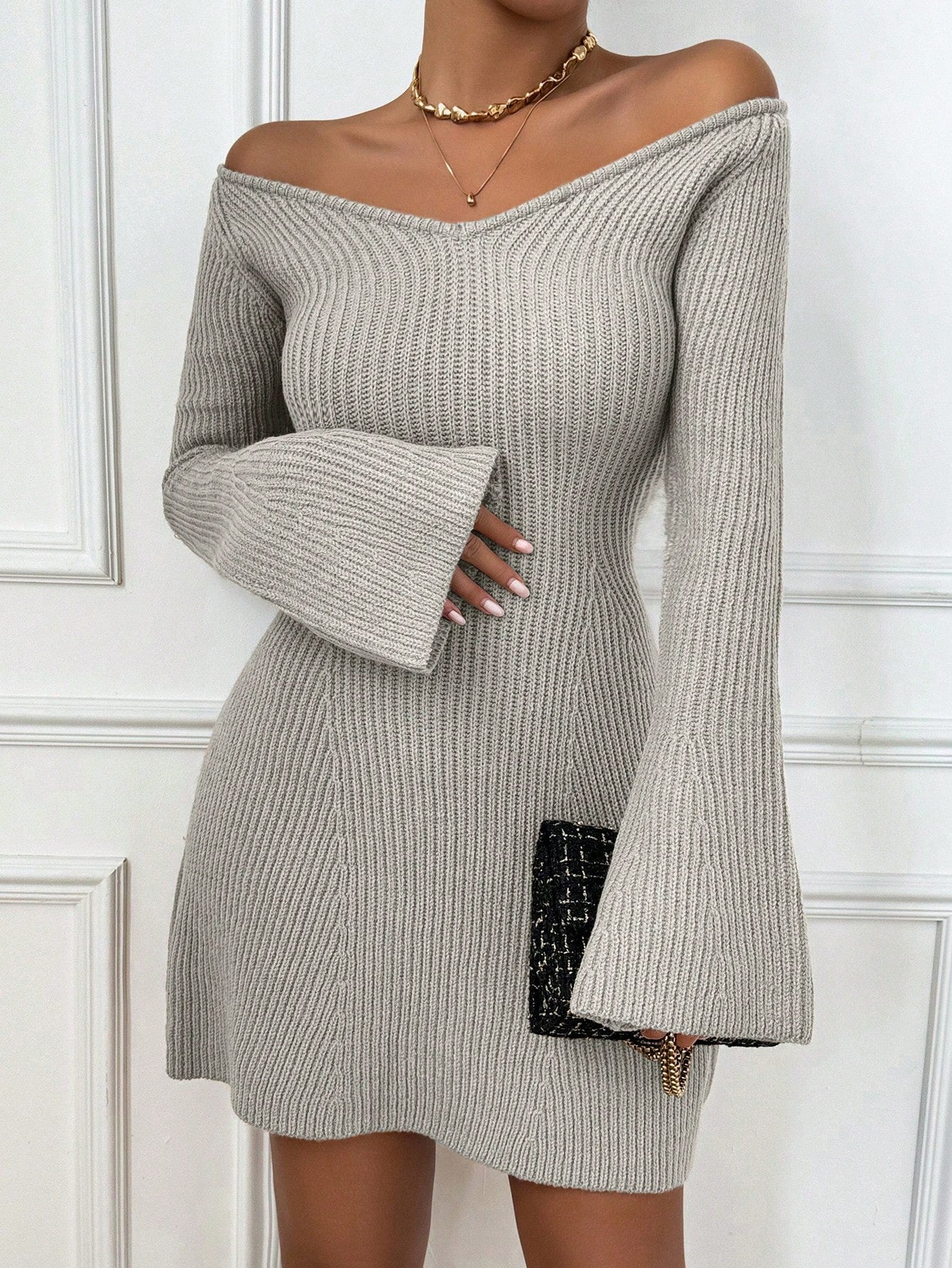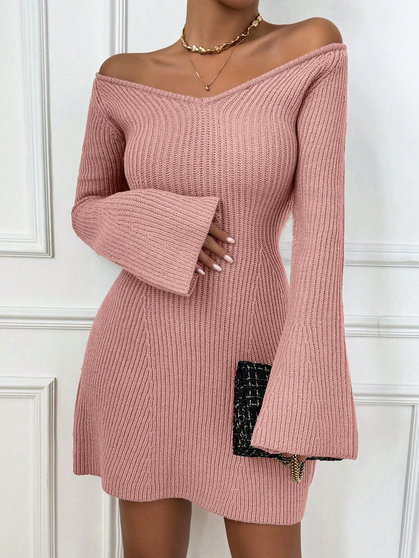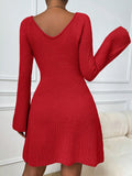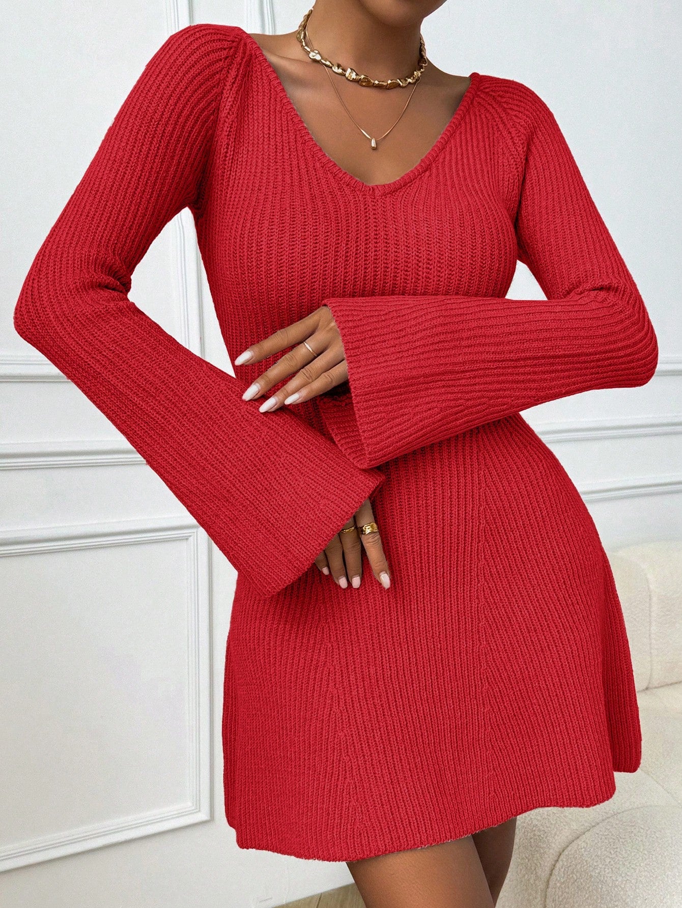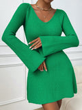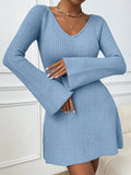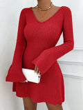 Cozy Chic: V-Neck Bell Sleeve Sweater Dress for Effortless Autumn Style