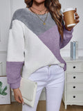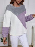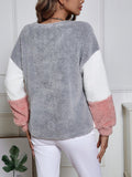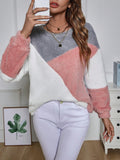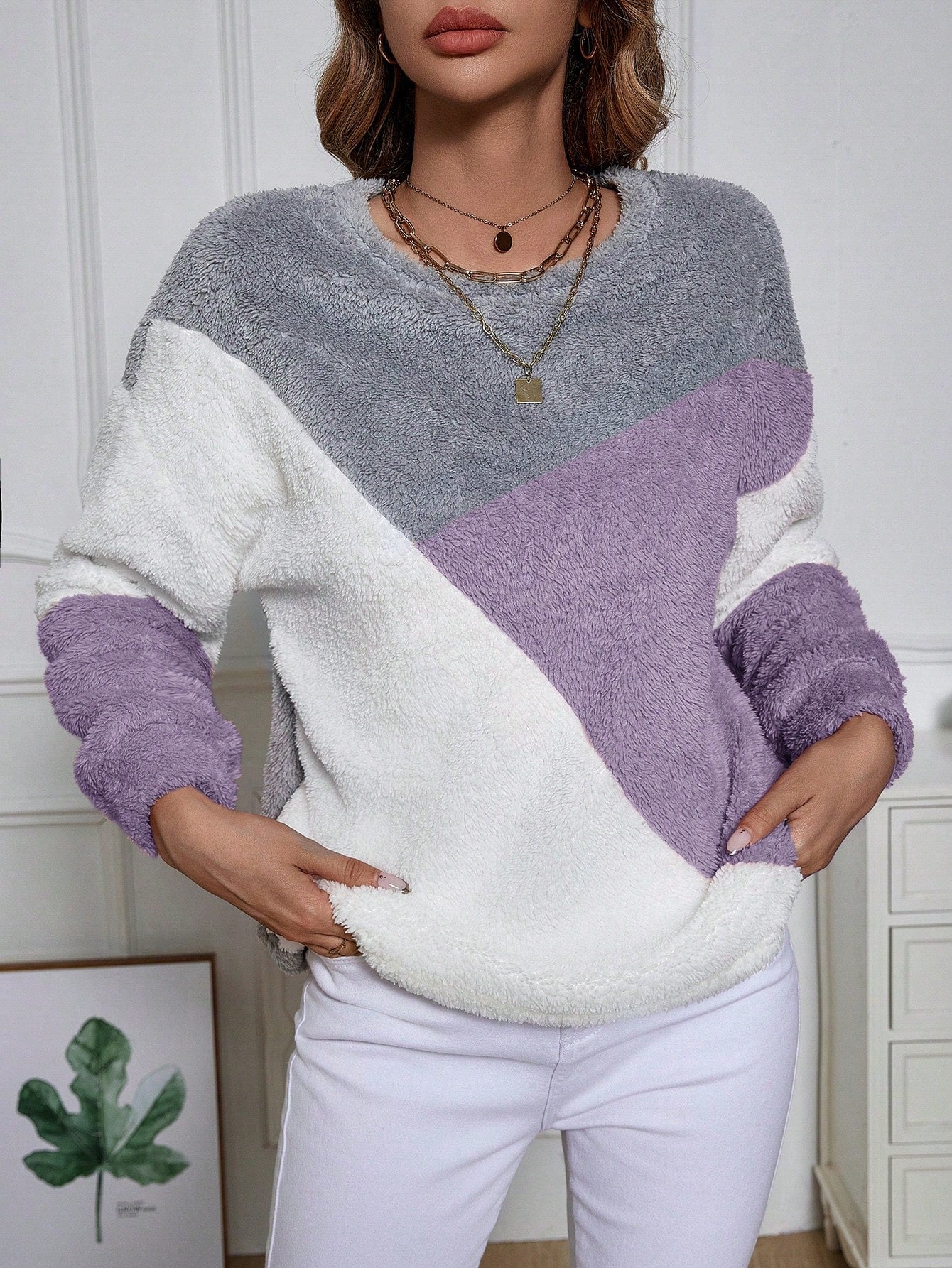 Cozy Chic: Women's Color Block Plush Drop Shoulder Sweatshirt