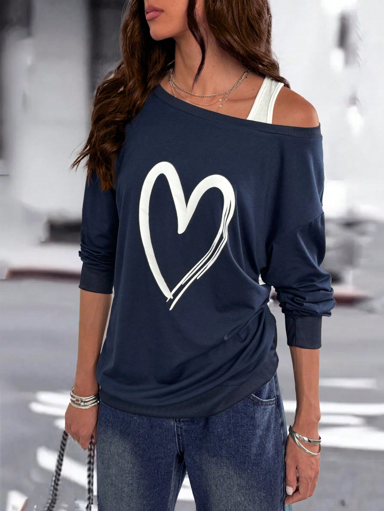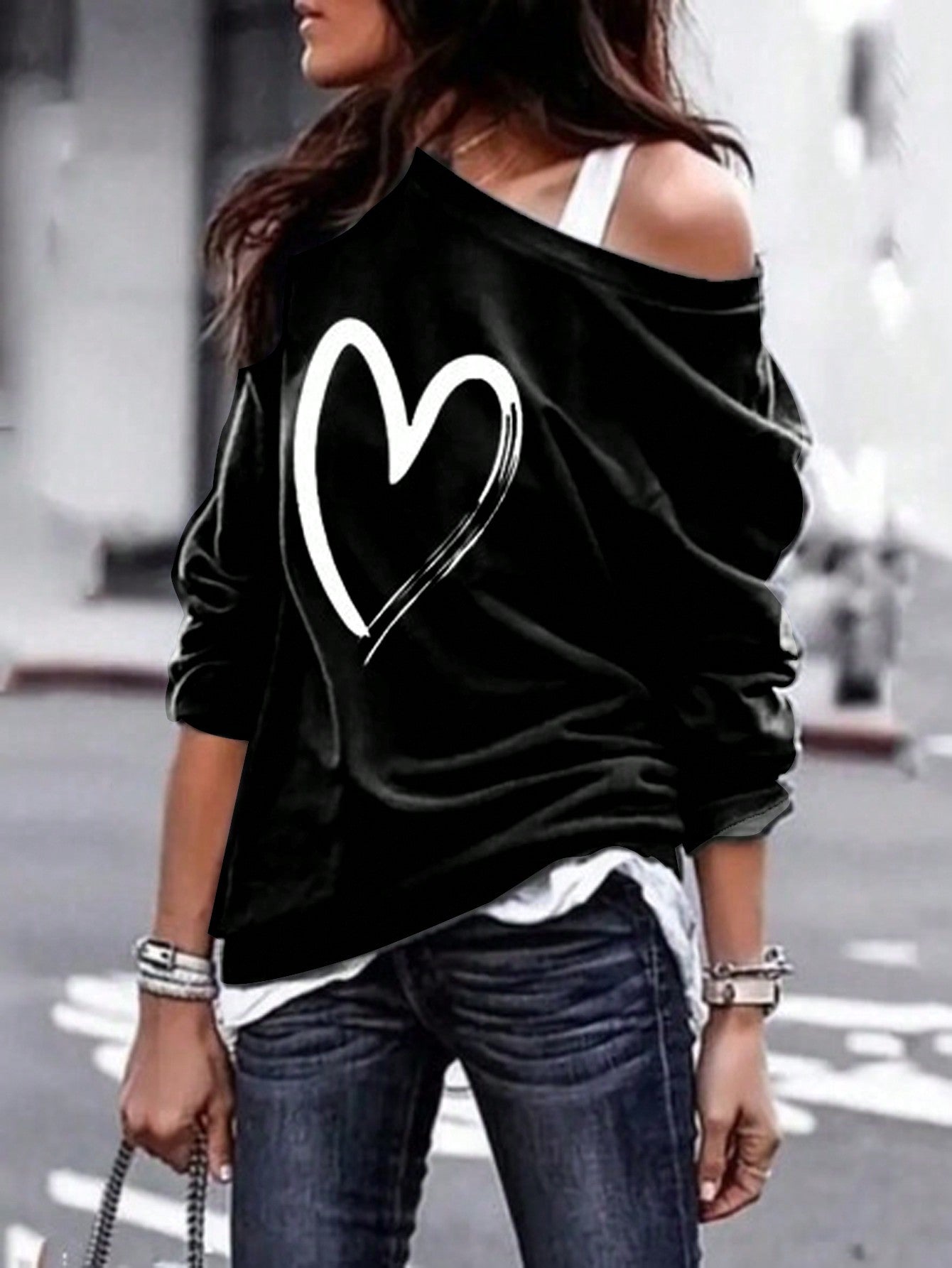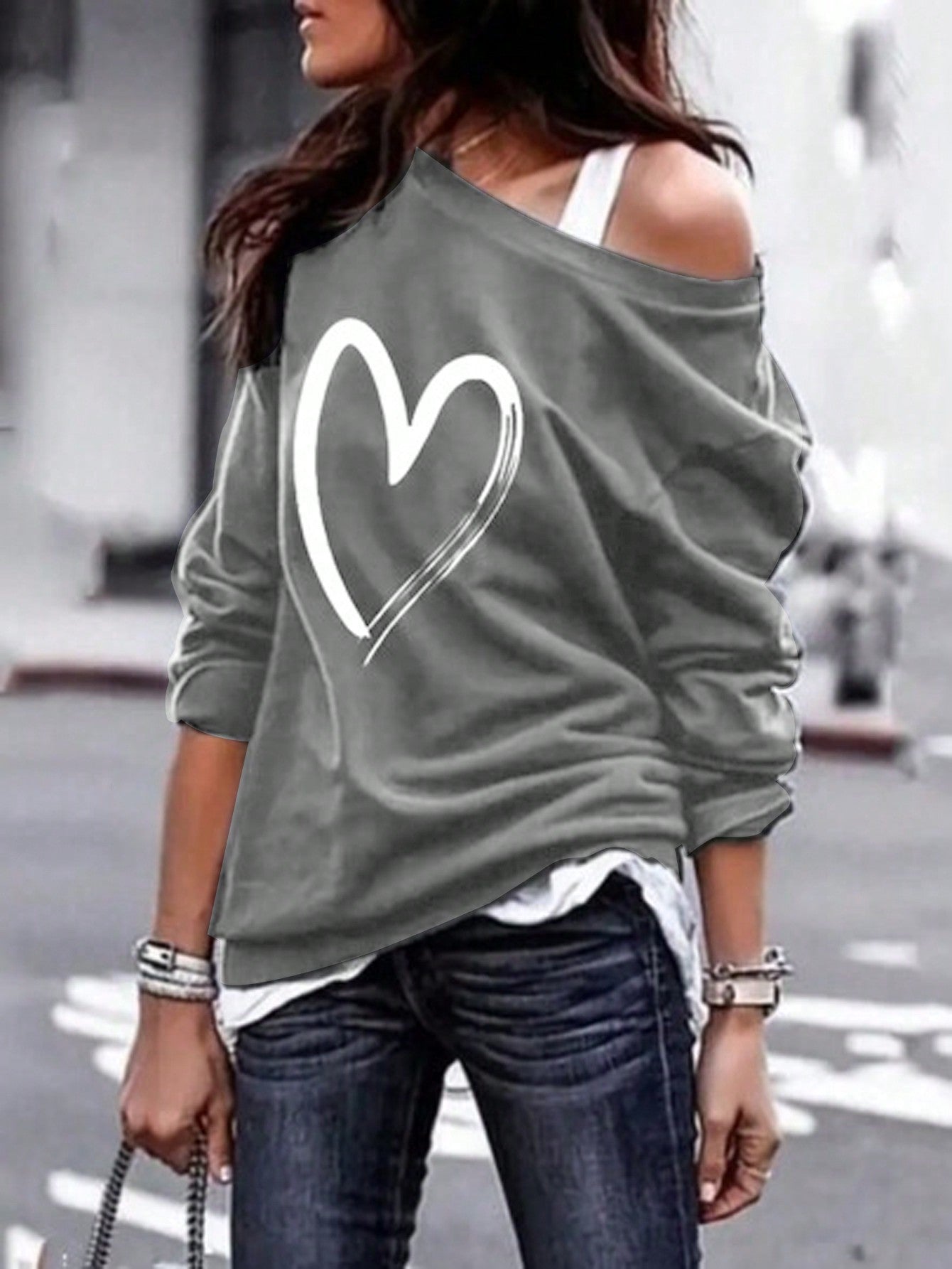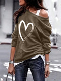 Cozy Chic: Women's Stylish Oversized Heart Print Casual Sweatshirt