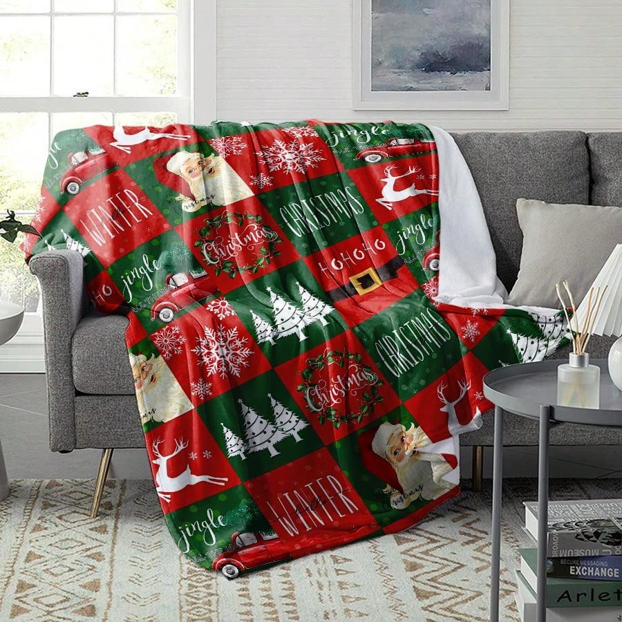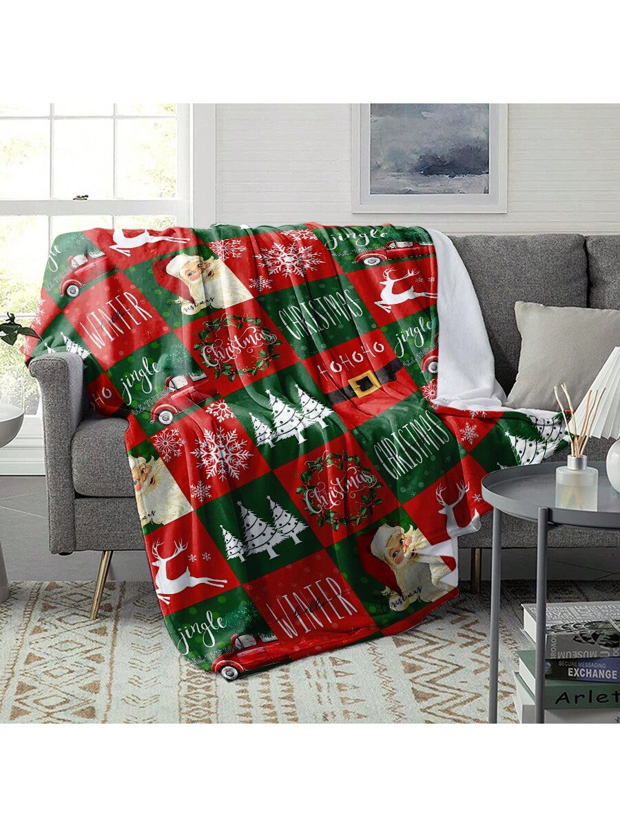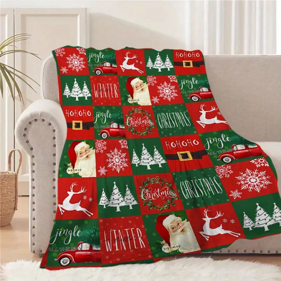 Cozy Christmas Cheer: Santa Claus Flannel Blanket with Festive Tree Pattern