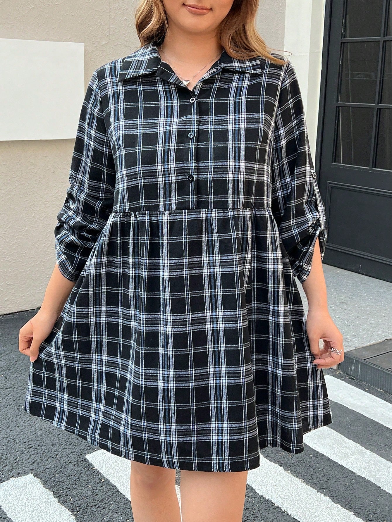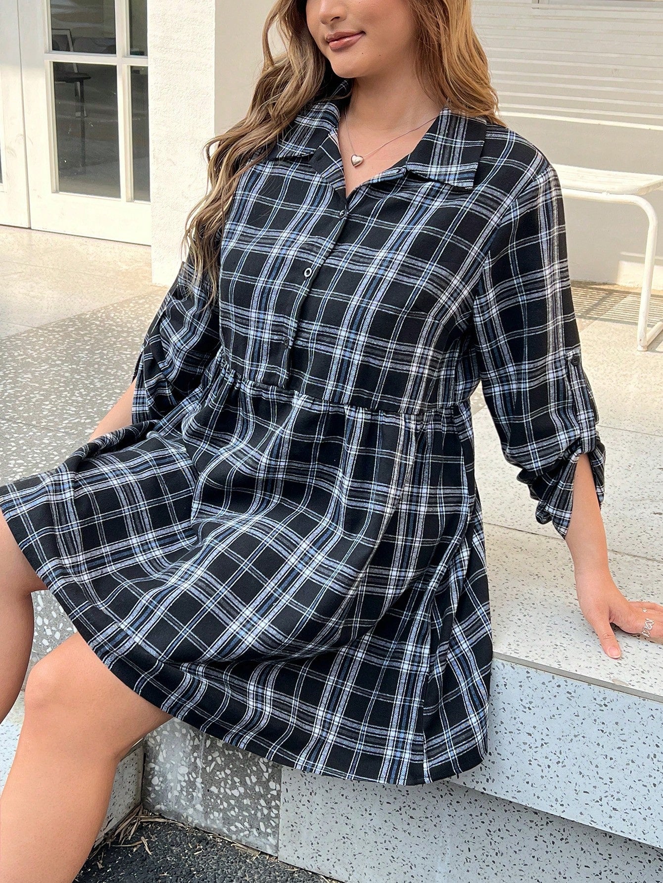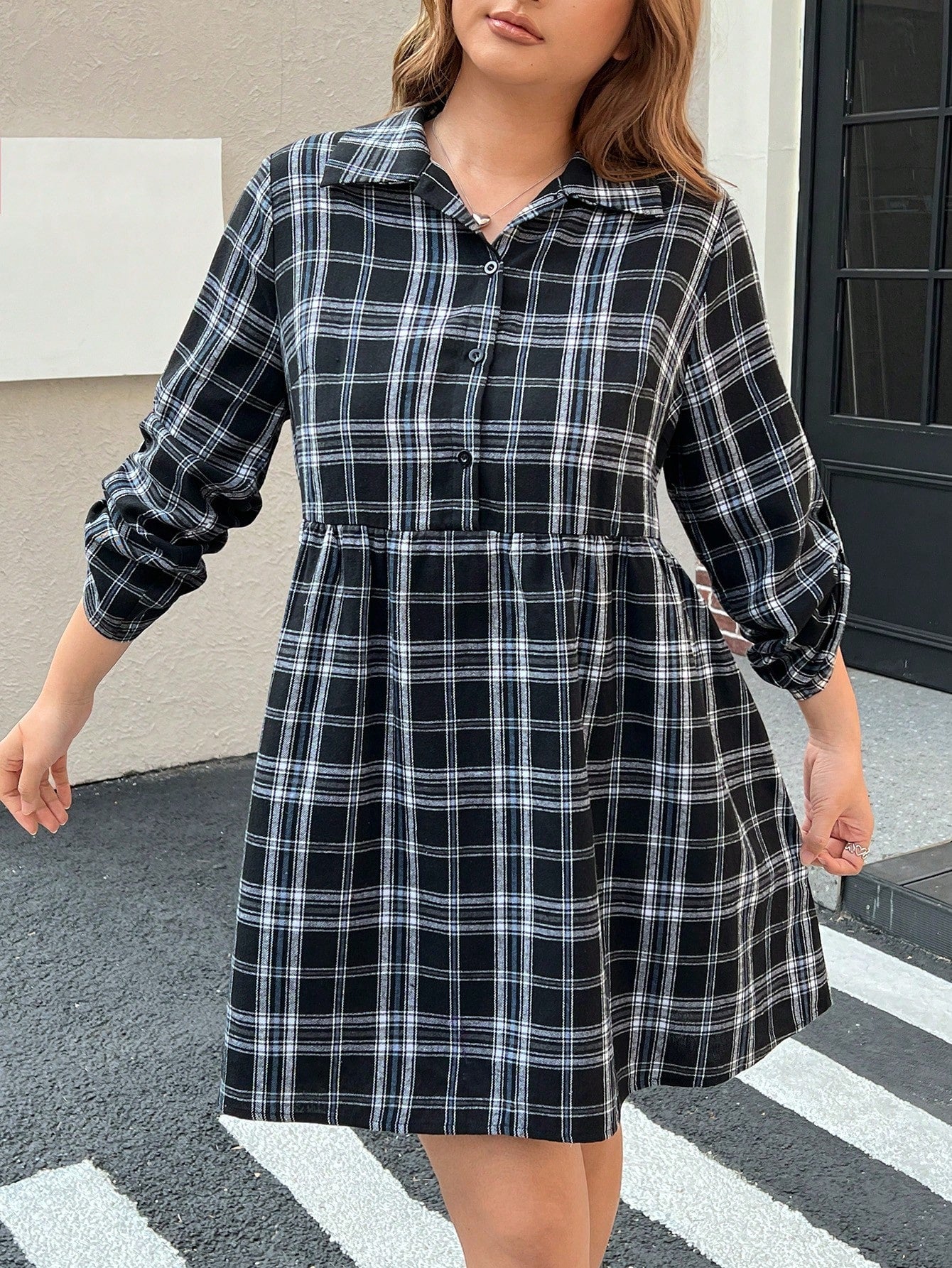 Cozy Christmas Plaid Plus Size Shirt Dress – Perfect for Festive Gatherings and Everyday Comfort!