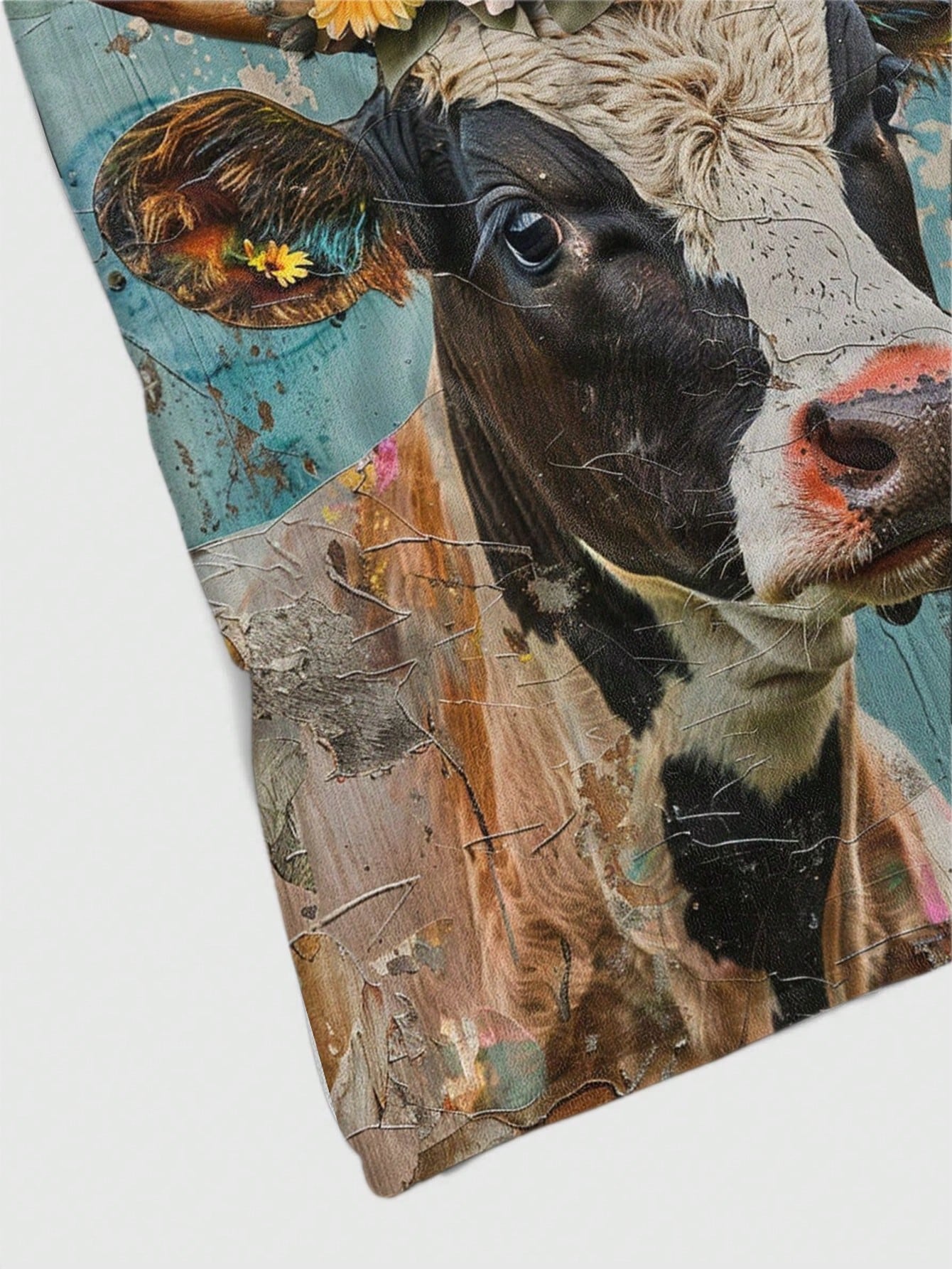 Experience ultimate comfort with our Cozy Cow Print Flannel Sofa Blanket. Made of high-quality flannel, this multipurpose gift blanket is perfect for any occasion - whether it's cuddling up at home, staying cozy in the office, or traveling in style. Its softness and versatility make it a must-have for any cozy setting.