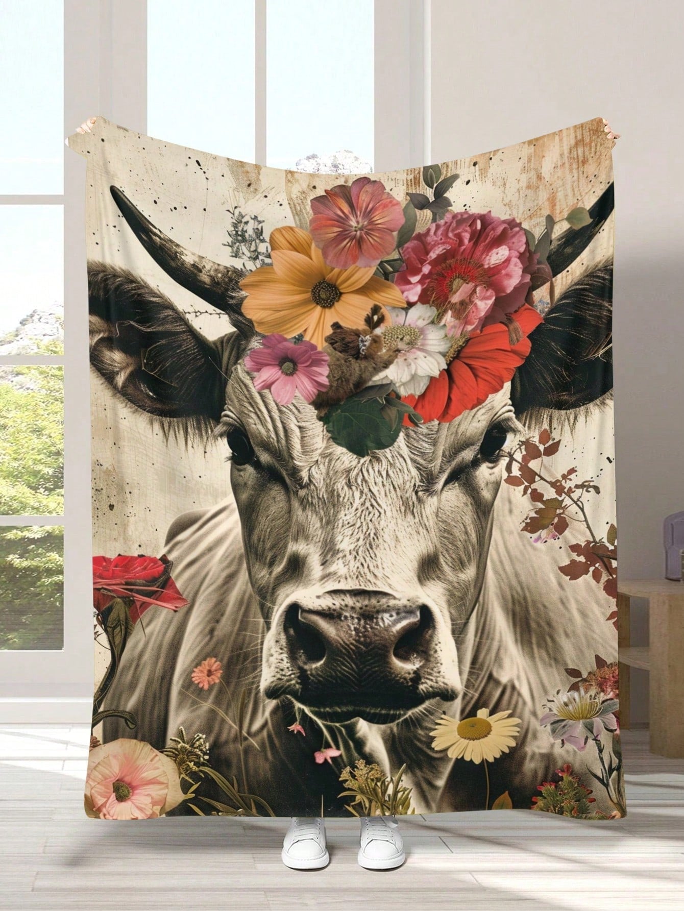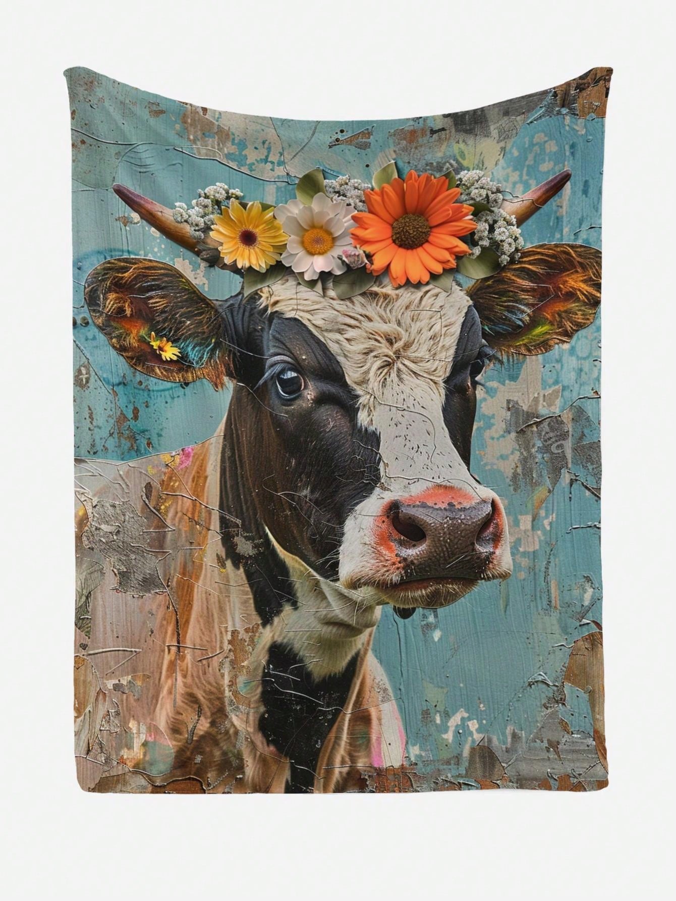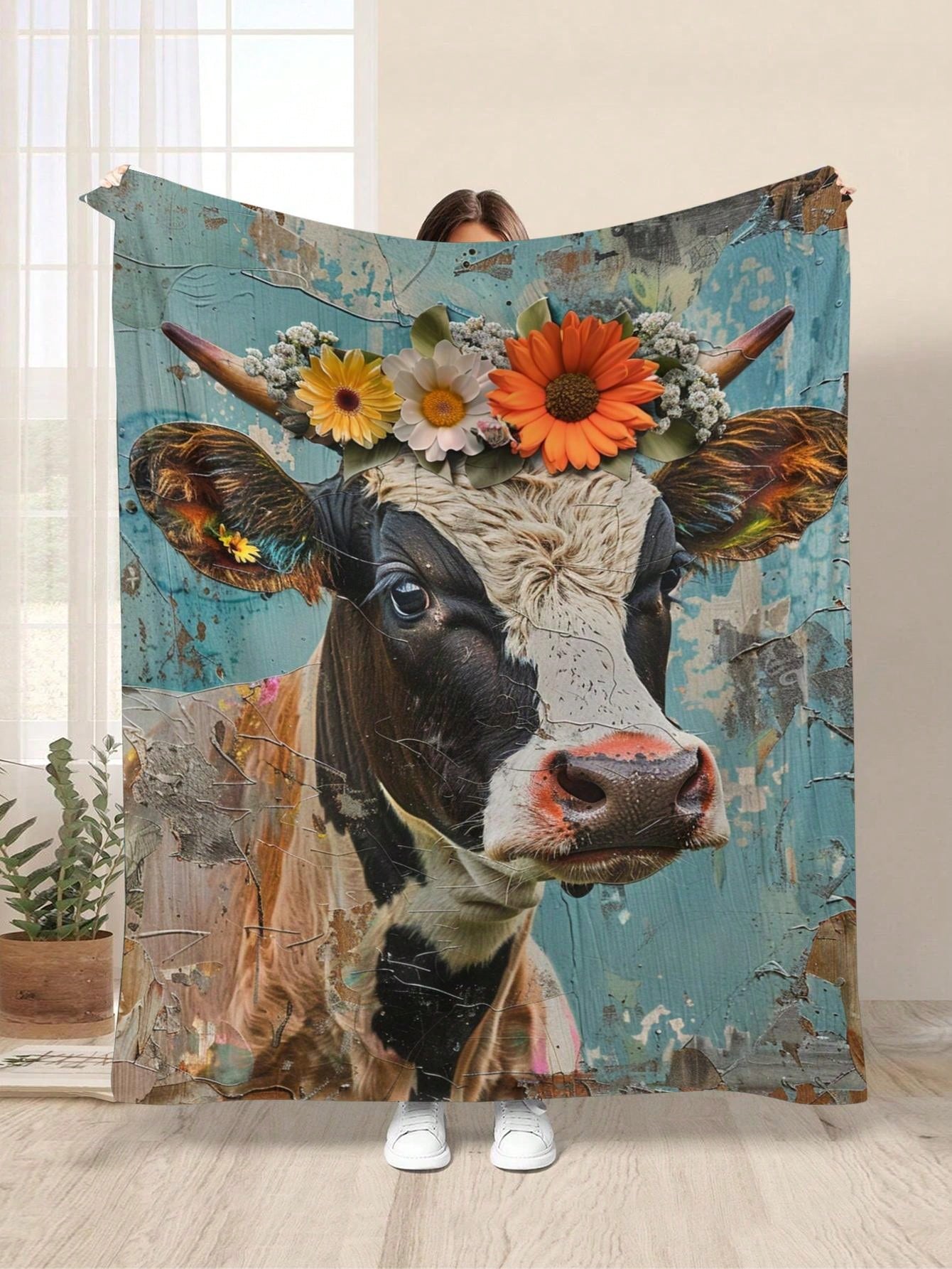 Cozy Cow Print Flannel Sofa Blanket - Snuggle in Style!