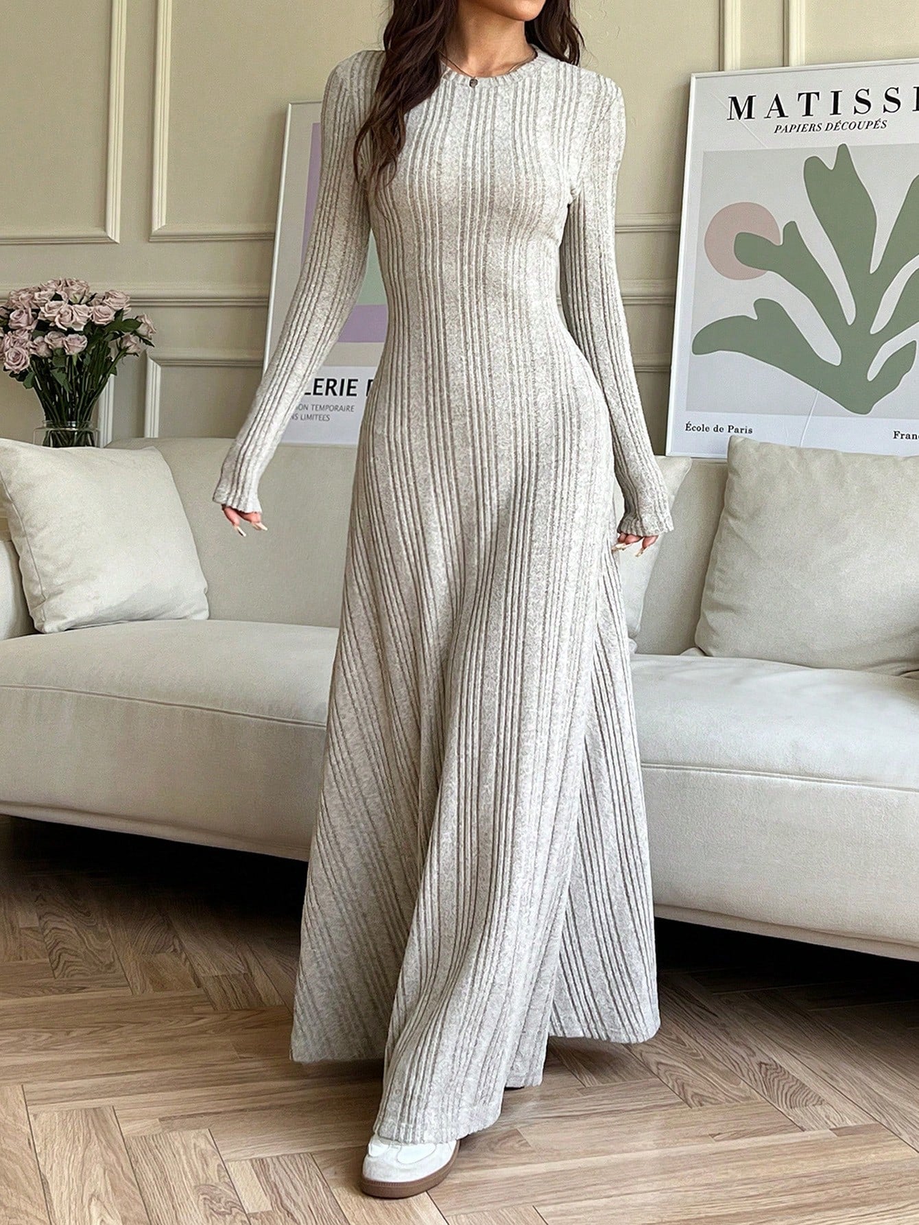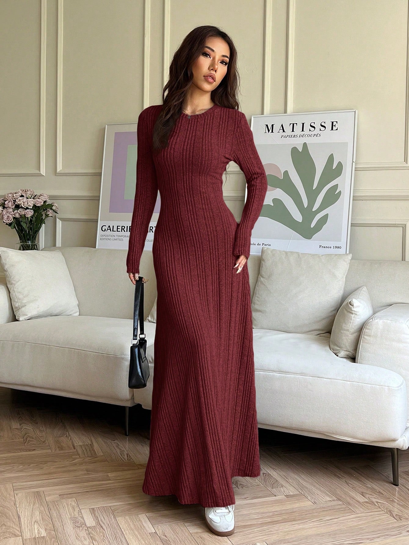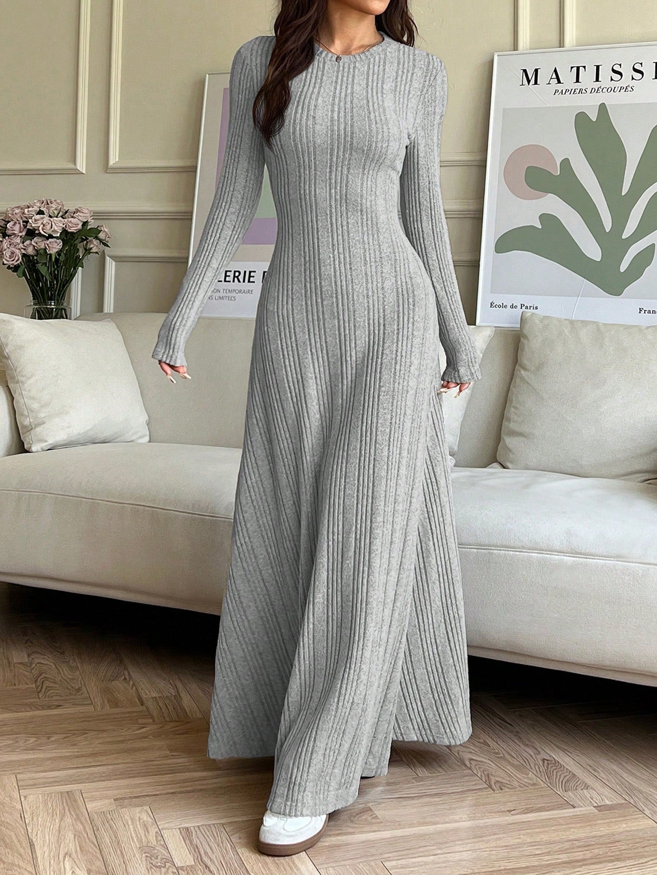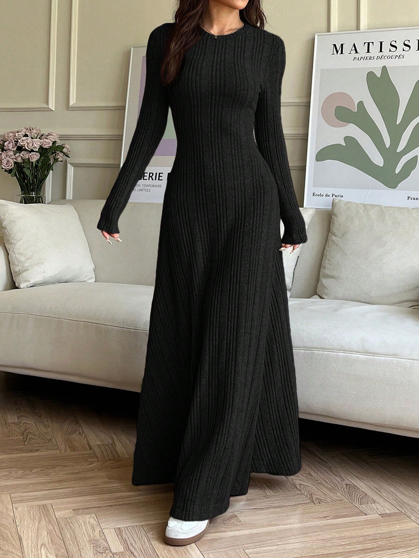 Cozy Elegance: Women's Solid Color Extra Long Knitted Sweater Dress