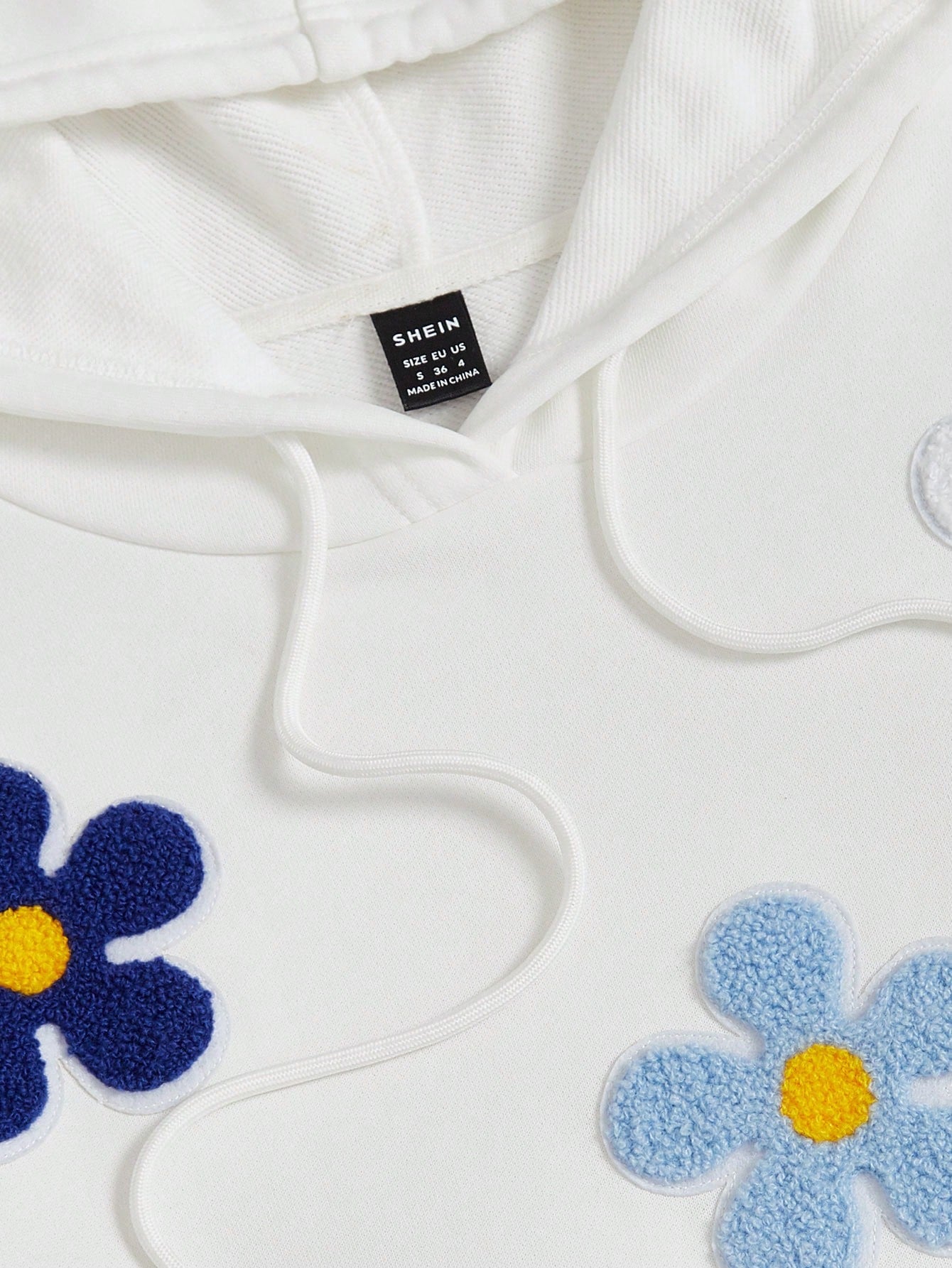 Cozy Floral Patched Hoodie with Kangaroo Pocket - A Must-Have for Easy, Everyday Style