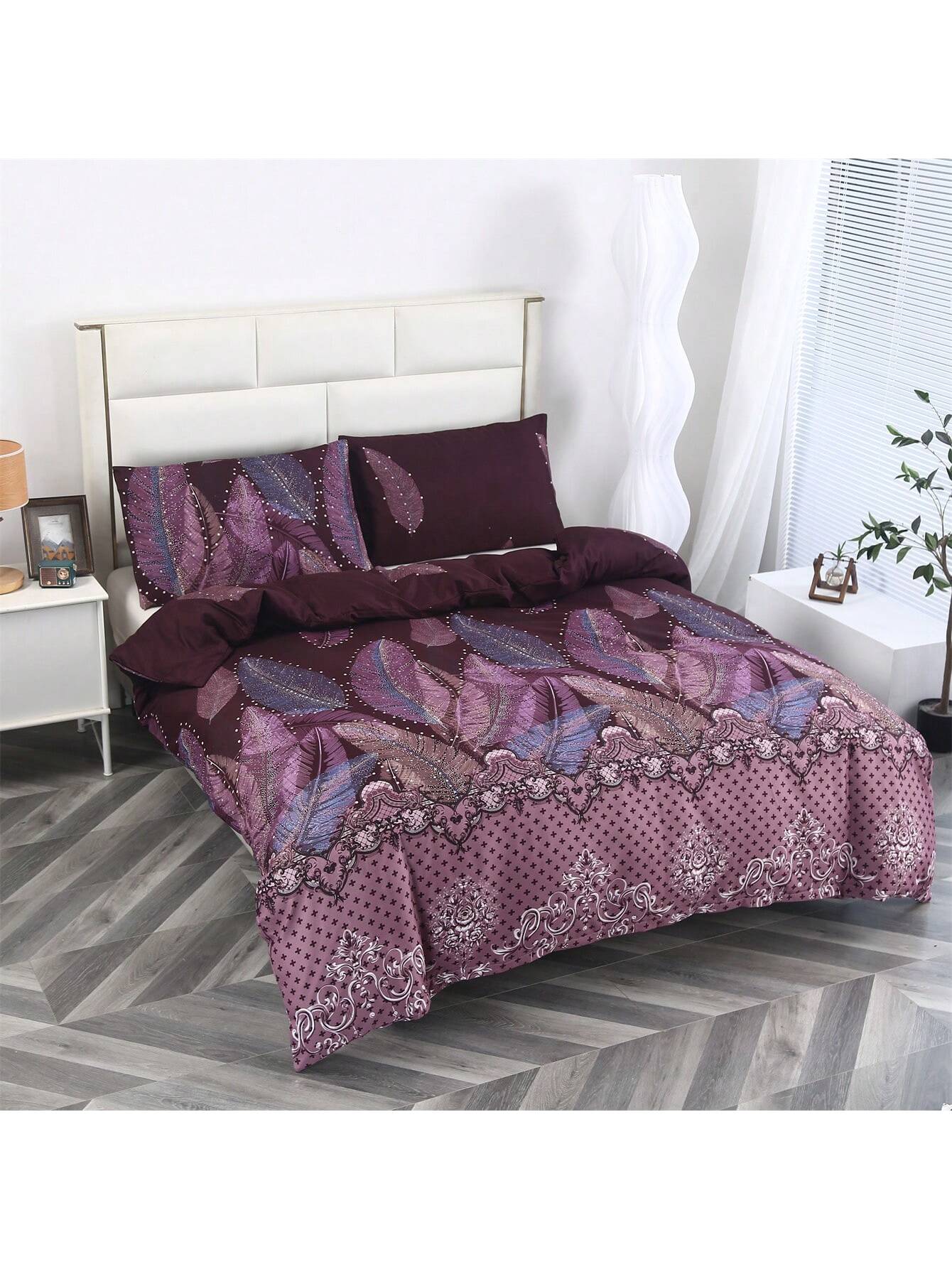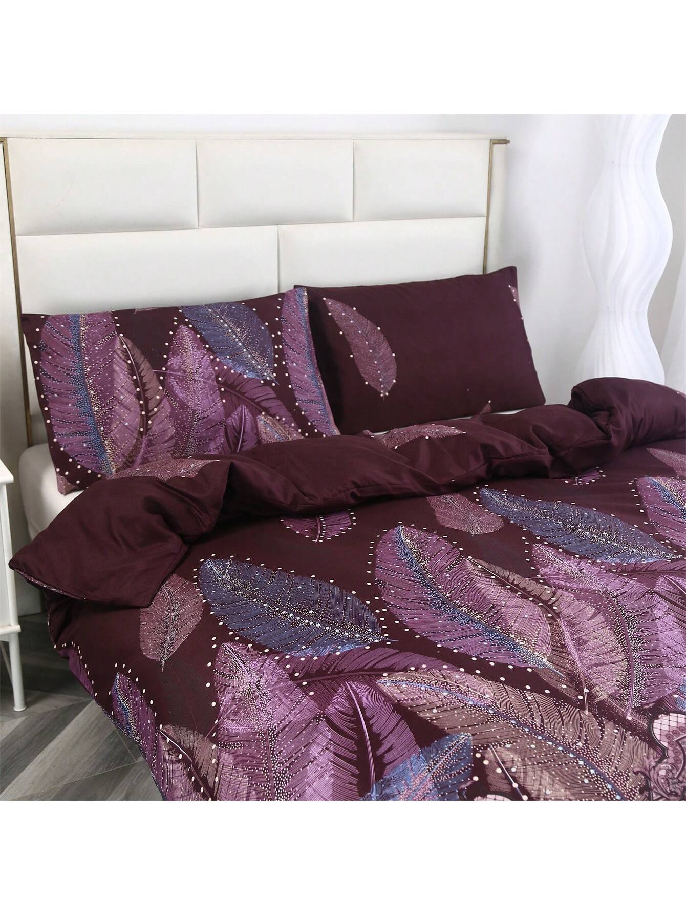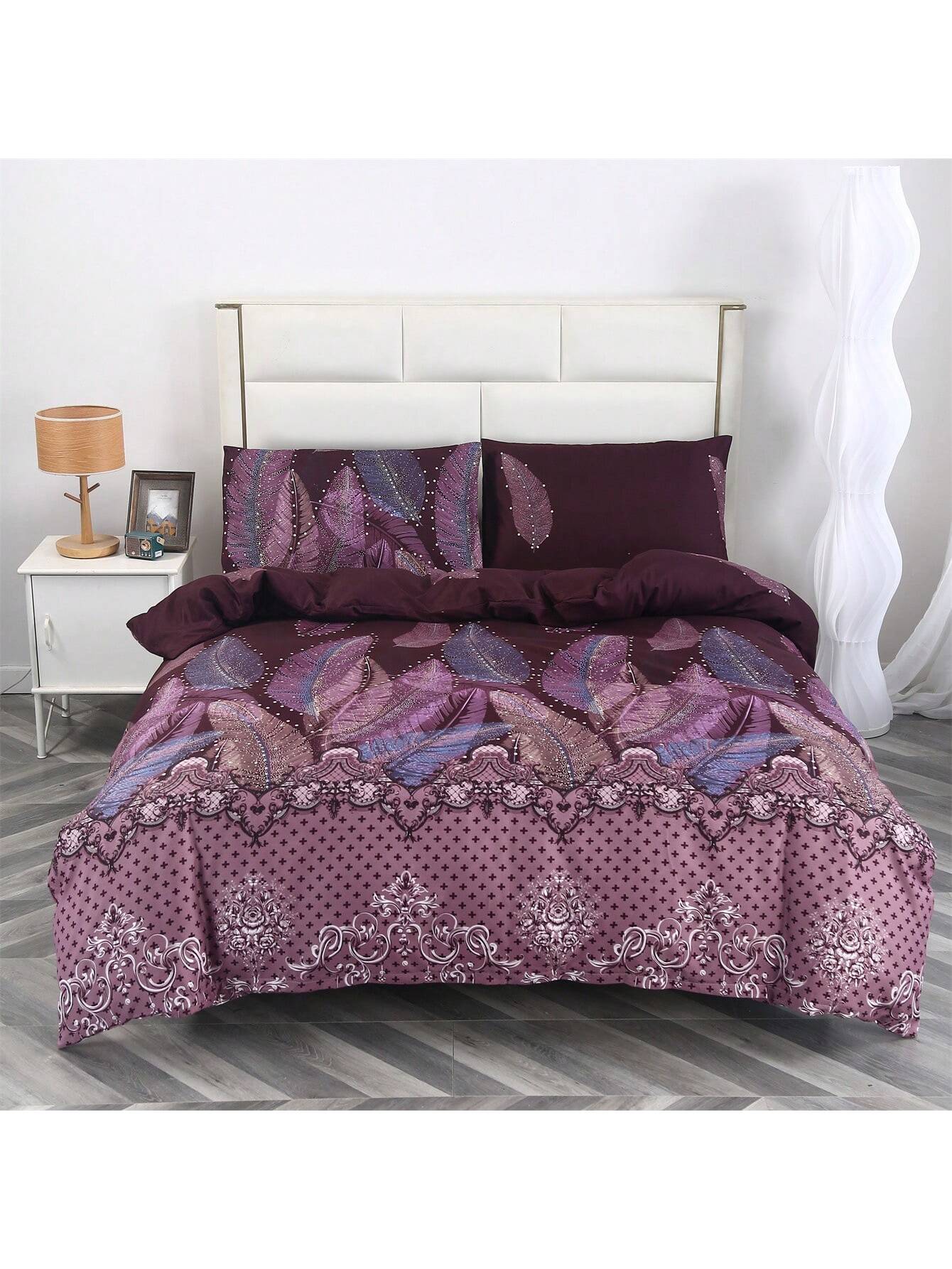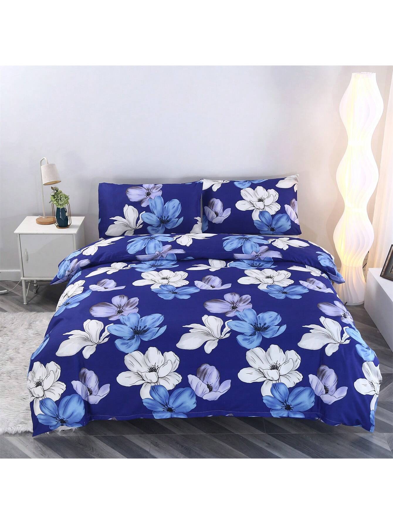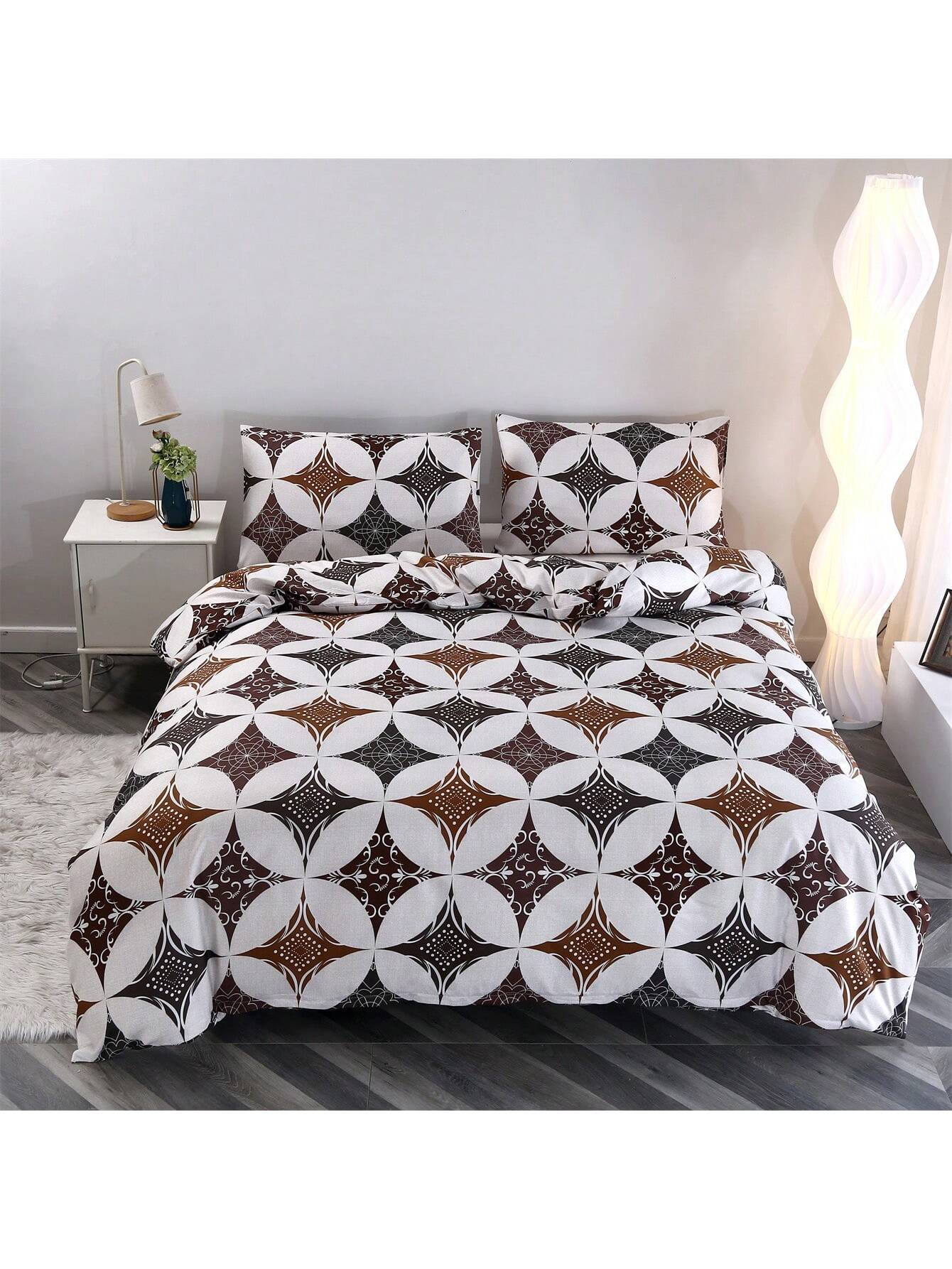 Cozy Geometric Floral Flannel Bedding Set - 3pcs Duvet Cover & Pillowcases