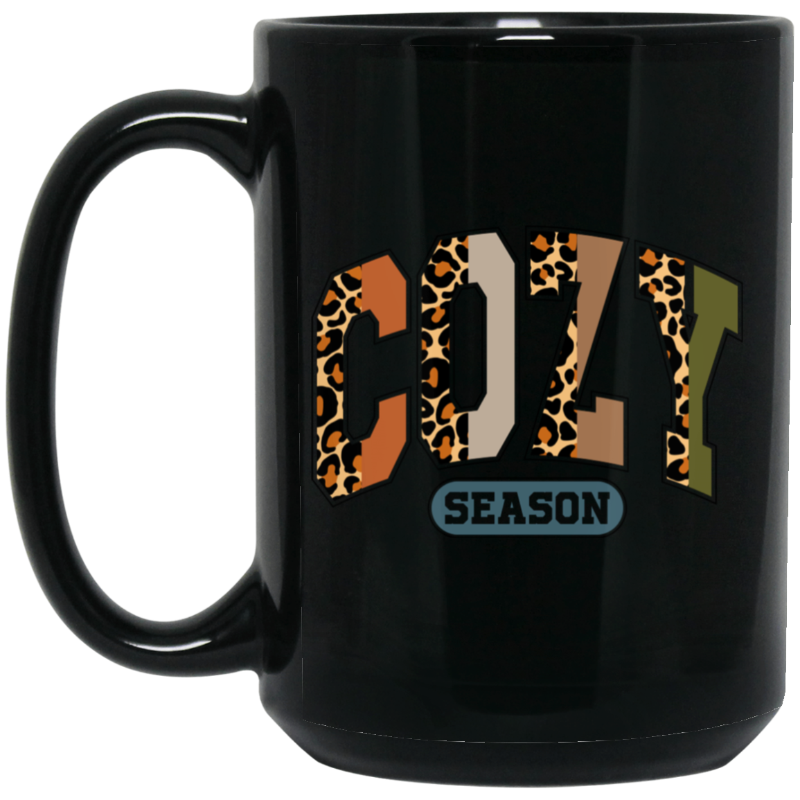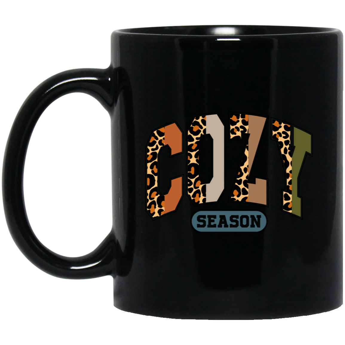 Cozy Season, Leopard Cozy, Leopard Cozy Season Black Mug