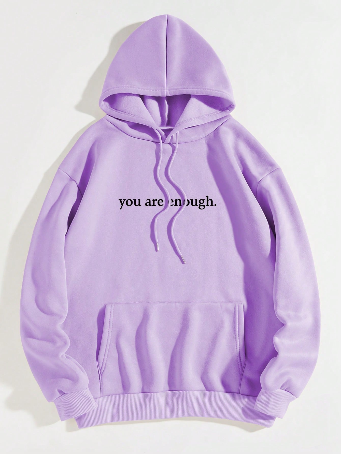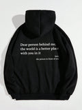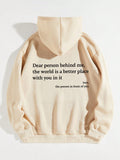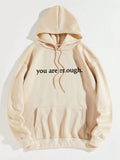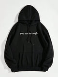 Cozy Style: Slogan Graphic Thermal Hoodie with Kangaroo Pocket
