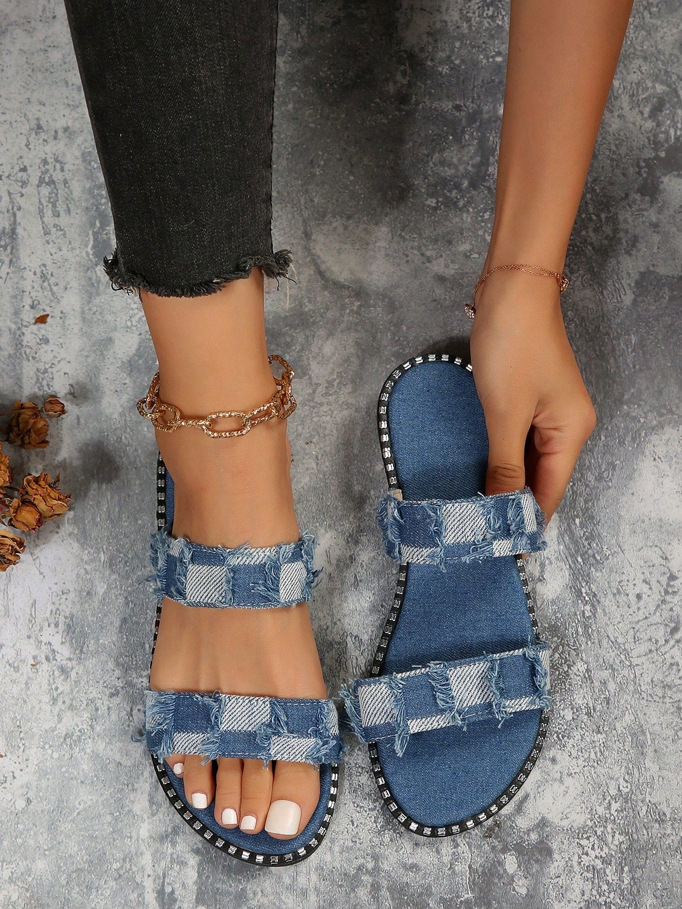 Cozy Summer Slip-Ons: Women's Fabric Edging Round Toe Beach Slippers