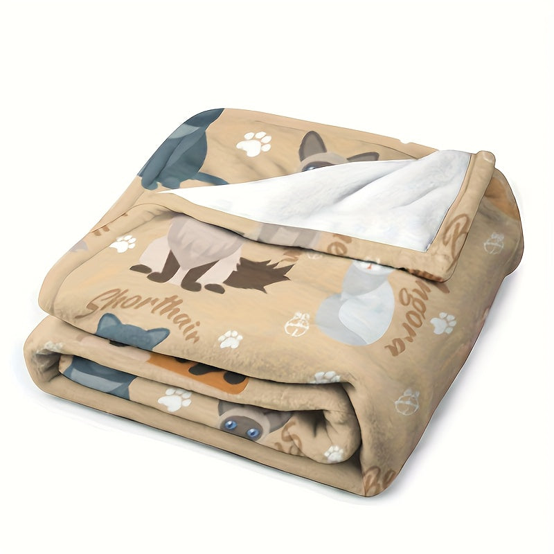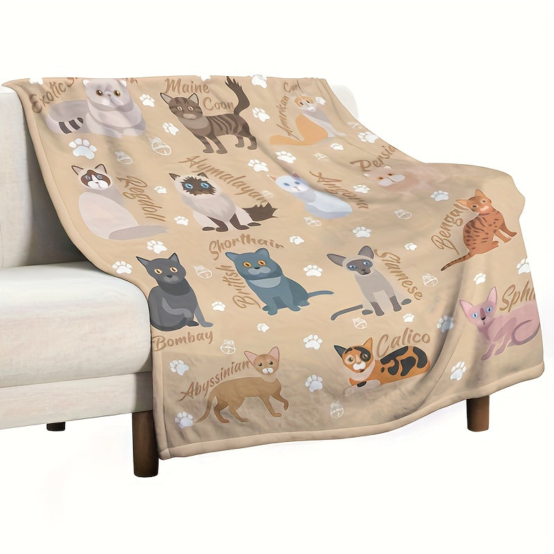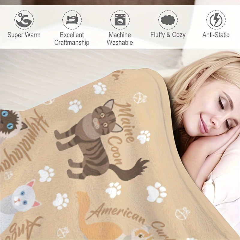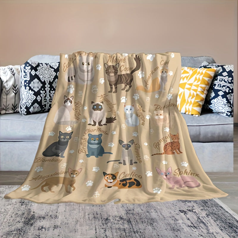 Cozy up with Our Adorable Cartoon Cat Flannel Throw Blanket - Perfect for All Seasons!