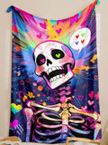 Cozy up with the Cartoon Skull Printed Flannel Blanket: A Year-Round Home Essential