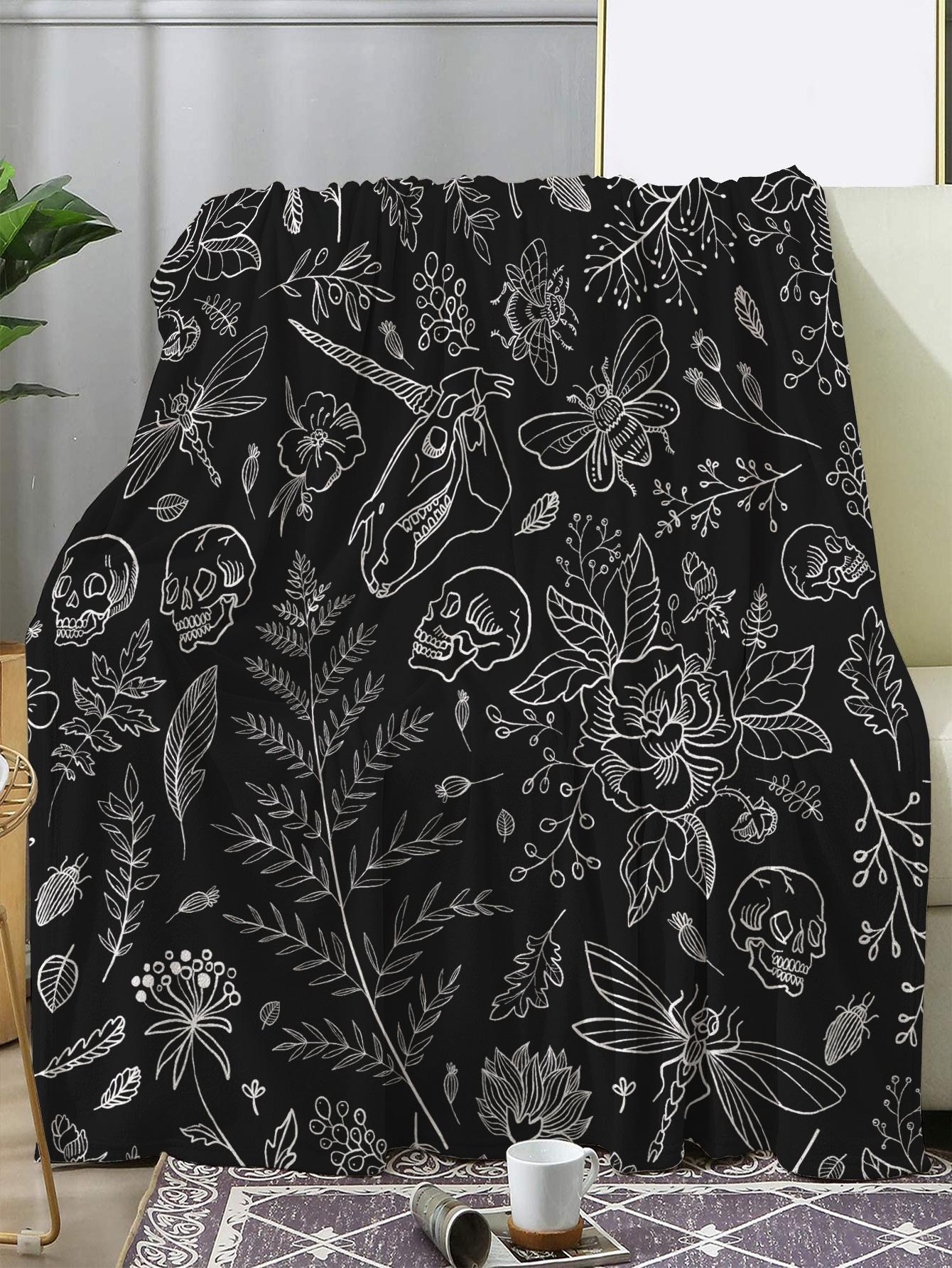 Cozy up with the Skull Plant Pattern Blanket: Soft and Warm Home Decor Essential