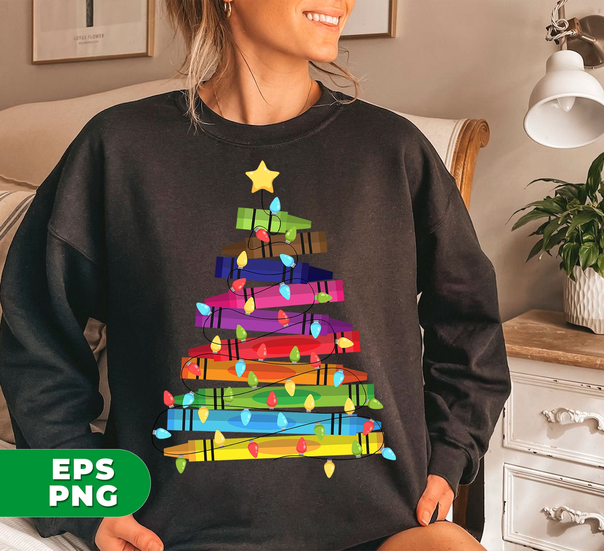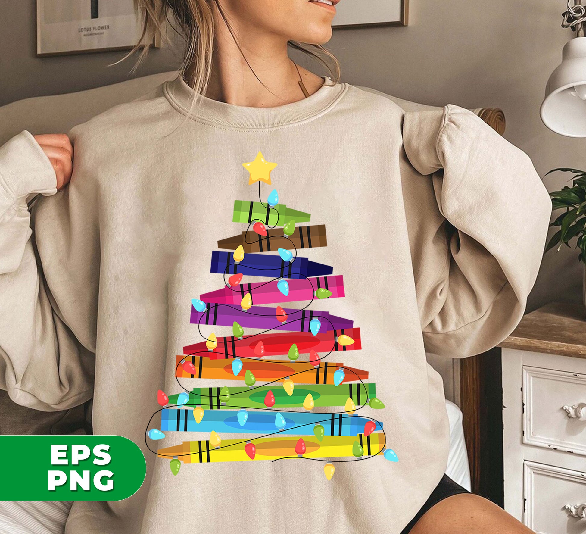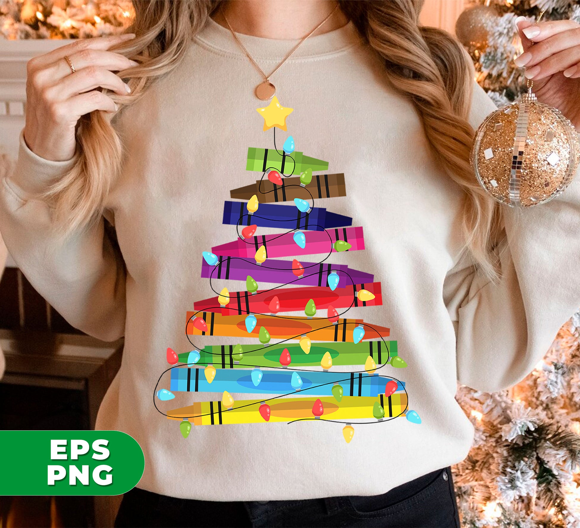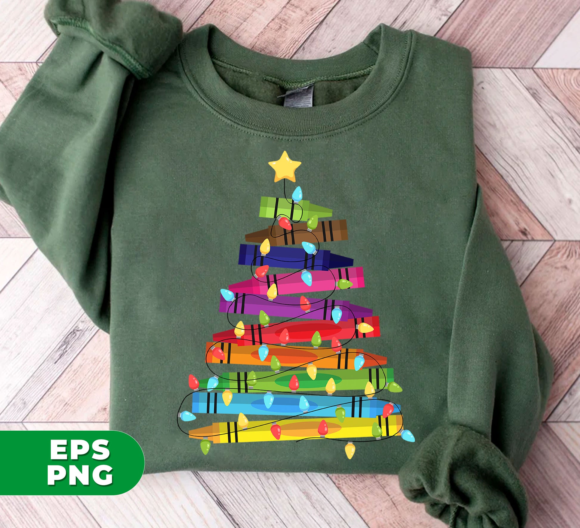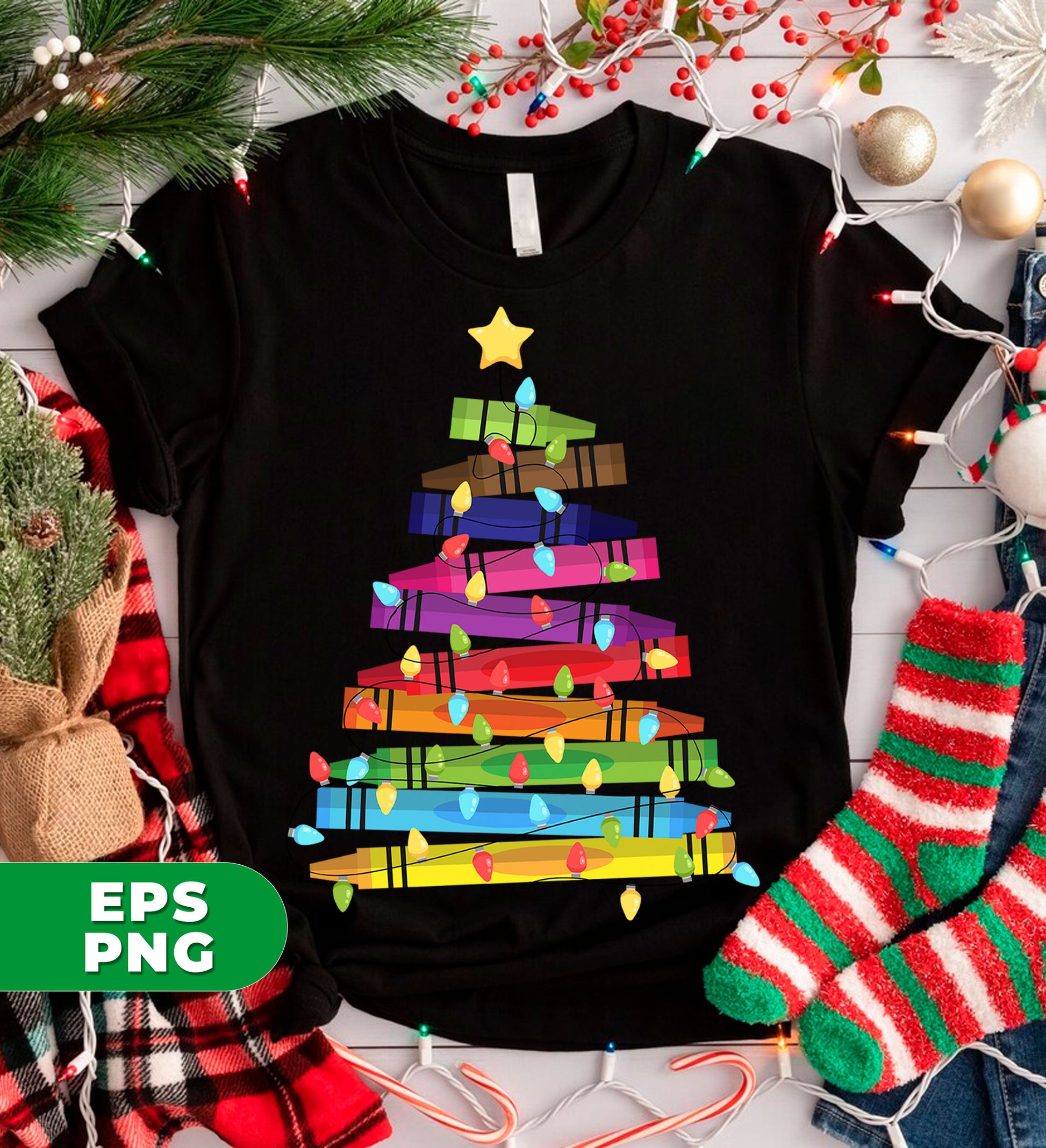 Crayon Xmas Tree, Crayon-mas Tree With Light Line, Digital Files, Png Sublimation