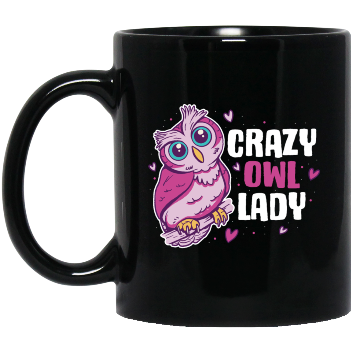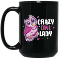 Crazy Owl Lady, Merry Xmas Gift For Owl Lover Purple Tone, Owl In Space Black Mug