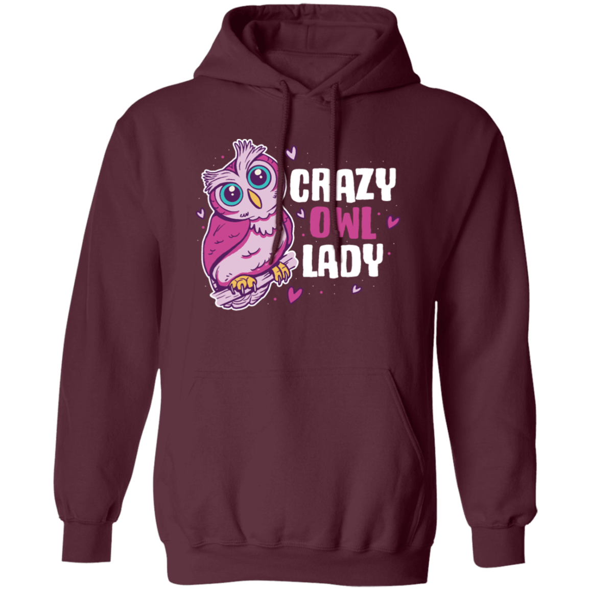 Crazy Owl Lady, Merry Xmas Gift For Owl Lover Purple Tone, Owl In Space Pullover Hoodie