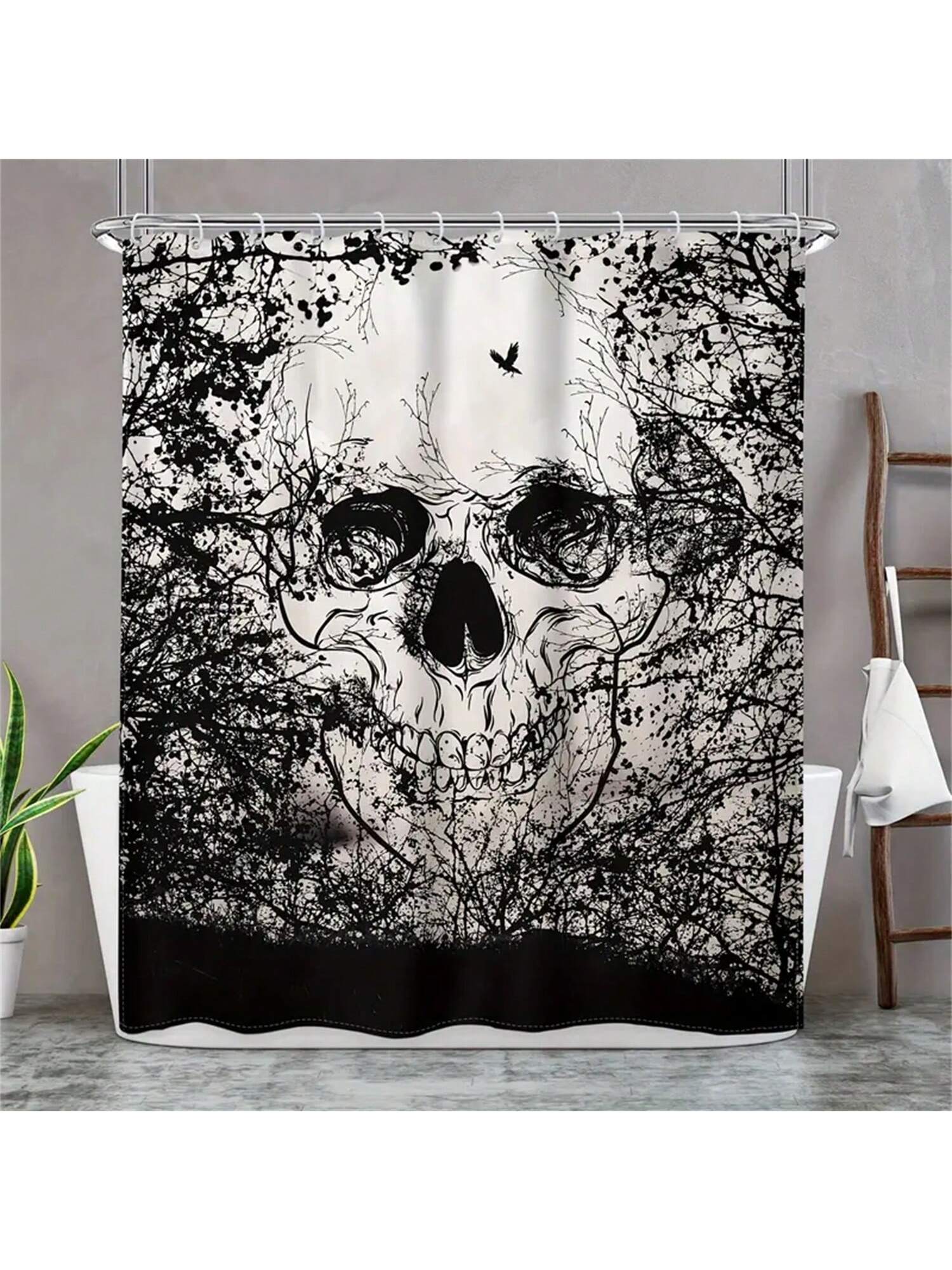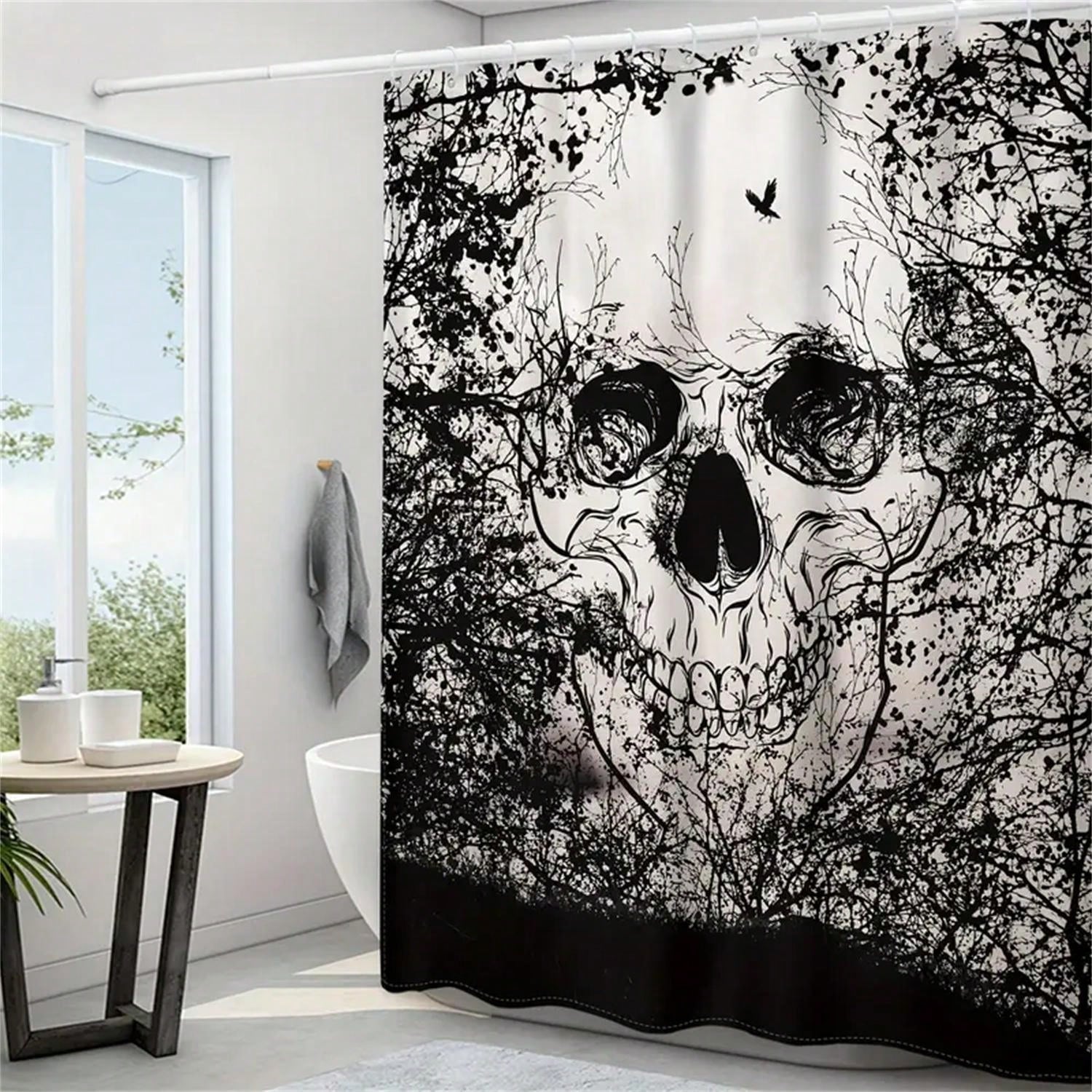 Creepy Cool Gothic Skull Shower Curtain: Horror Tree and Skeleton Design