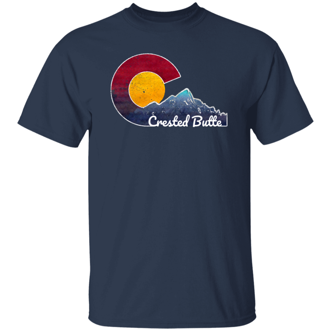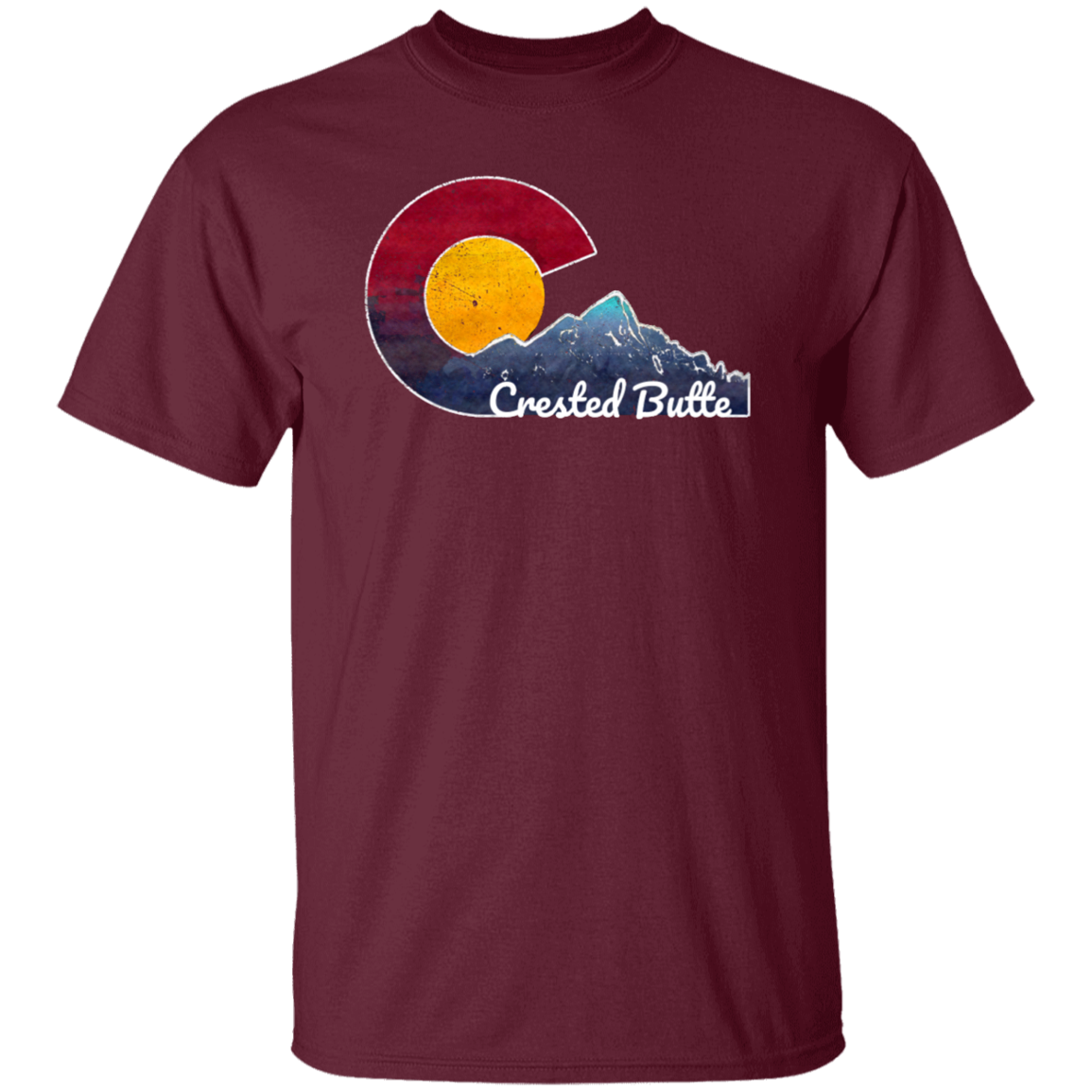 Crested Butte, Colorado With Flag Inspired Scene, Love Colorado Gift Unisex T-Shirt