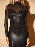 Crocodile Embossed Mesh Panel Bodycon Dress - Chic Black Elegance