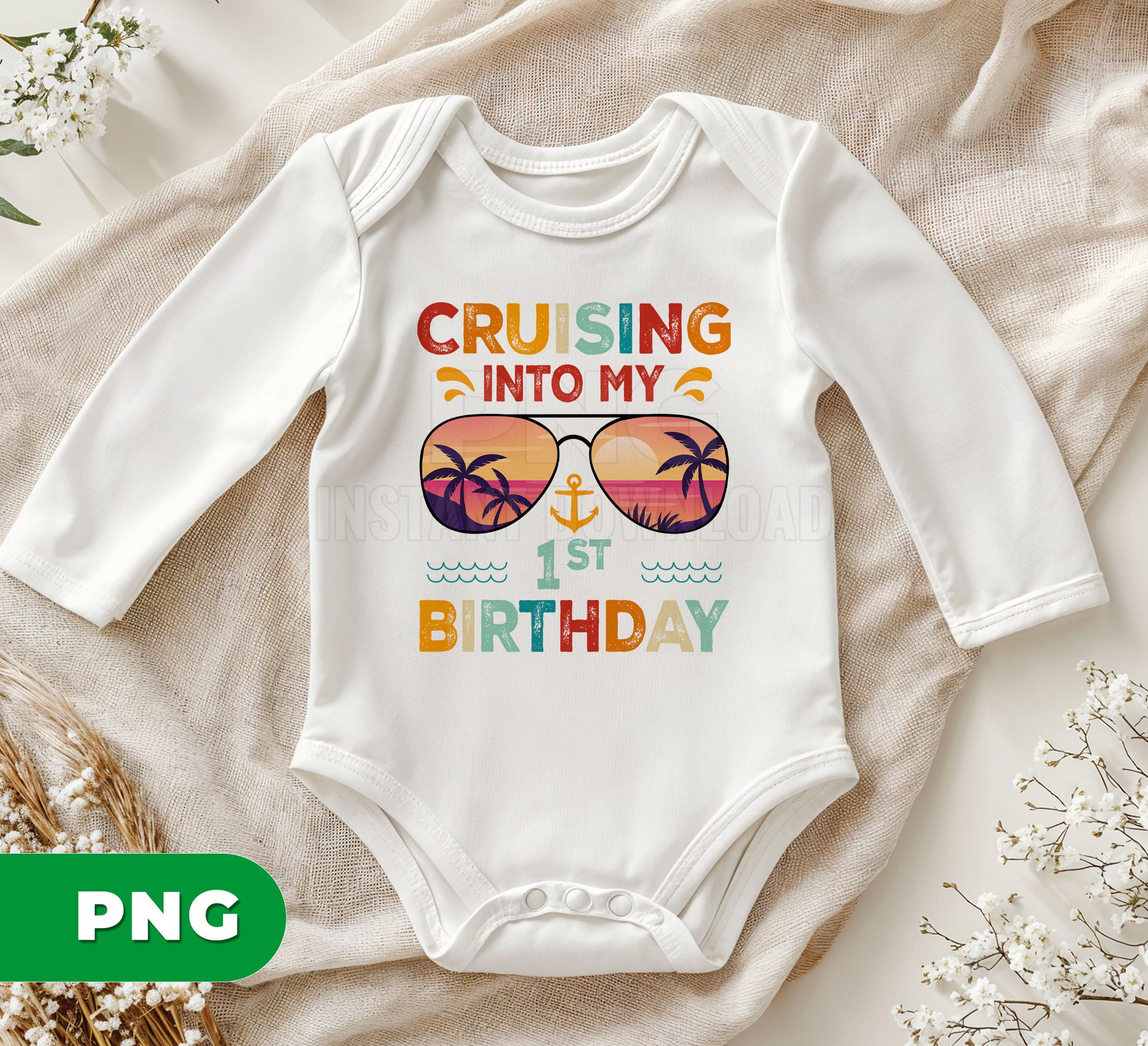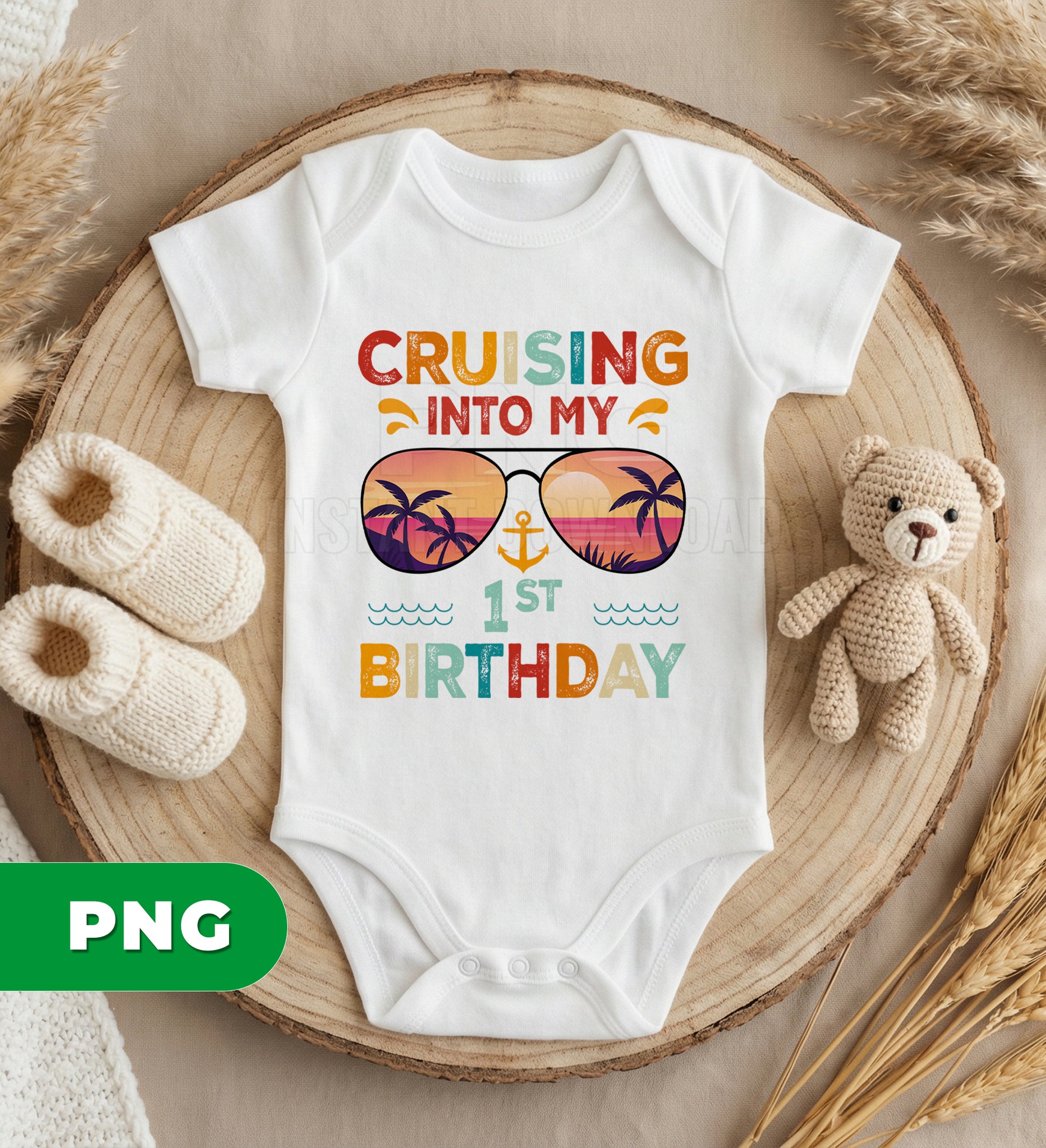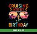 Celebrate a special milestone with this “Cruising Into My 1st Birthday” retro design, perfect for baby boys turning one. Featuring a fun and vintage-inspired style, this PNG file is ideal for t-shirts, party decorations, and custom gifts. A great choice for first birthday celebrations, cake smash outfits, and memorable keepsakes.