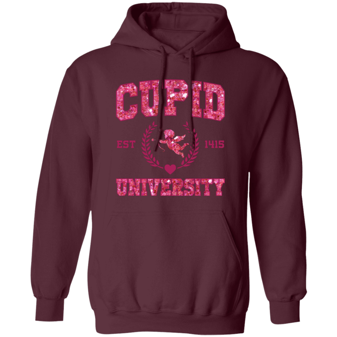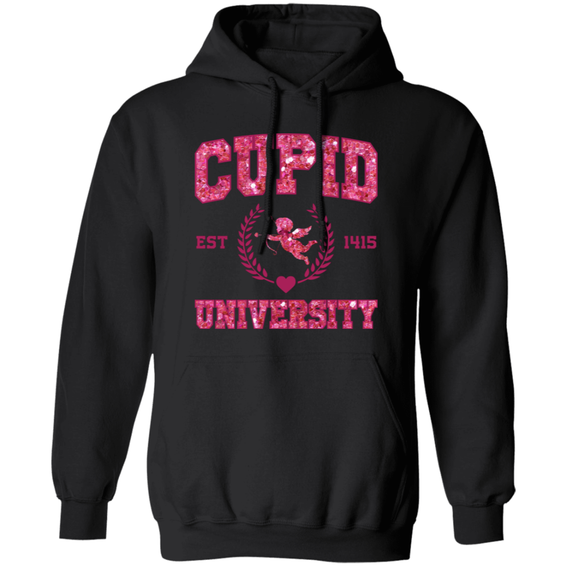 Cupid University, Est 1415, Pink Glitter Cupid, Glitter Valentine, Valentine's Day, Trendy Valentine Pullover Hoodie