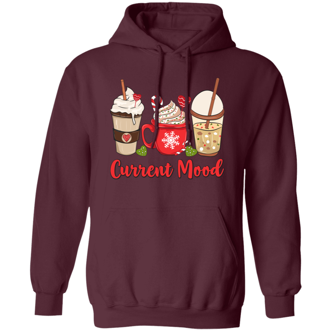 Current Mood, Christmas Coffee, Christmas Drink Cup, Merry Christmas, Trendy Christmas Pullover Hoodie