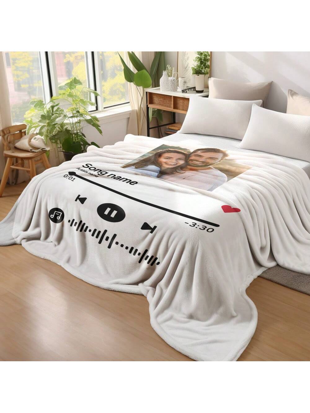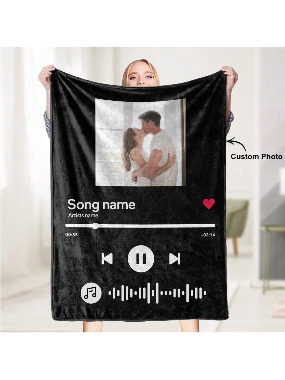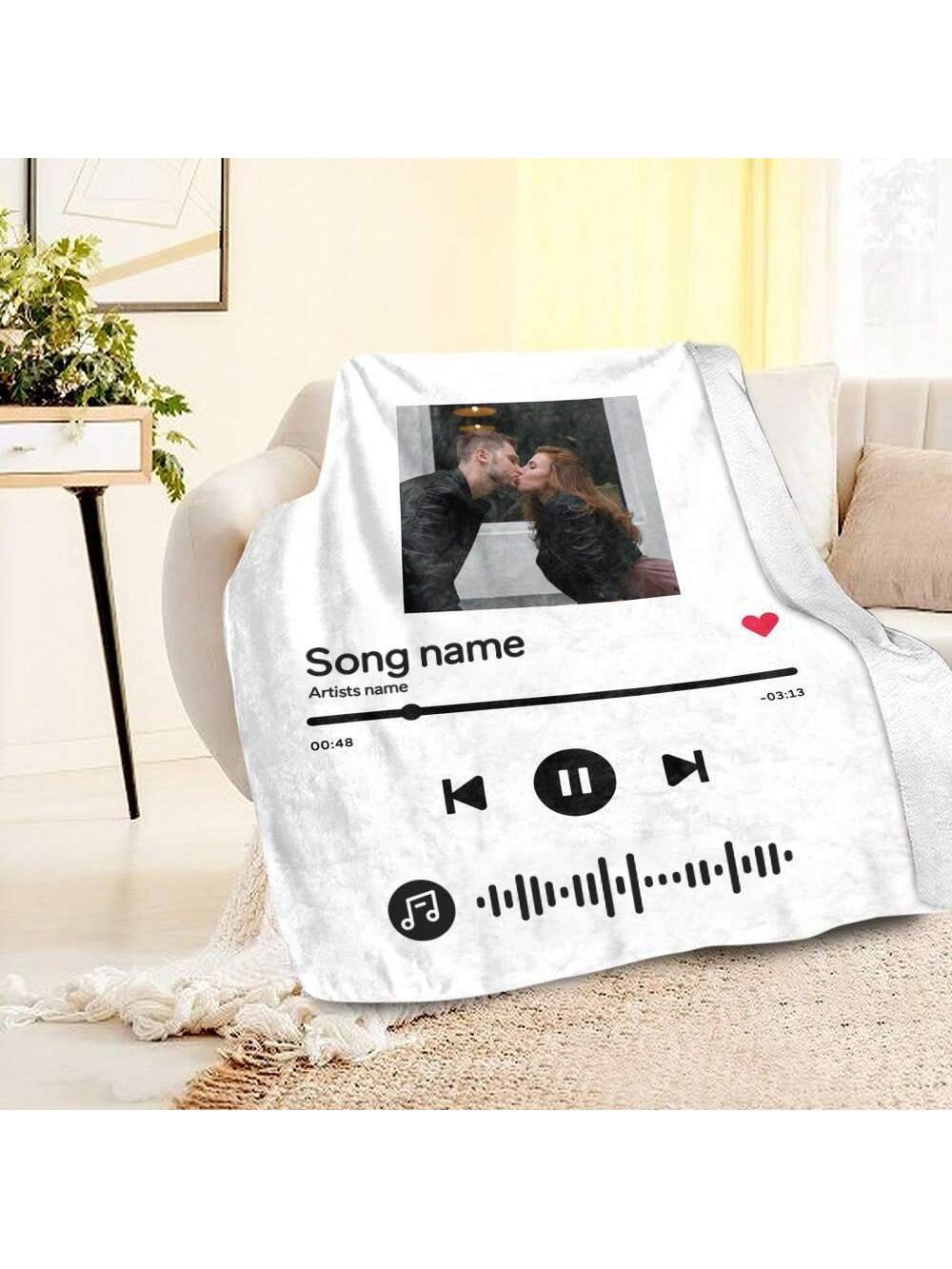 Custom Photo Blanket with Music Code: Personalized Gift for Couples
