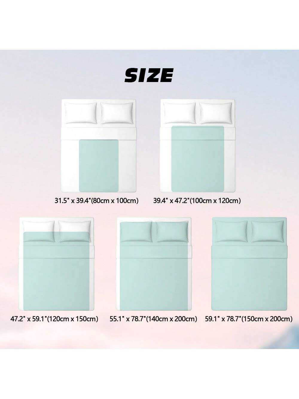 | Queen 59.1 Inch X 78.7 Inch (150*200cm) | 13.8 | 9.8 |