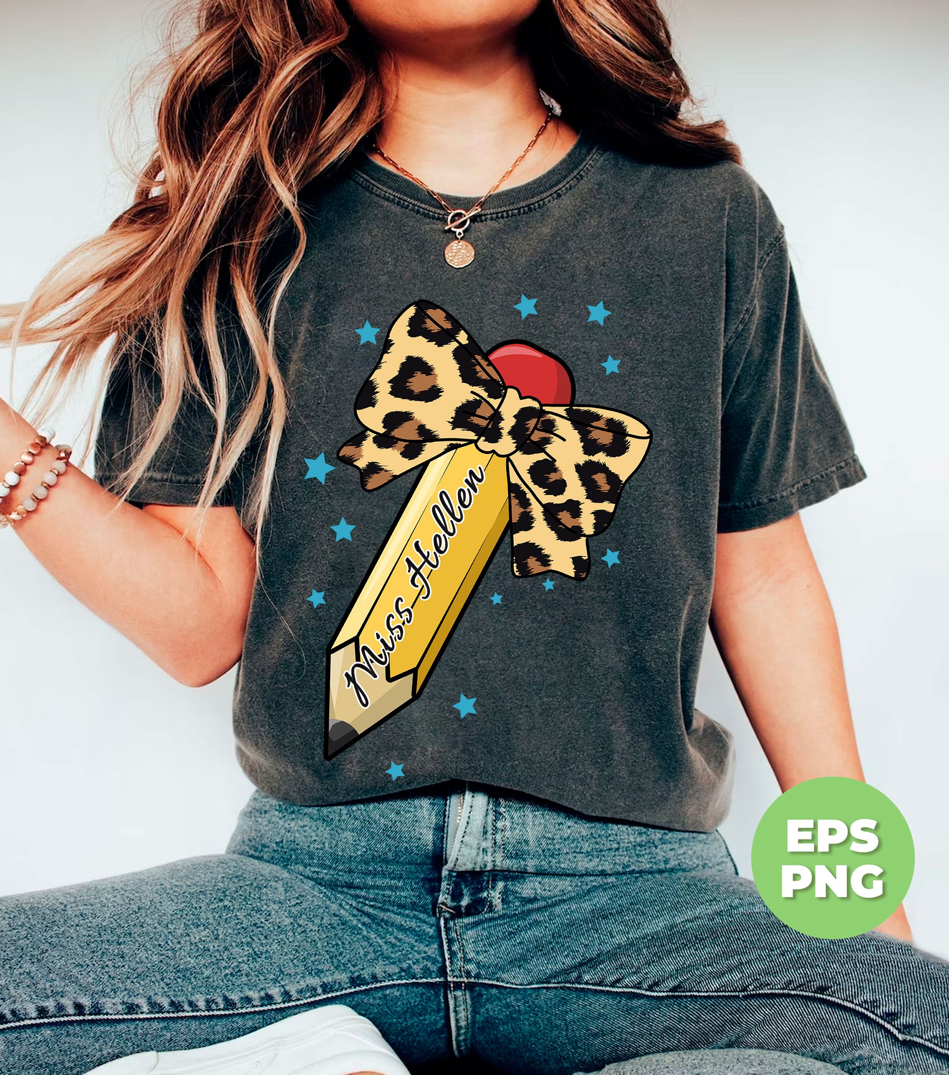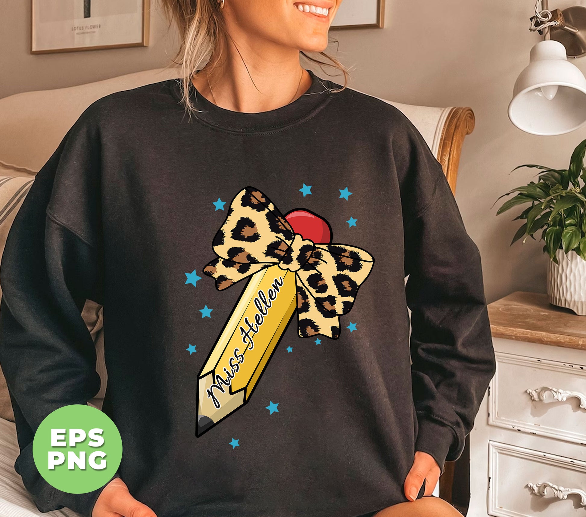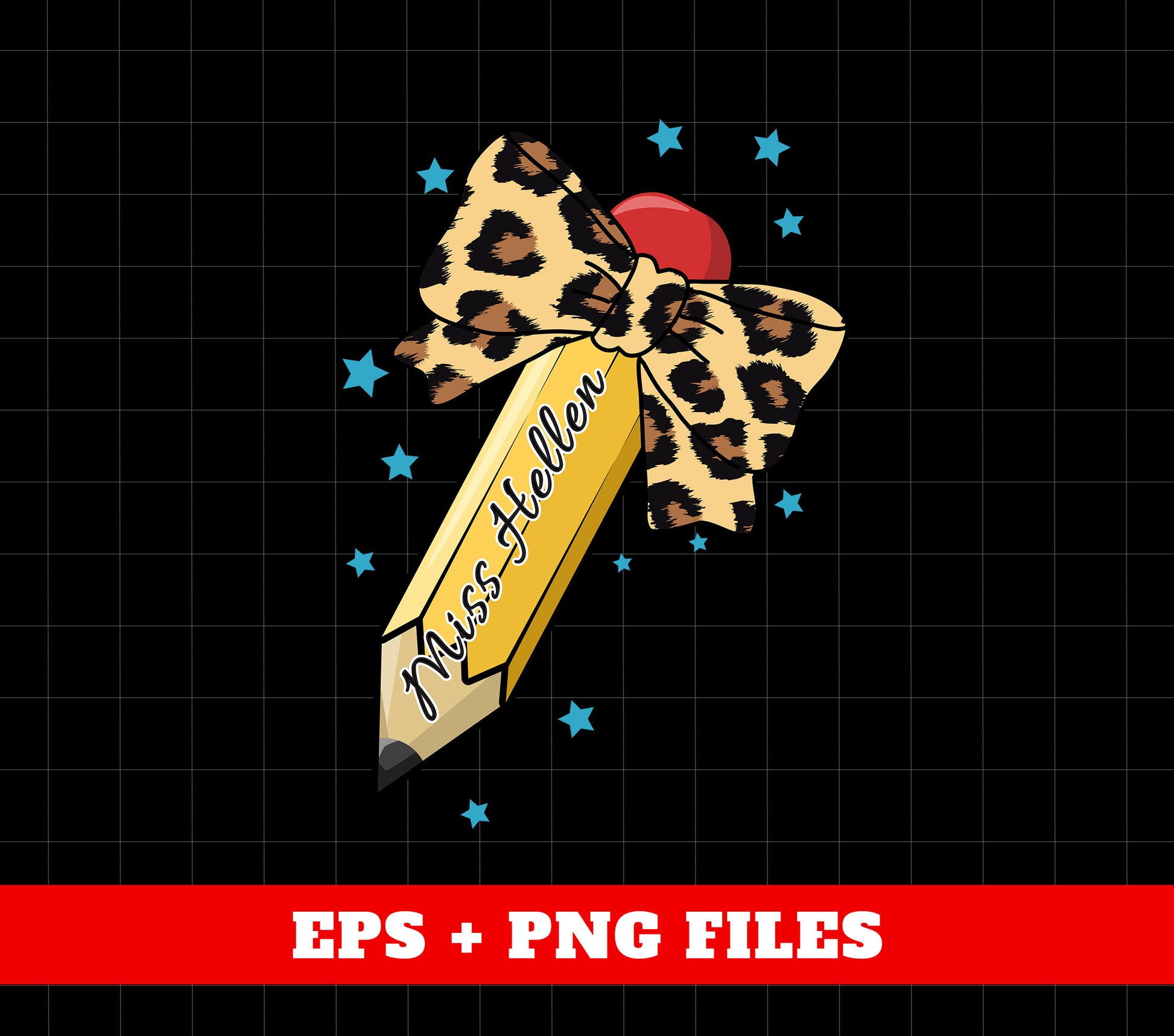 Custom Teacher Name, Leopard Ribbon, Lovely Pencil, Digital Files, Png Sublimation