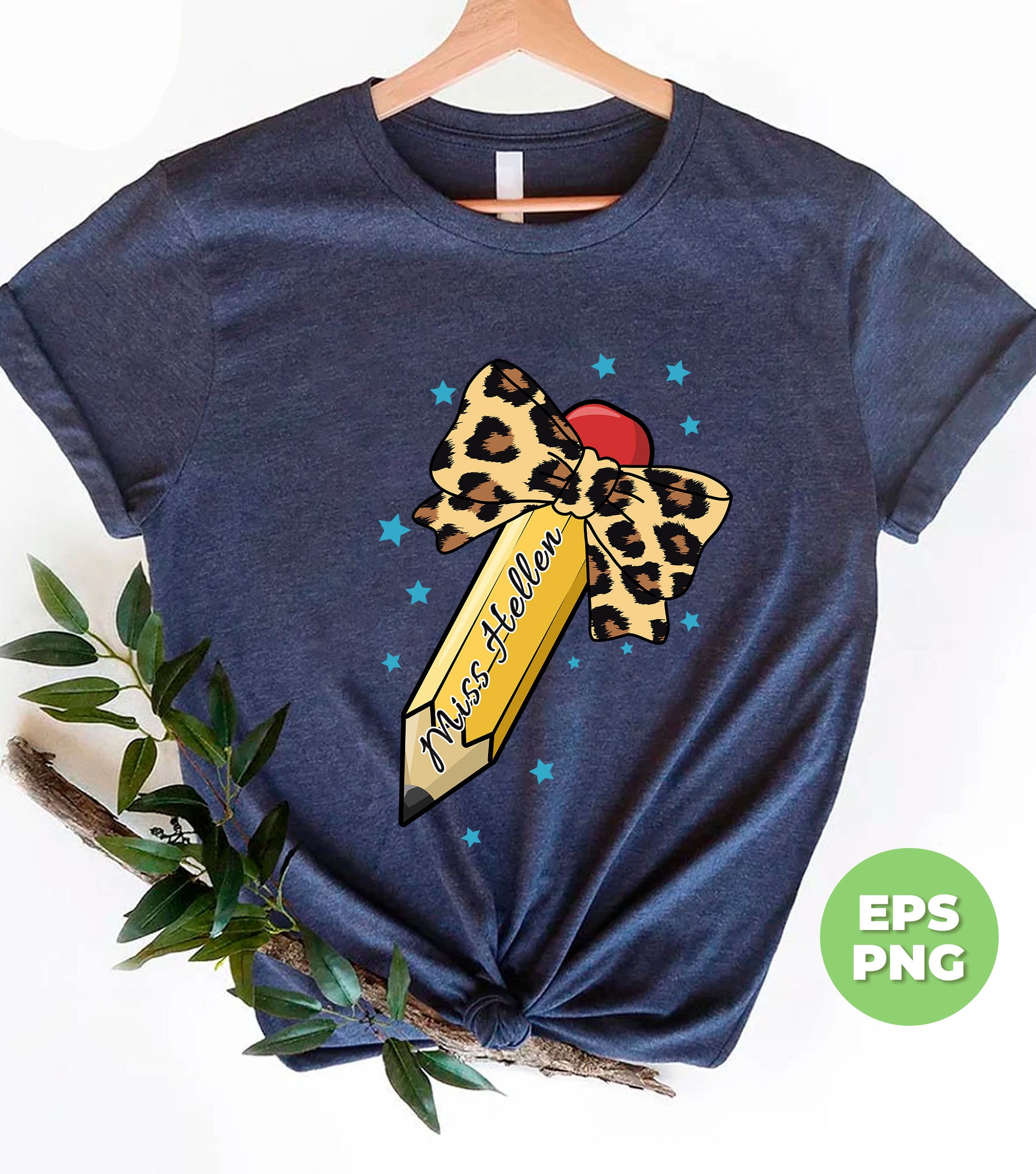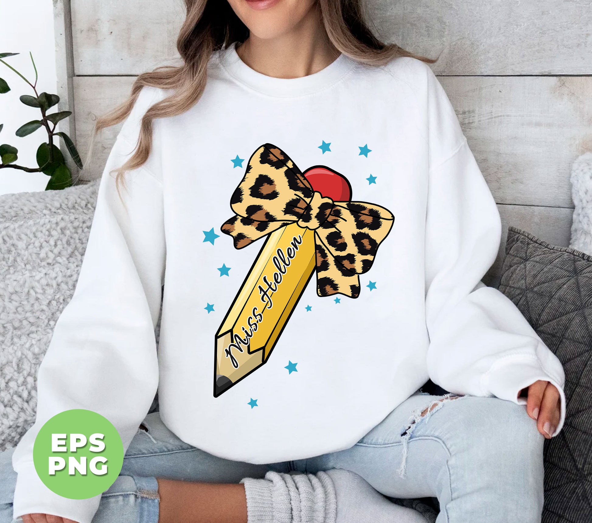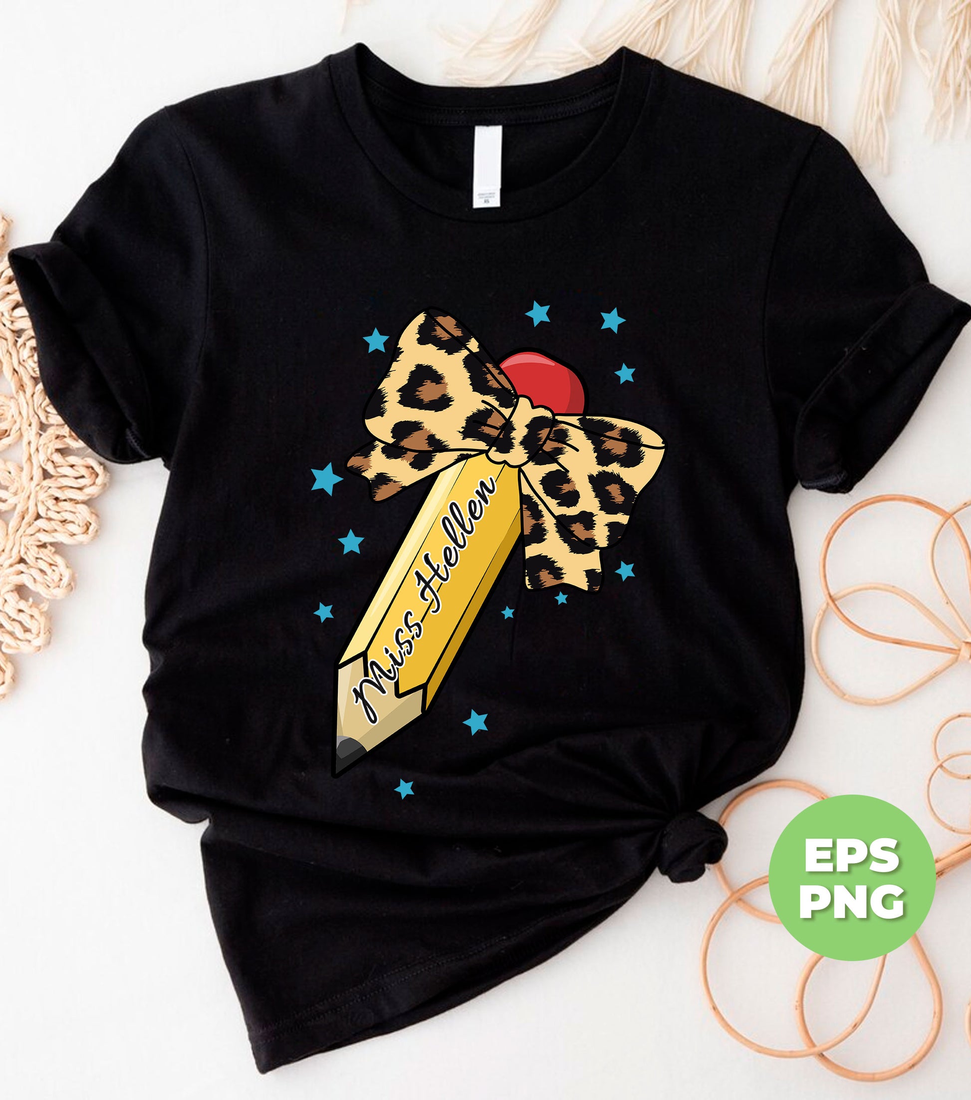 Custom Teacher Name, Leopard Ribbon, Lovely Pencil, Digital Files, Png Sublimation