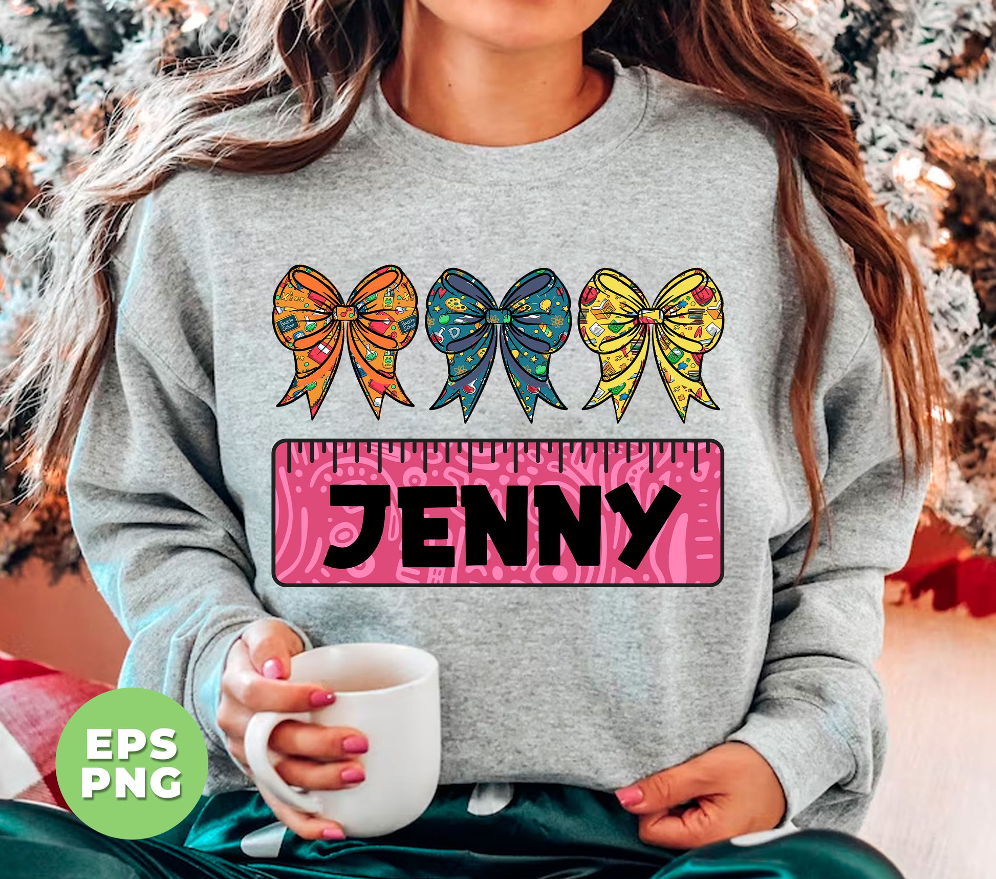 Custom Teacher Name, Lovely Bow, Name On Ruler, Custom Name, Digital Files, Png Sublimation