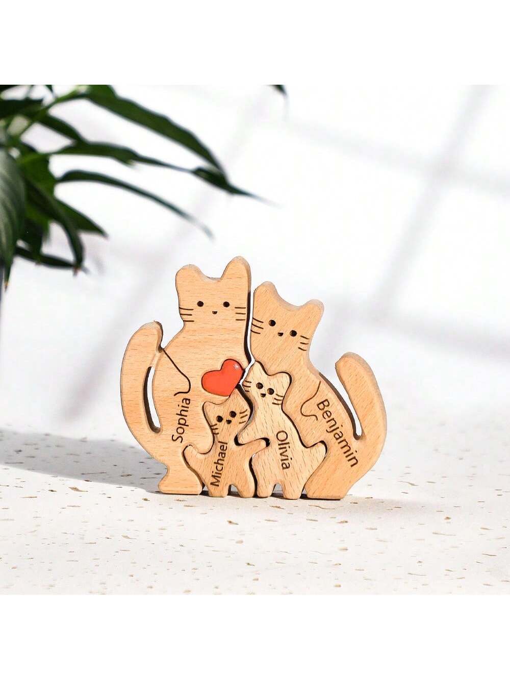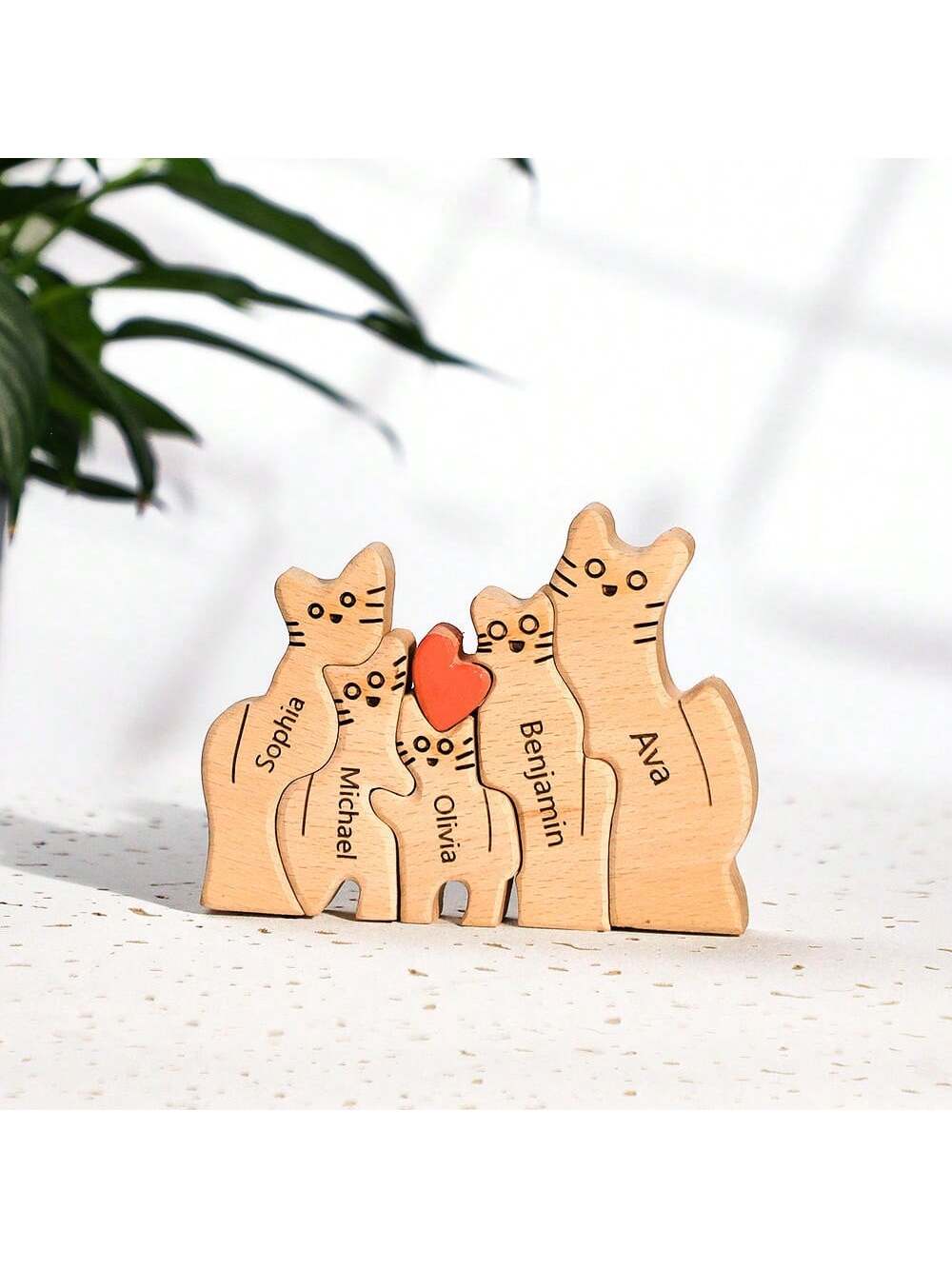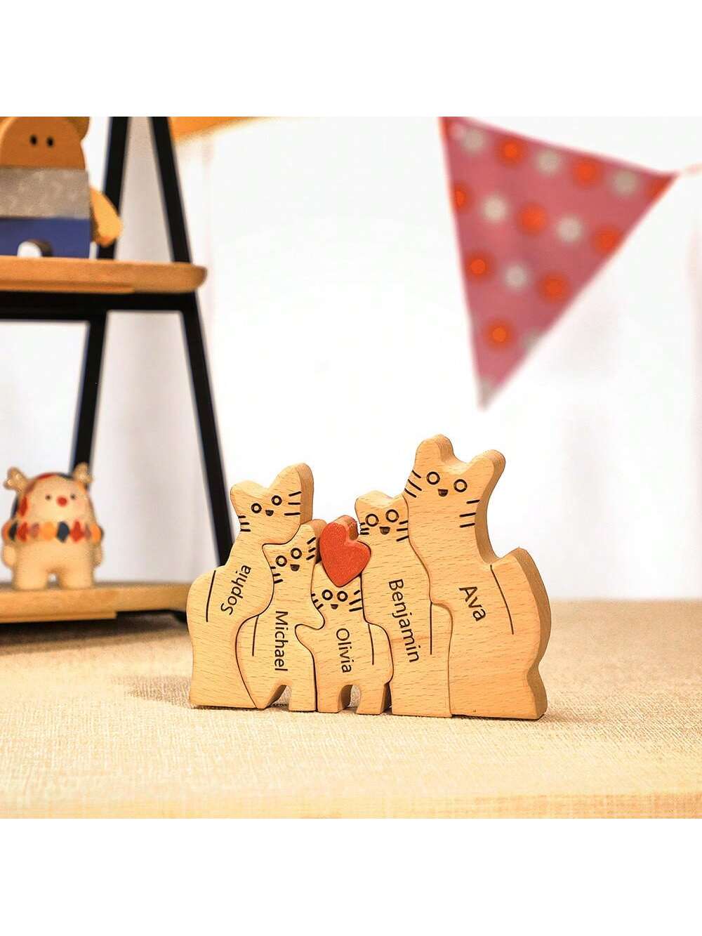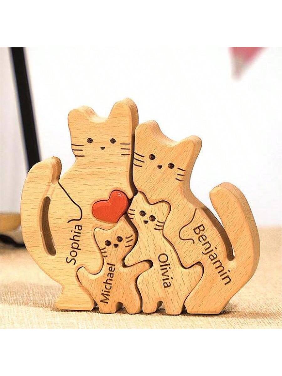 Customizable Wooden Cats Family Puzzle: The Perfect Personalized Home Decor & Gift for Any Occasion