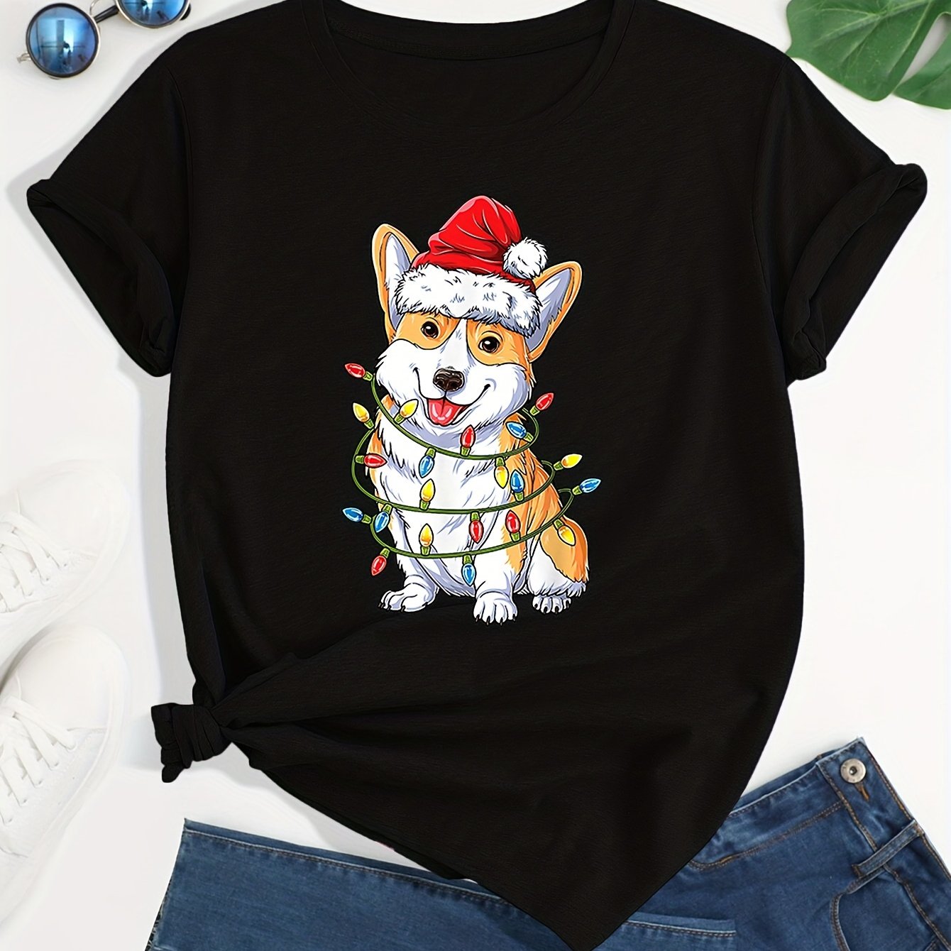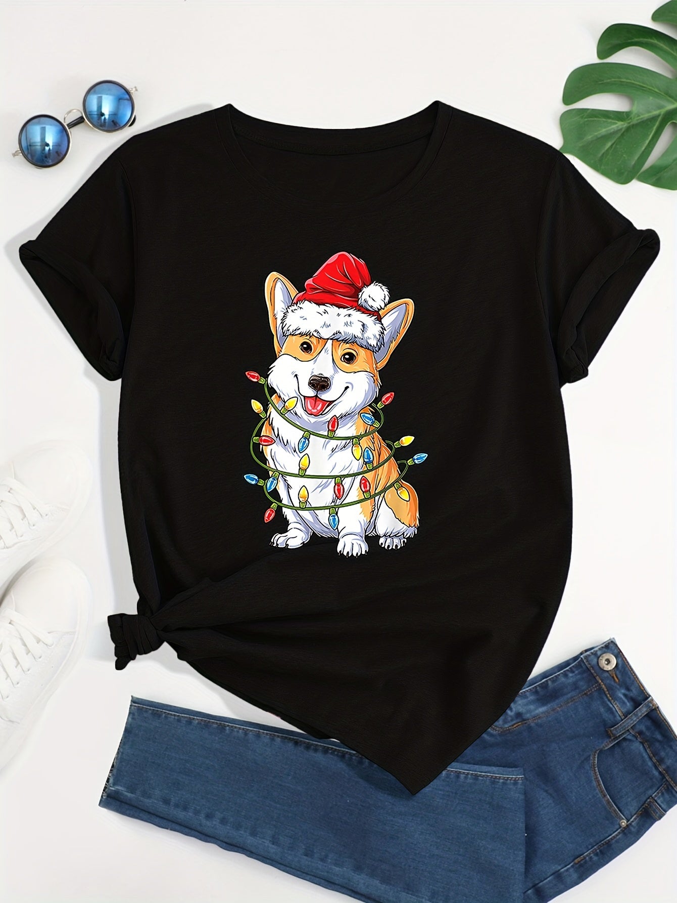 Cute and Casual: Corgi Print Crew Neck T-Shirt - A Perfect Spring/Summer Women's Fashion Staple!