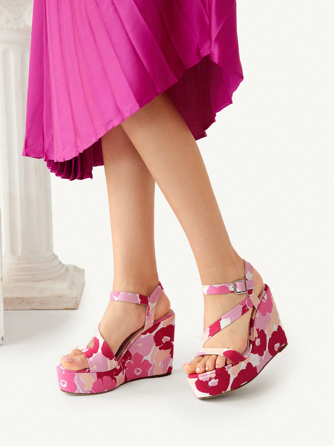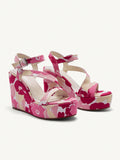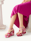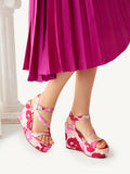 Cute and Comfortable Multicolor Fabric Buckled Wedge Sandals with Thick Soles