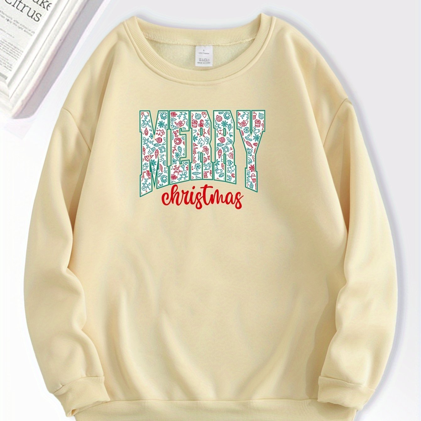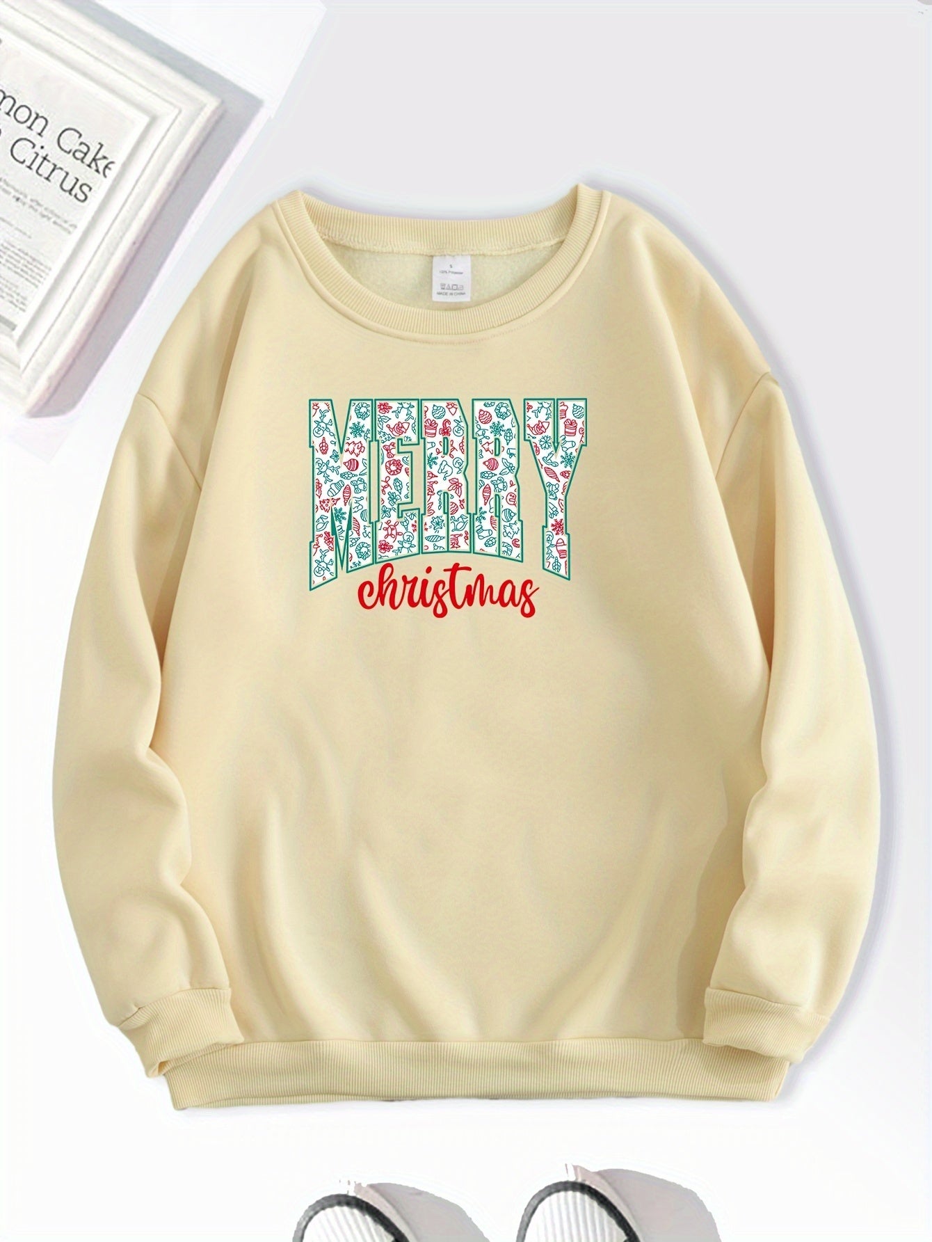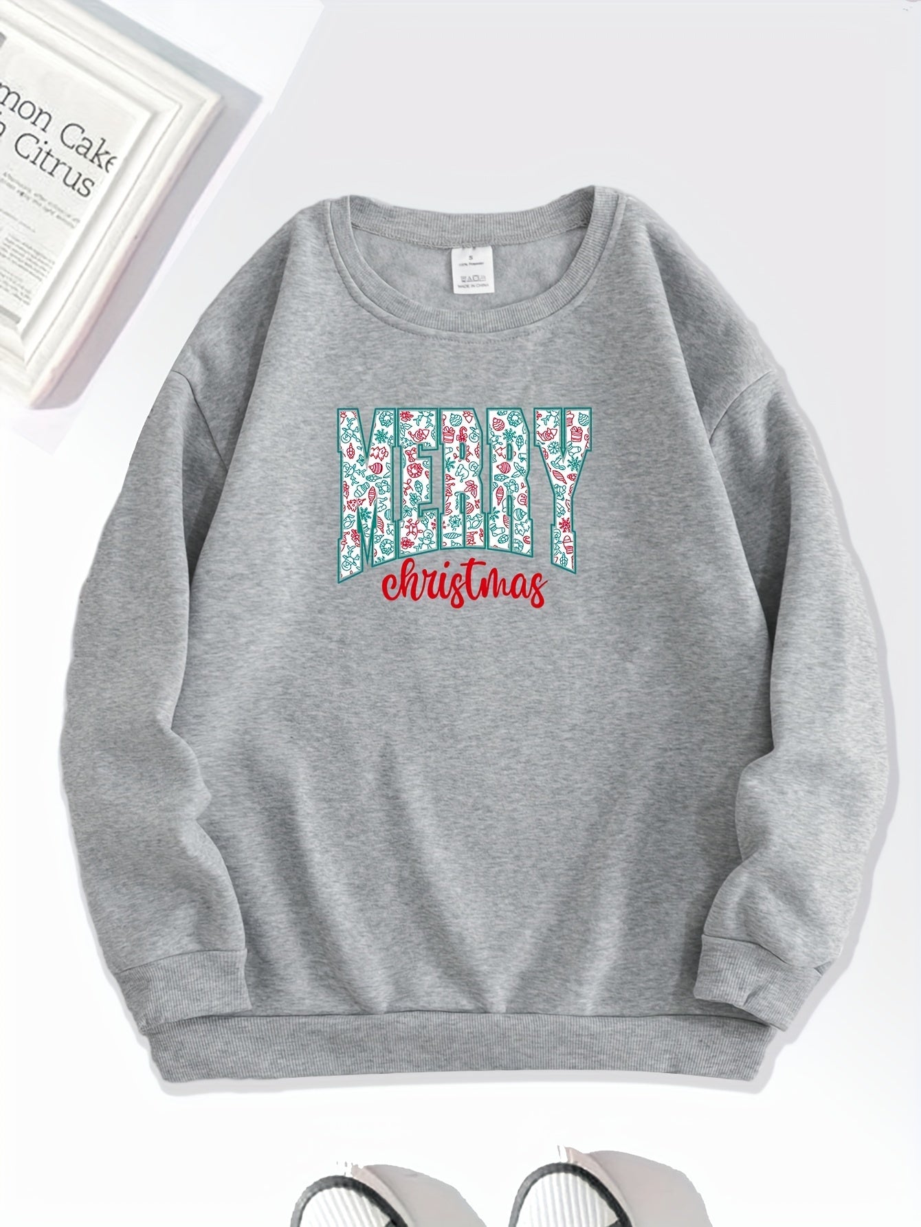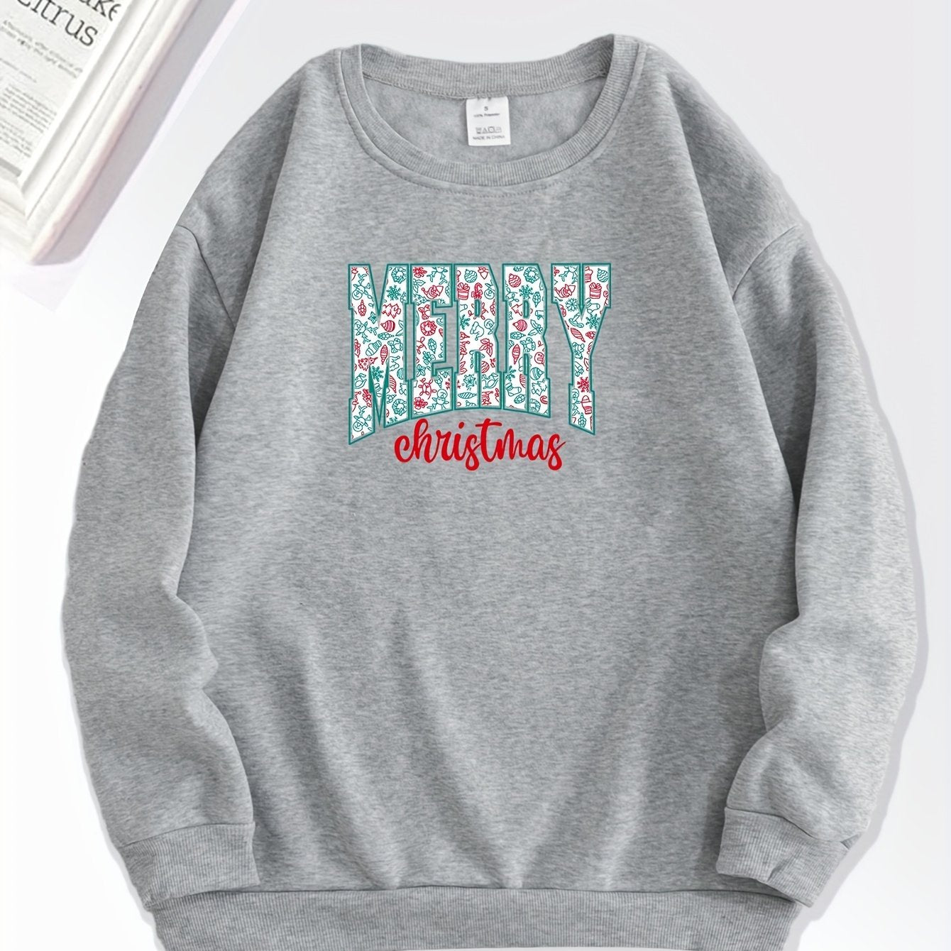Cute and Festive: Cartoon Merry Christmas Print Sweatshirt for Women