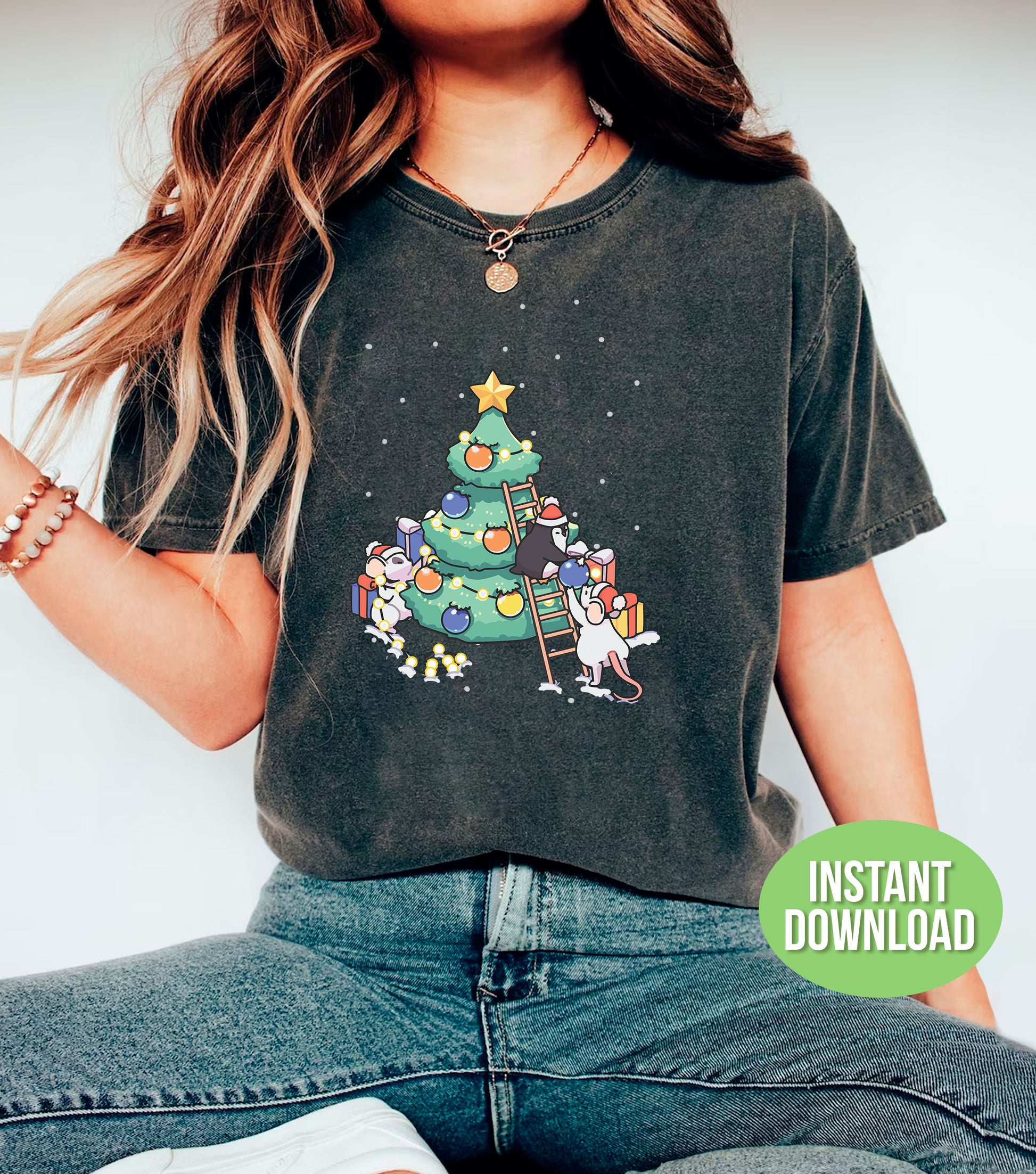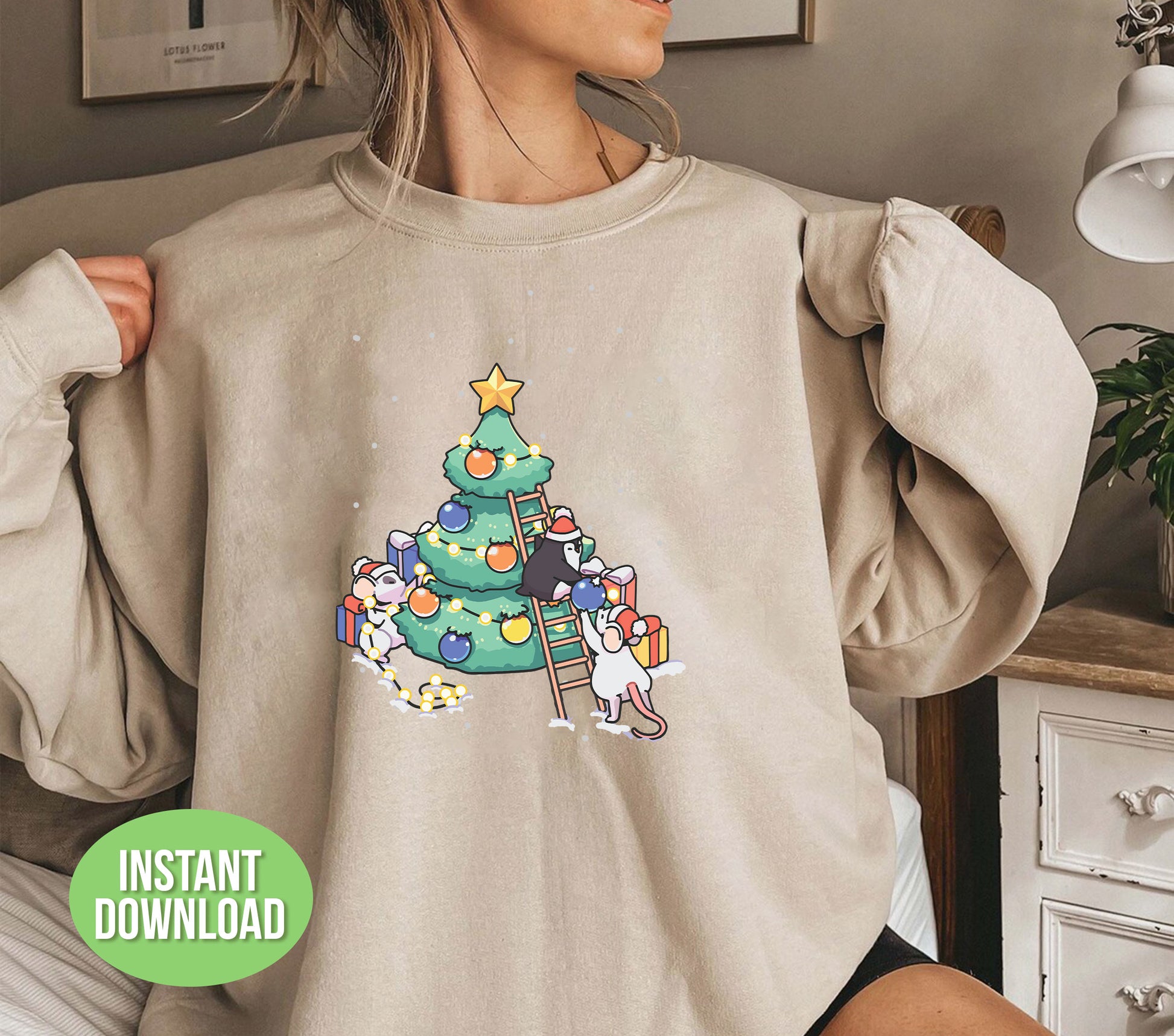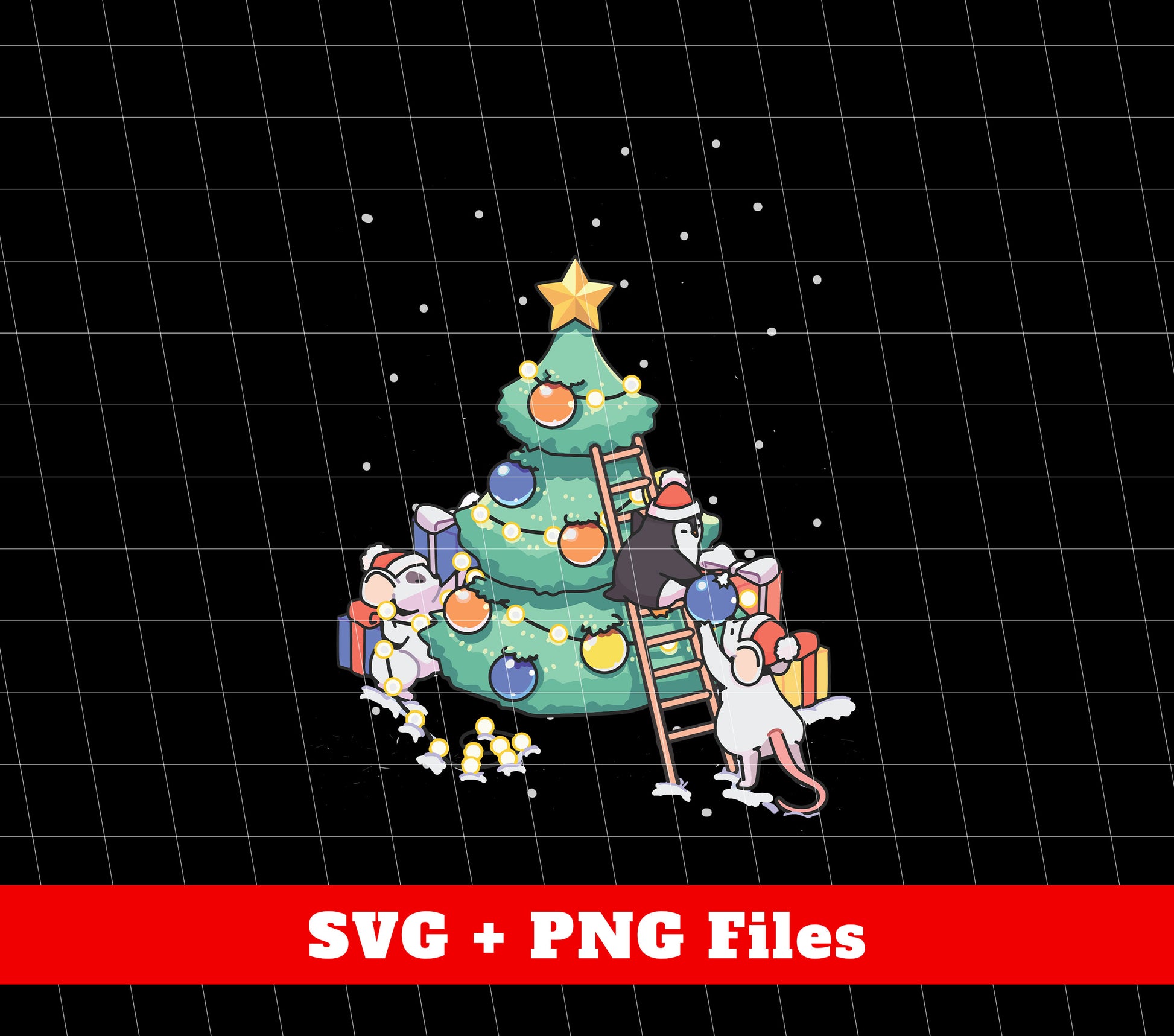 This adorable design features a cute baby mouse and penguin standing beside a Christmas tree, perfect for adding a touch of festive charm to your projects. With high-quality SVG and PNG files, it is perfect for sublimation and trendy Christmas decorations. Bring joy and cuteness to your holiday creations with this versatile design.