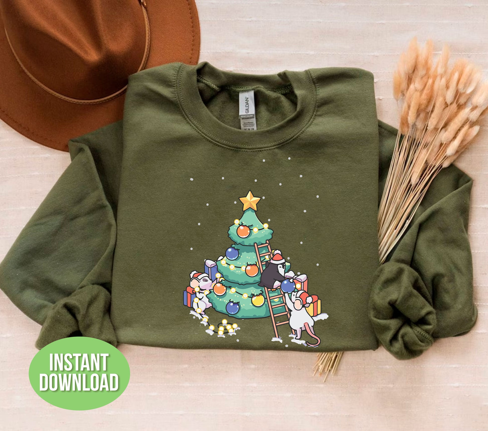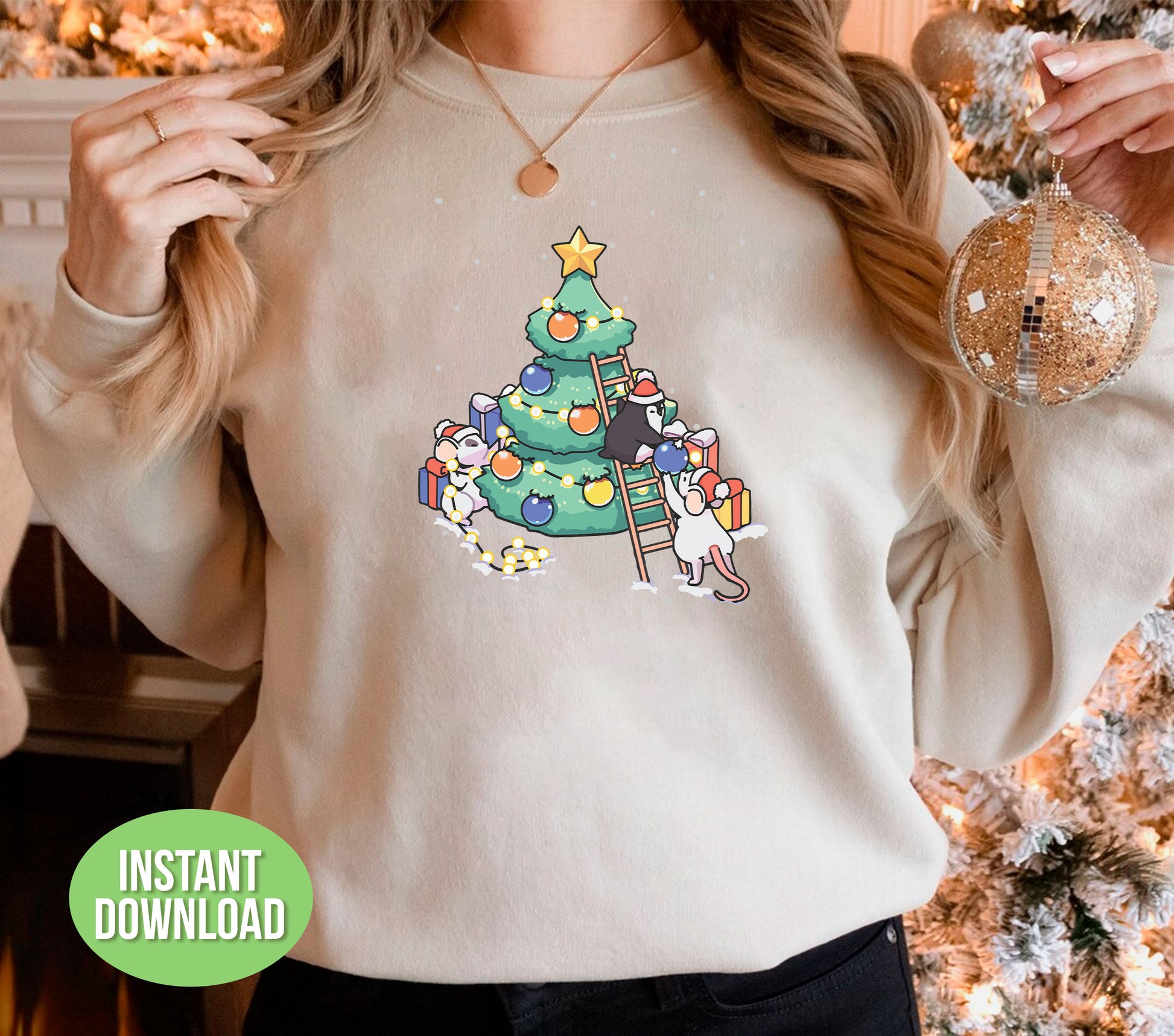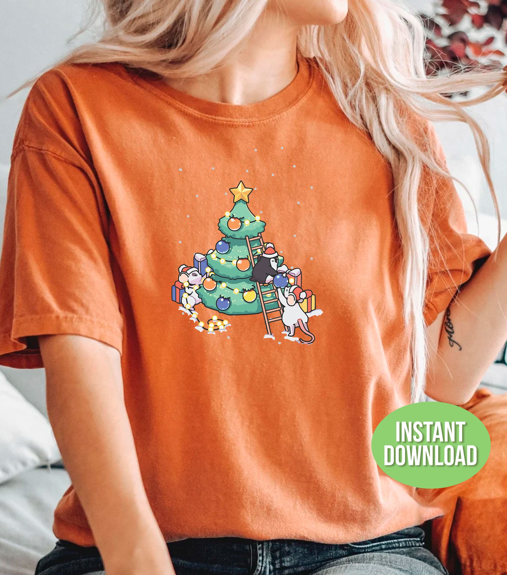 This adorable design features a cute baby mouse and penguin standing beside a Christmas tree, perfect for adding a touch of festive charm to your projects. With high-quality SVG and PNG files, it is perfect for sublimation and trendy Christmas decorations. Bring joy and cuteness to your holiday creations with this versatile design.