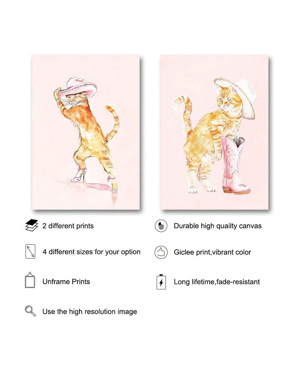 This set of posters features charming cat cowgirls that add a touch of feminine charm to any space. Printed on durable canvas, these prints are perfect for adding a unique touch to home decor. Perfect for cat lovers, fashion enthusiasts, or those who appreciate adorable and stylish artwork.