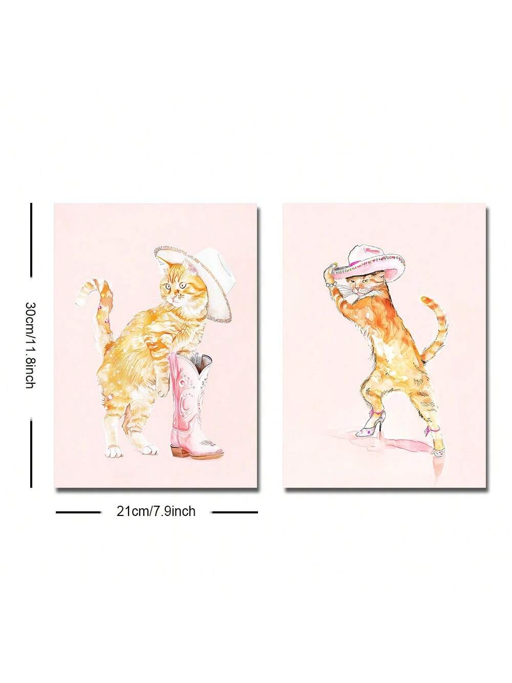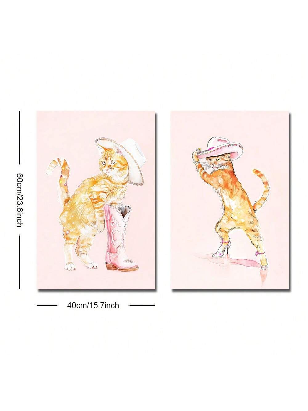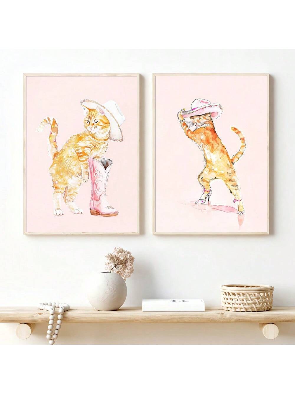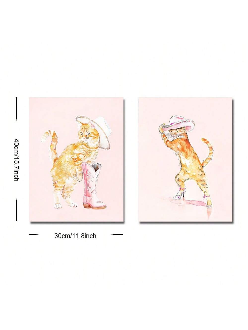 Cute Cat Cowgirl Art Poster Set: Girly Fashion Canvas Prints for Home Decoration