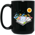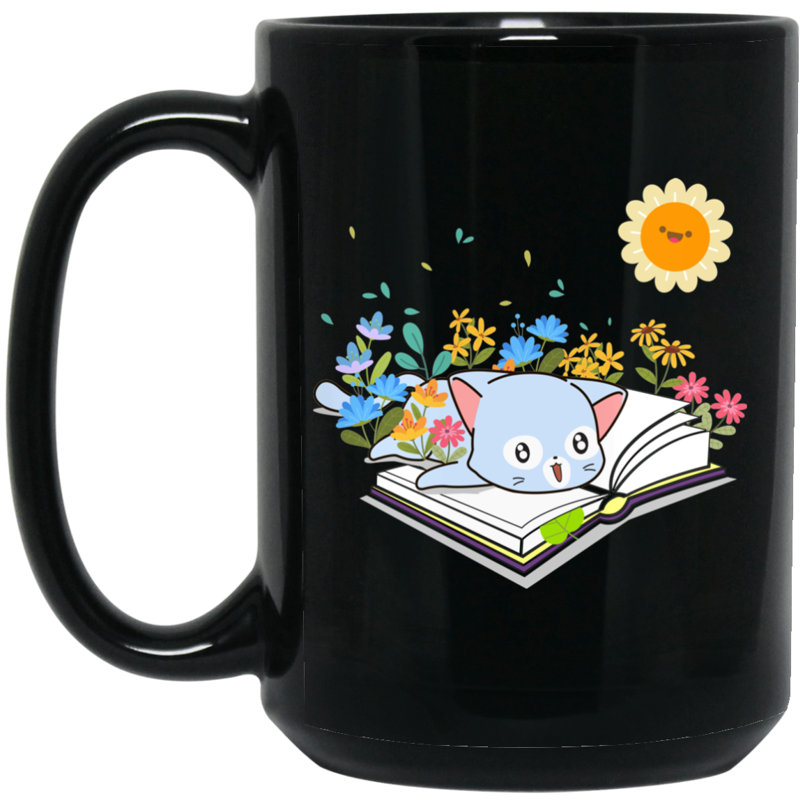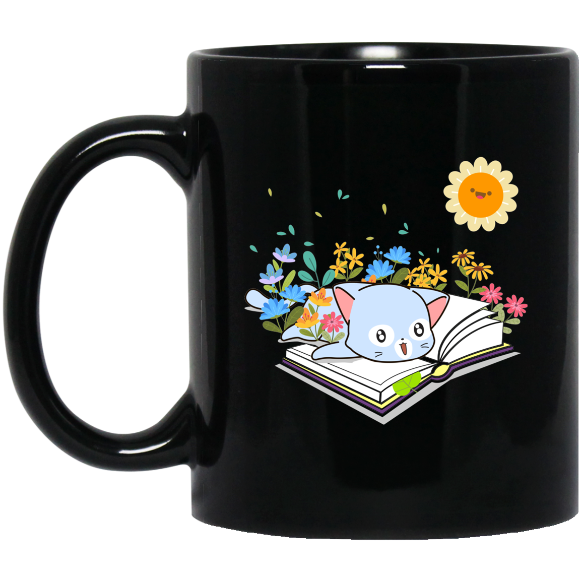 Cute Cat In Spring, Cat With Book Under The Sun Black Mug