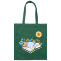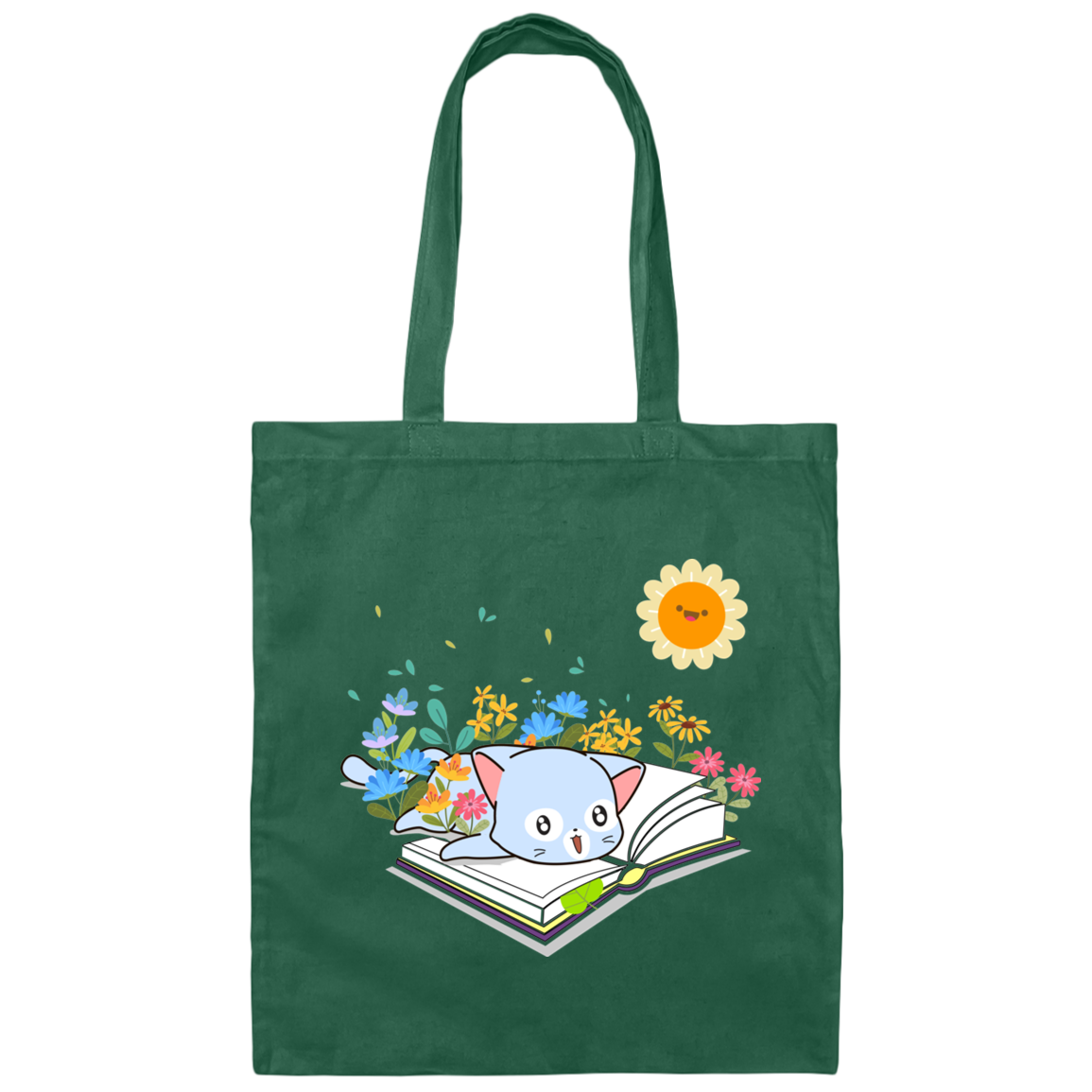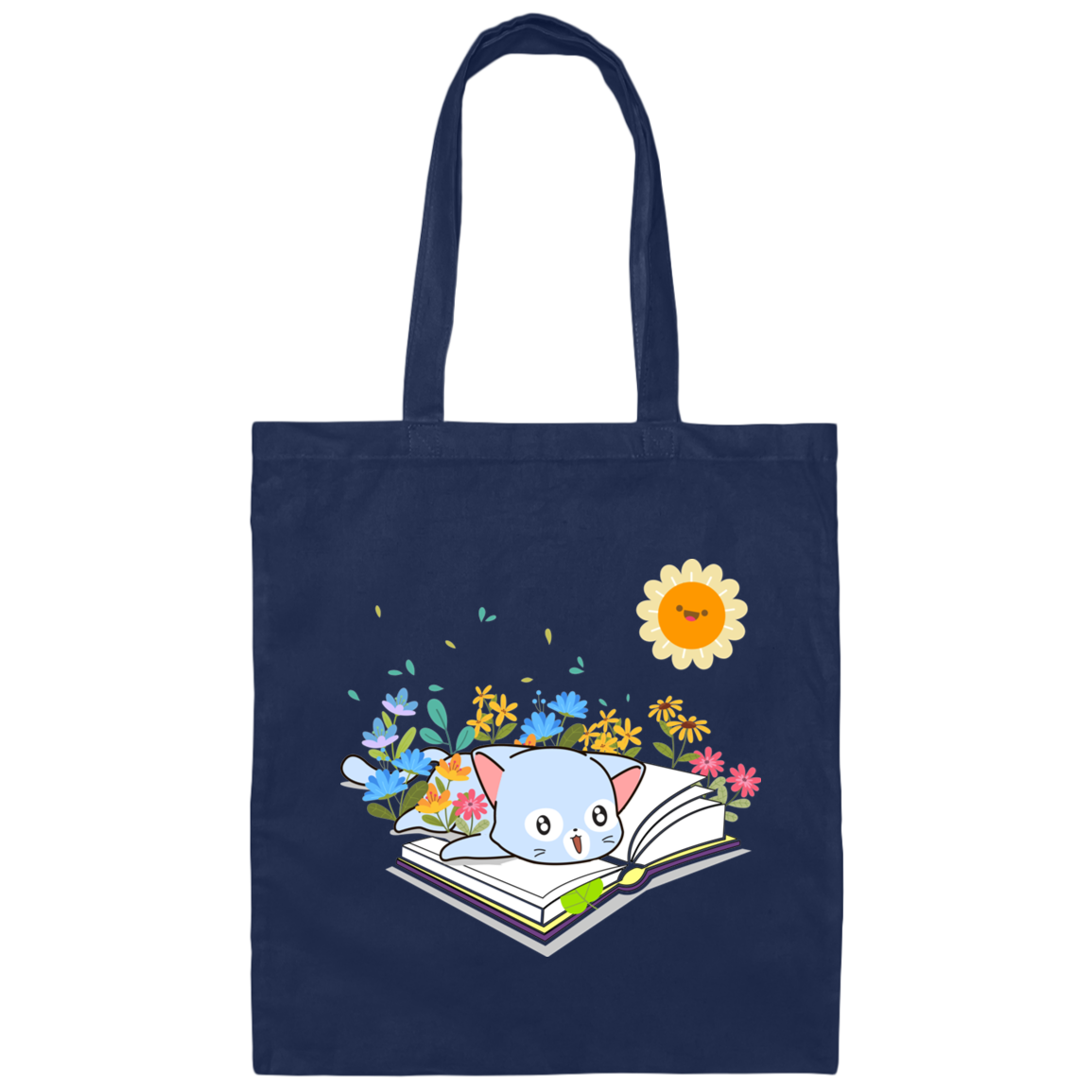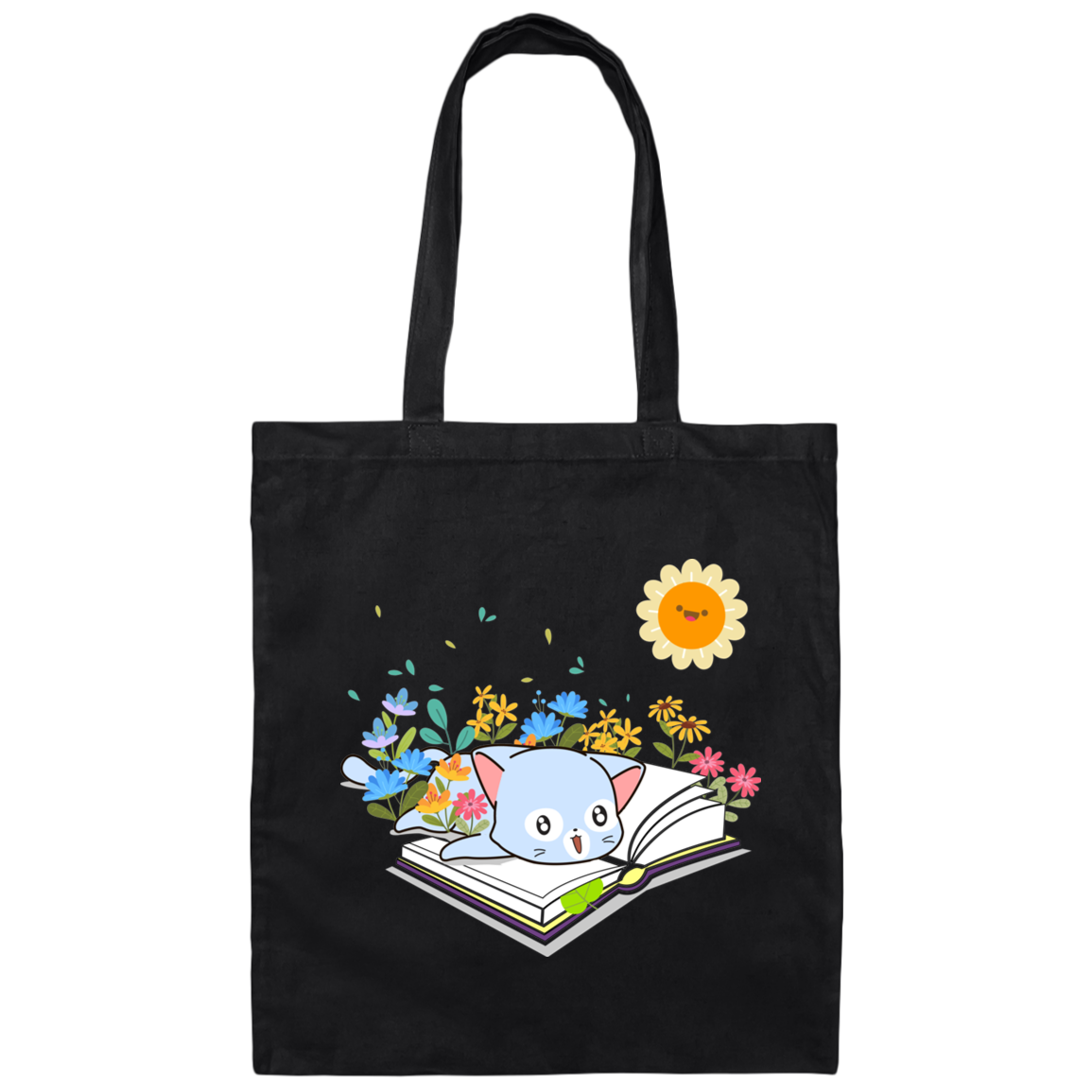 Cute Cat In Spring, Cat With Book Under The Sun Canvas Tote Bag