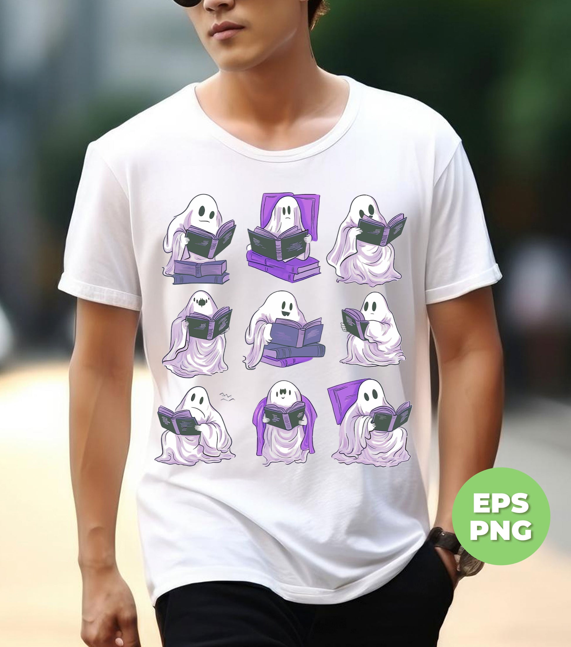 Cute Ghost, Happy Halloween, Bookworm, Bookworm Halloween, Digital Files, Png Sublimation