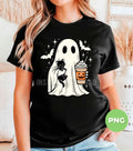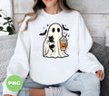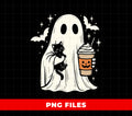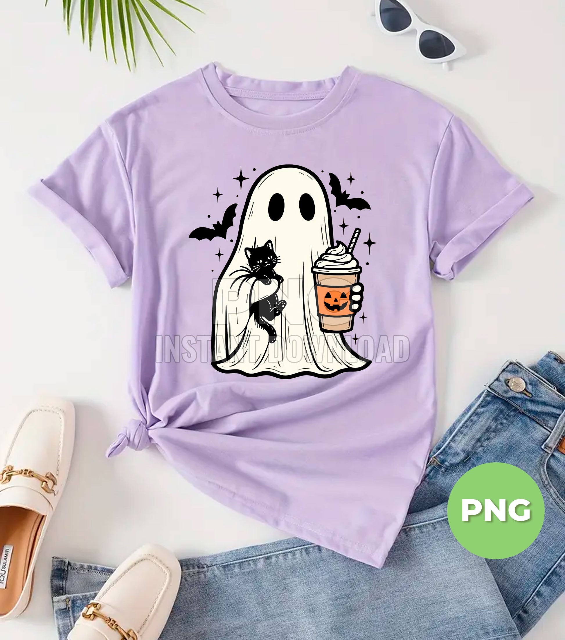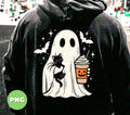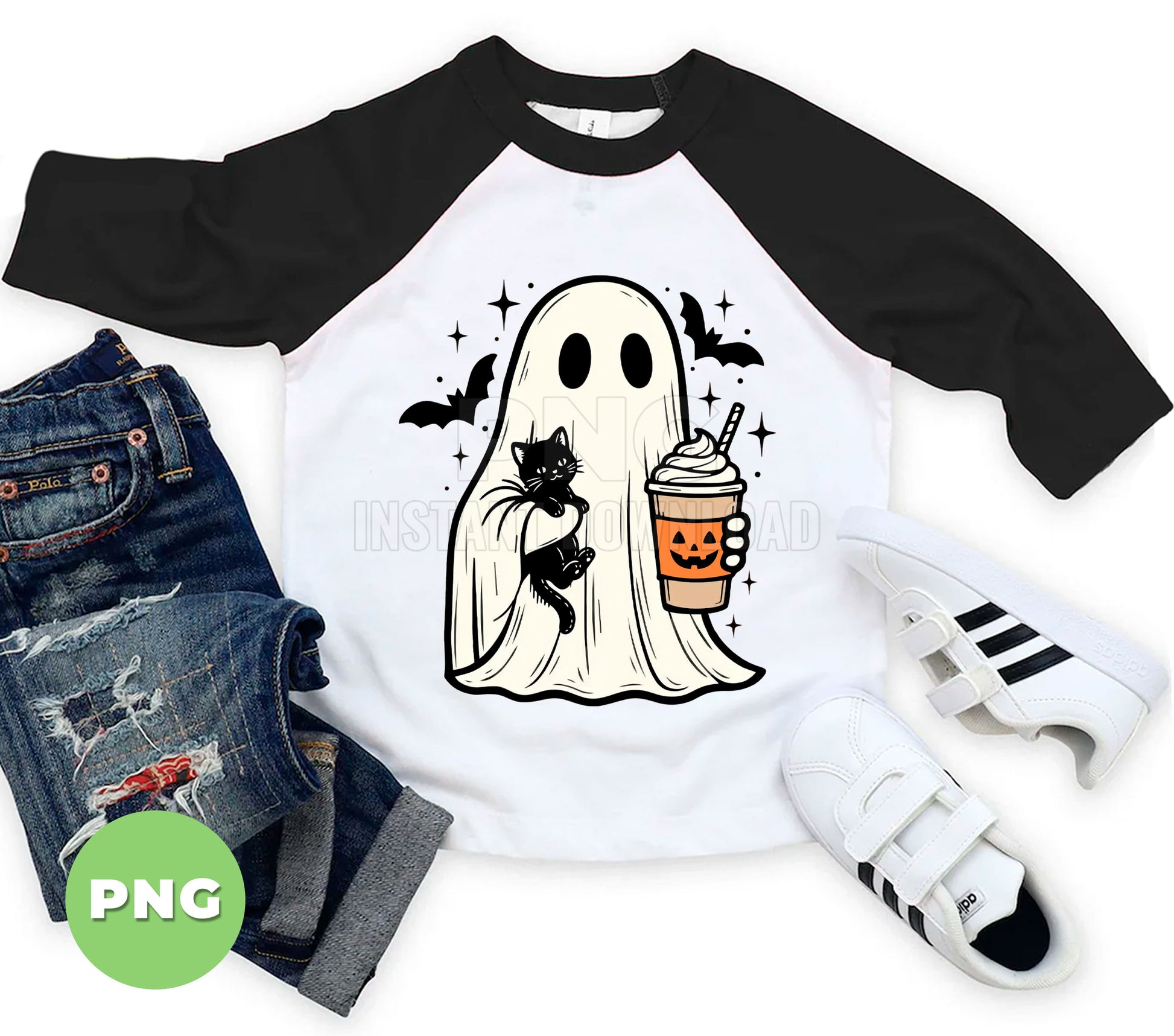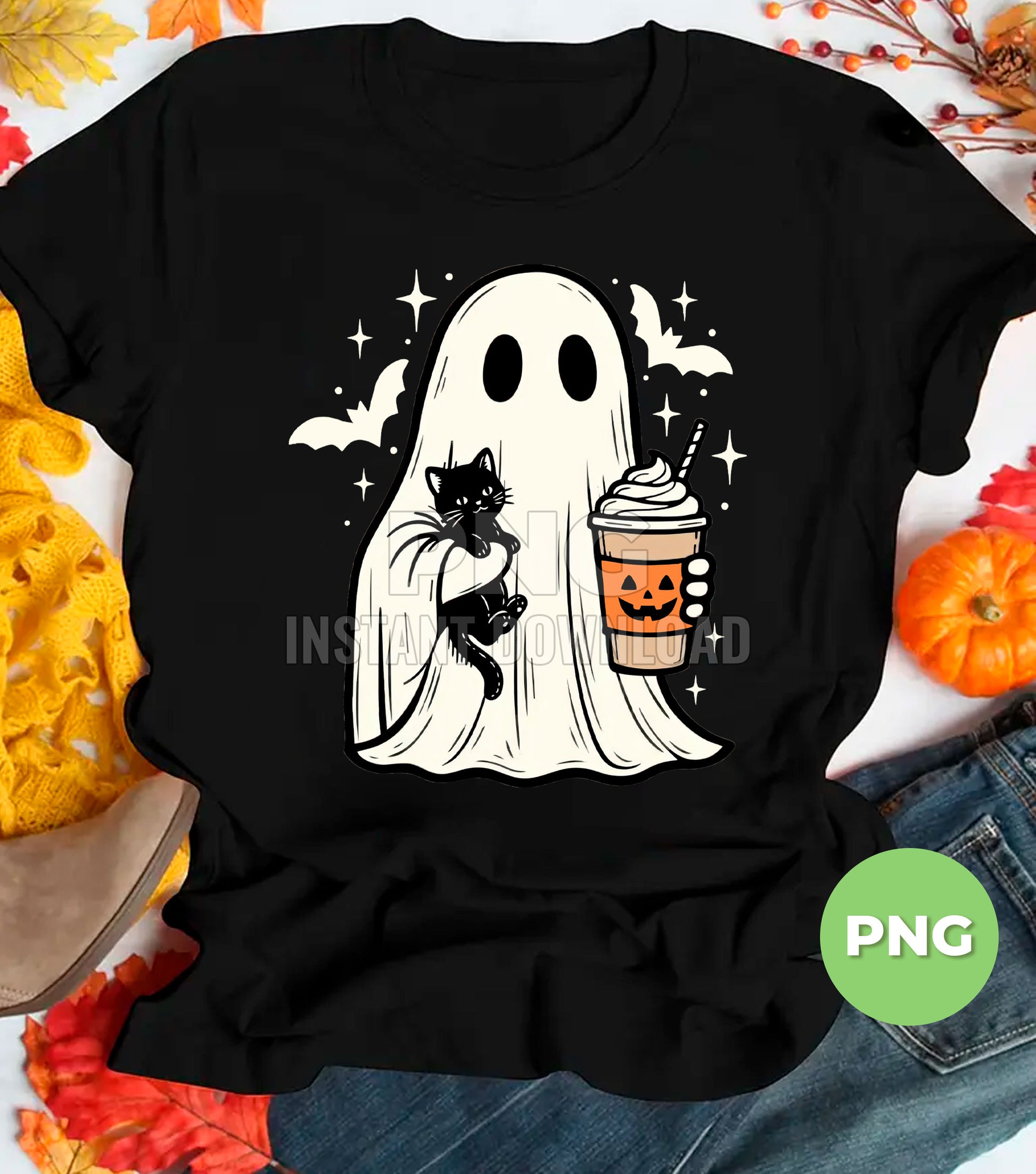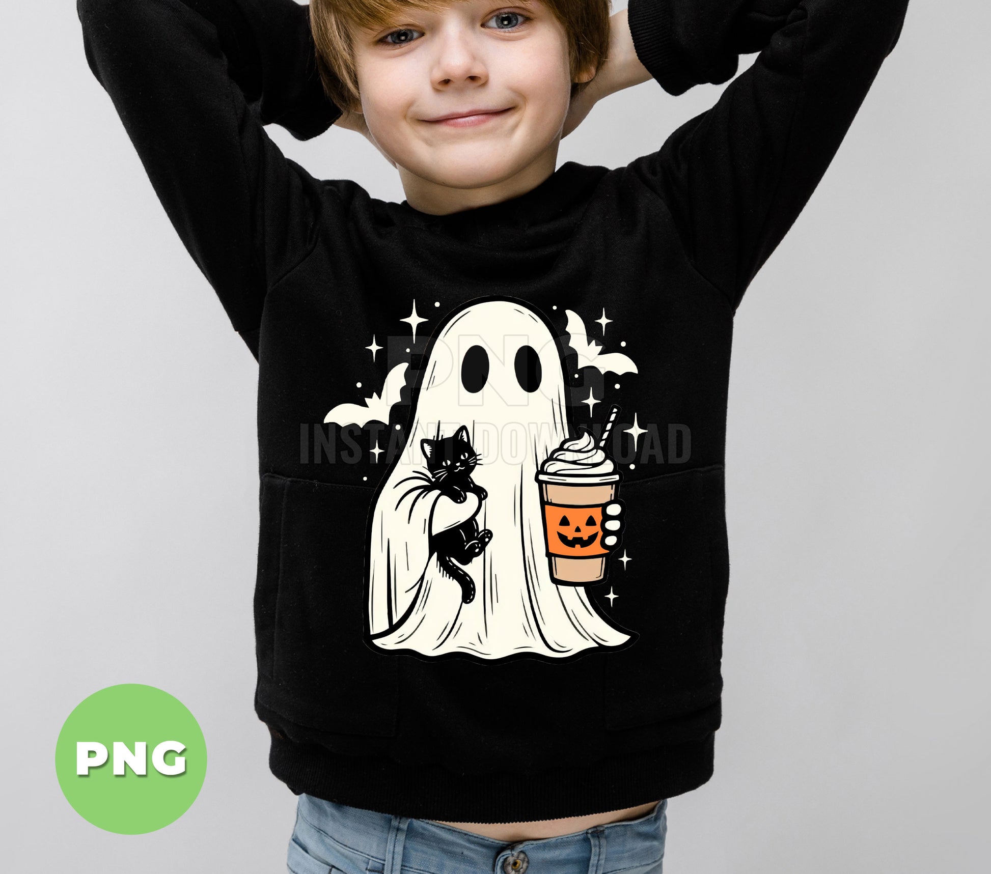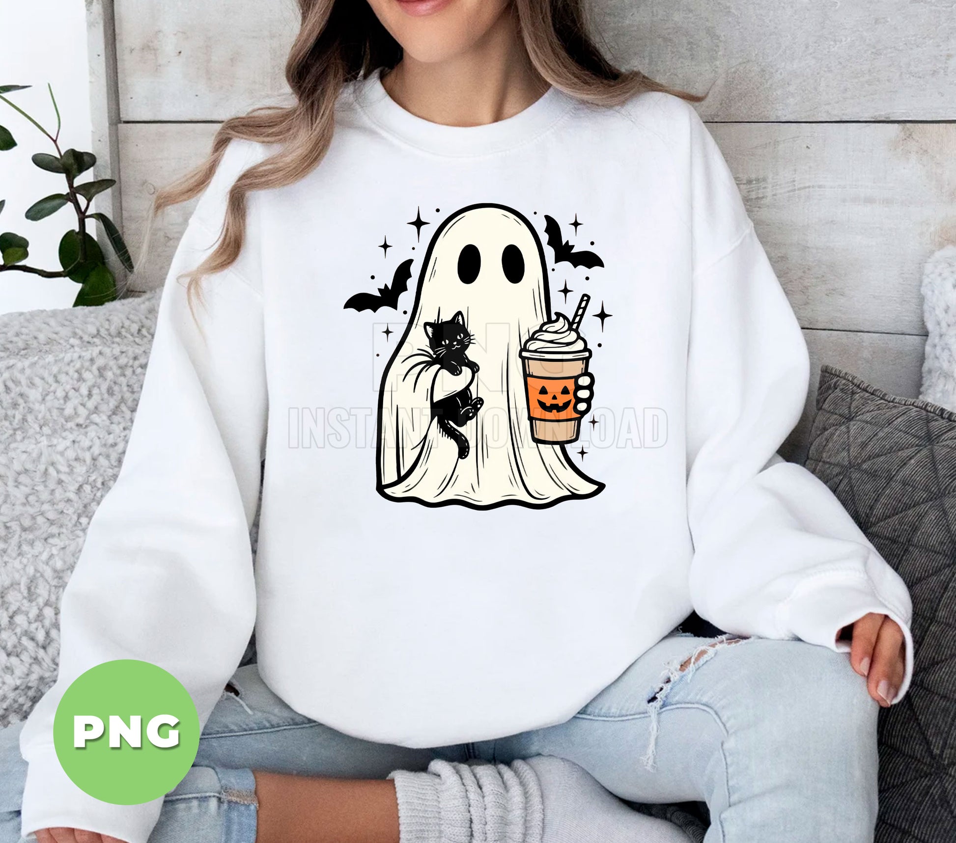 Cute Ghost Holding Cat Halloween Coffee, Pumpkin Cup Boo Ghost, Spooky Bat Stars Clipart, Fall Halloween Cute Ghost PNG