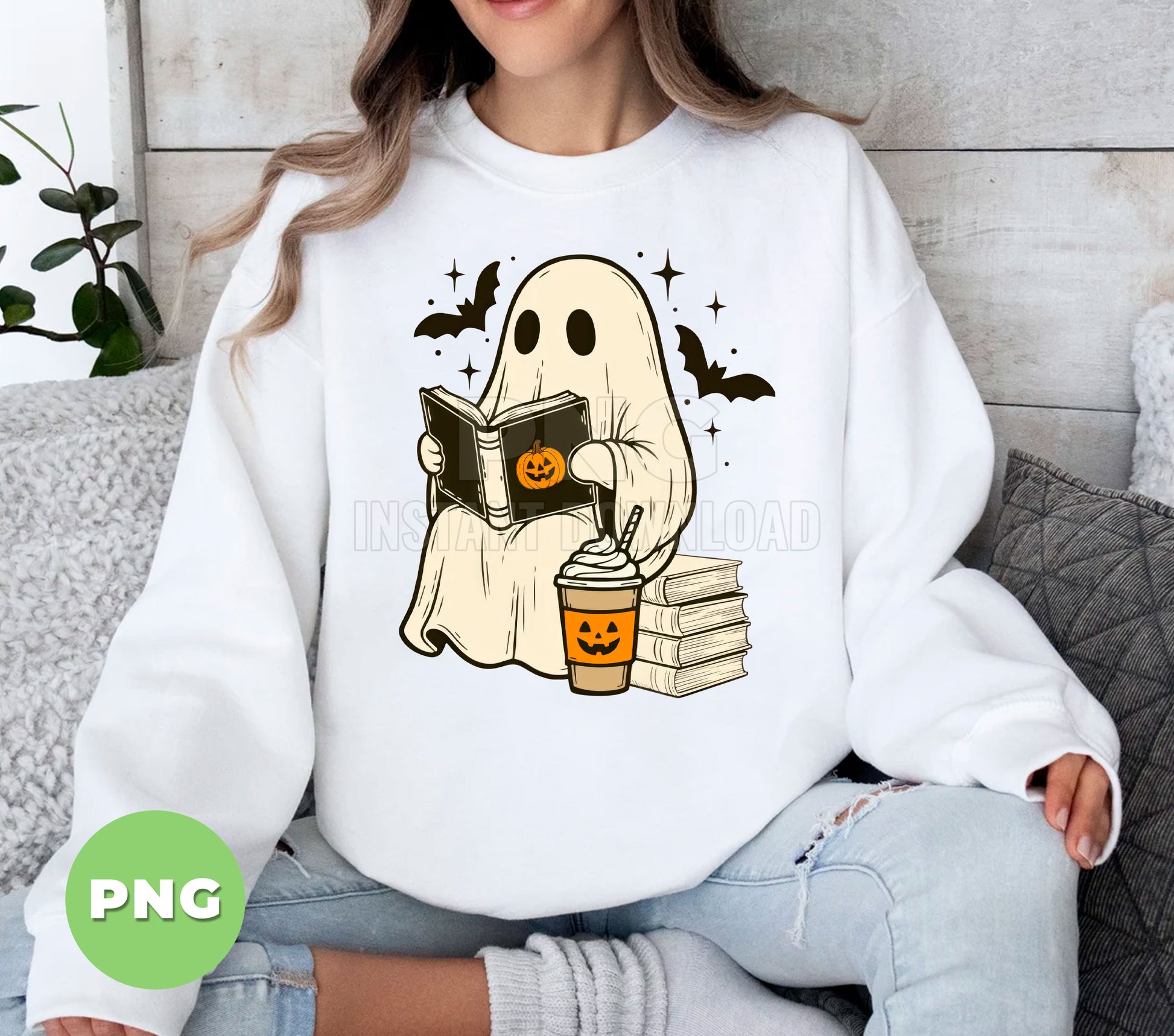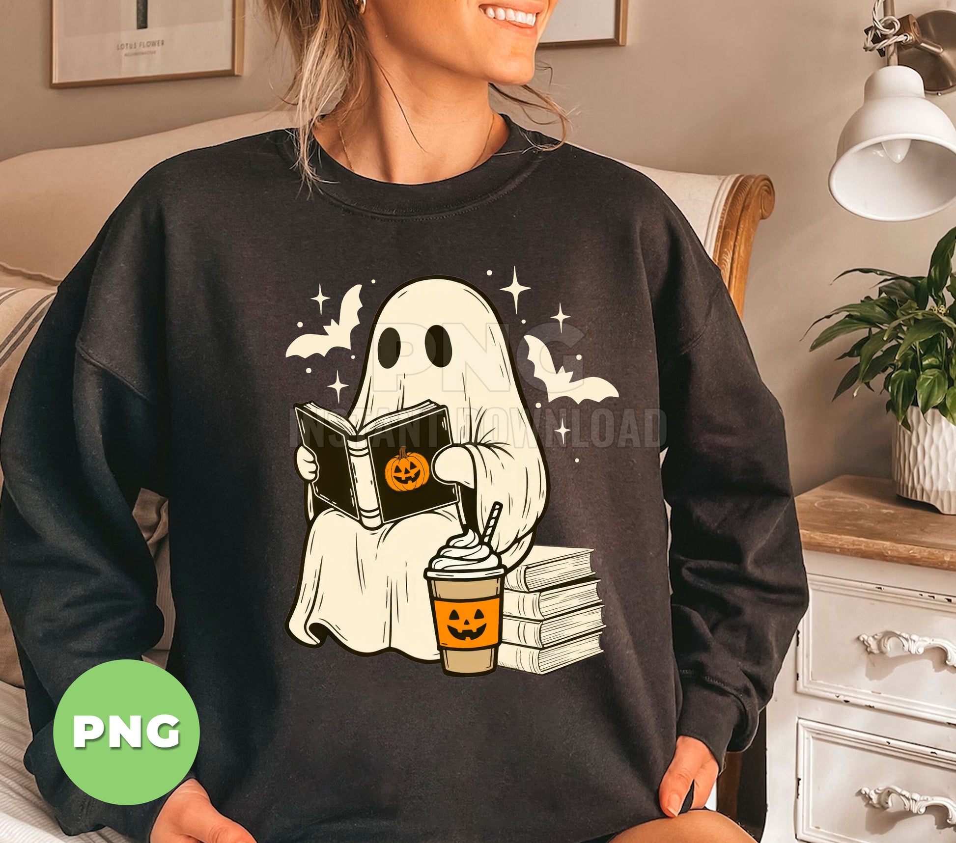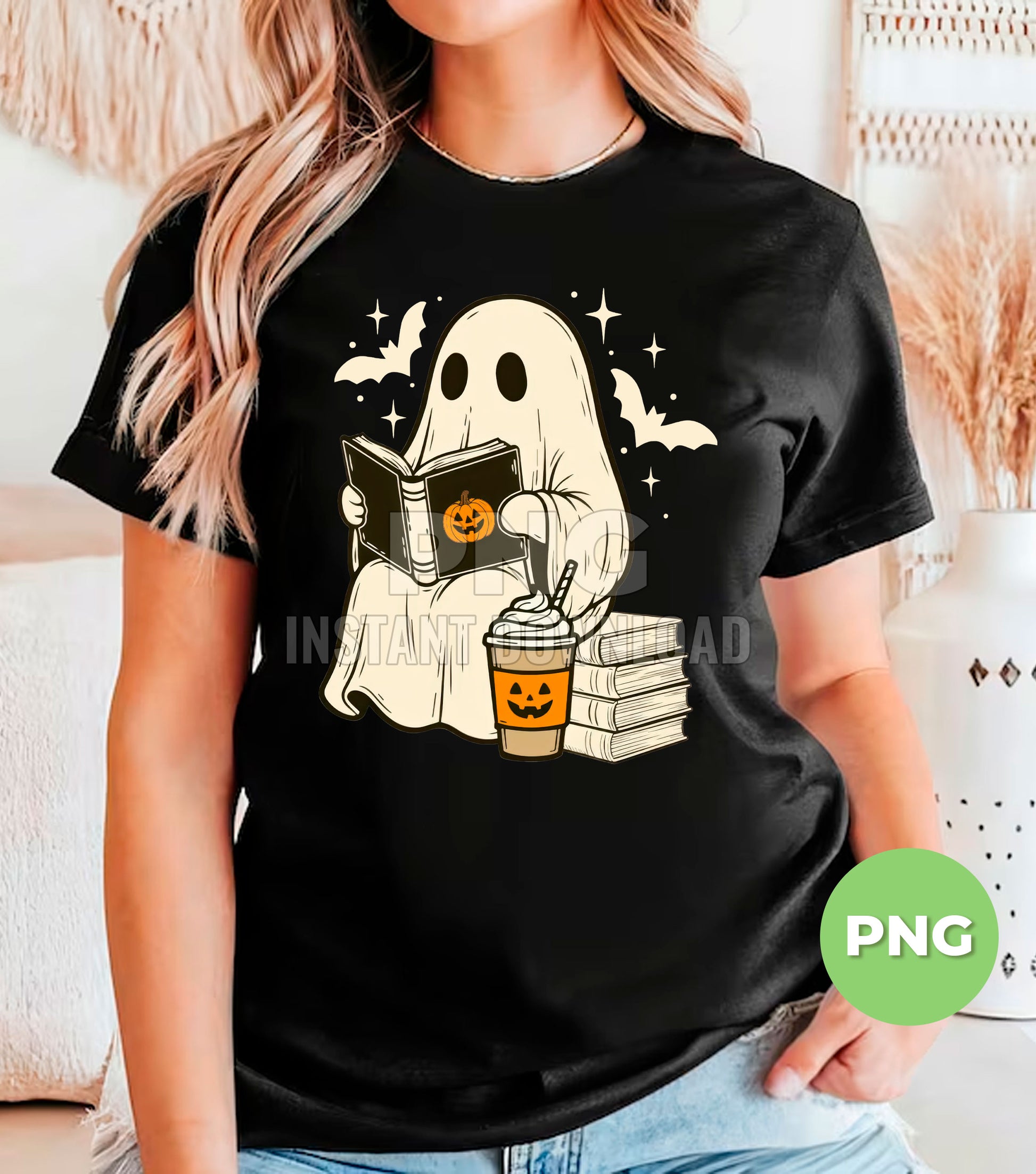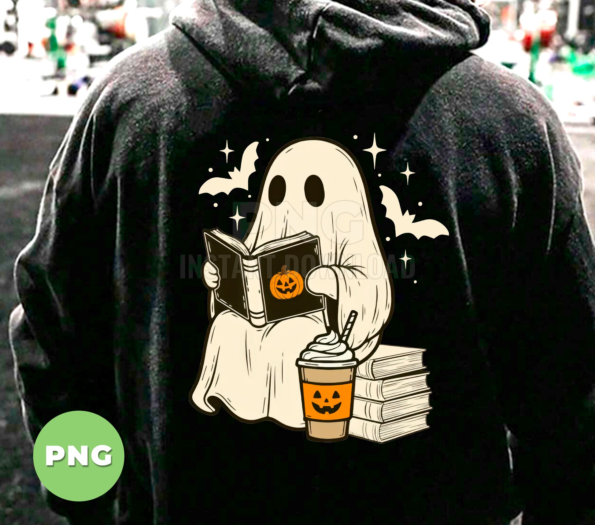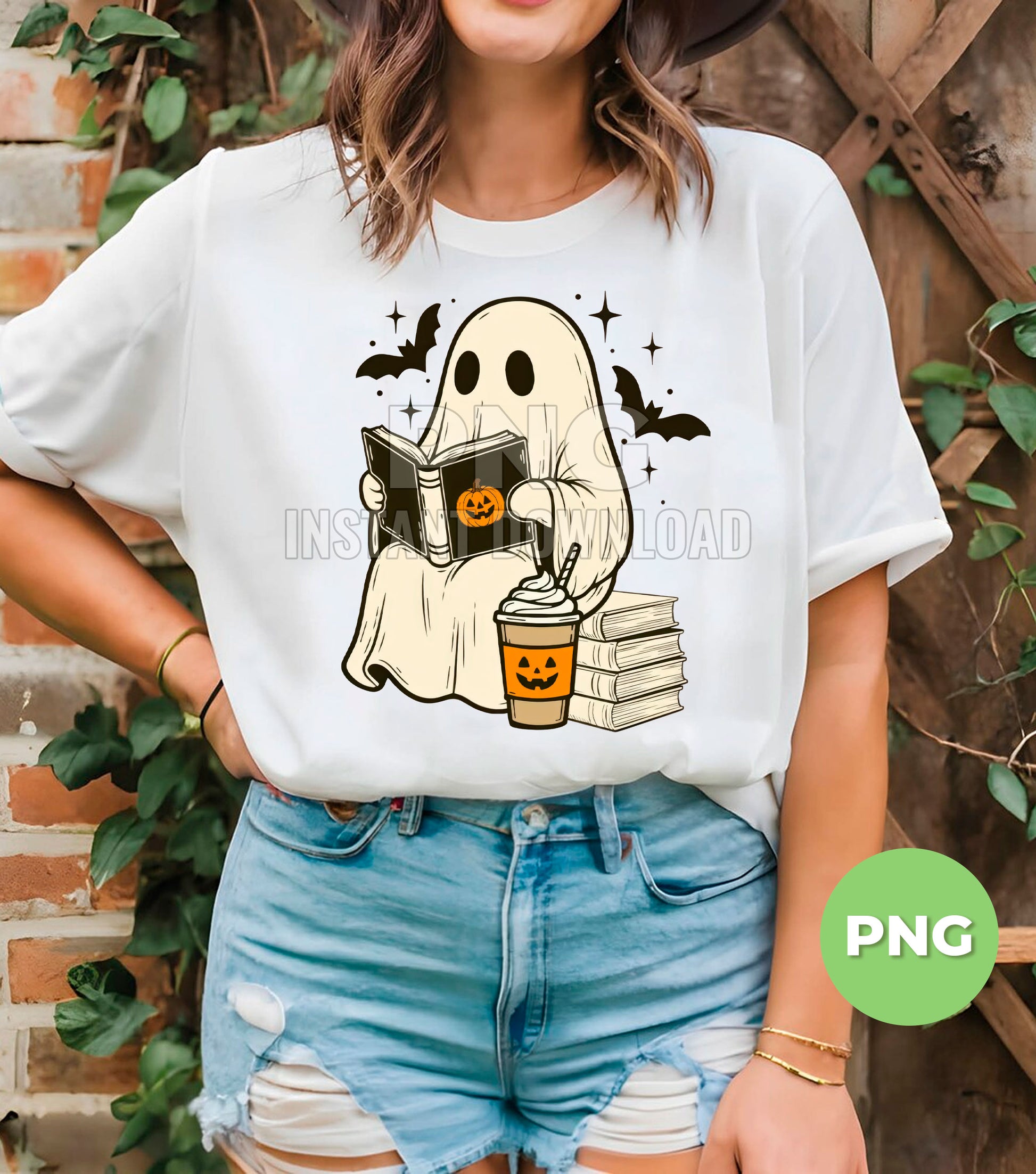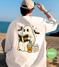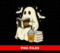 Cute Ghost Reading Book Halloween Coffee, Pumpkin Cup Boo Ghost, Spooky Bat Stars Clipart, Fall Book Lover Ghost