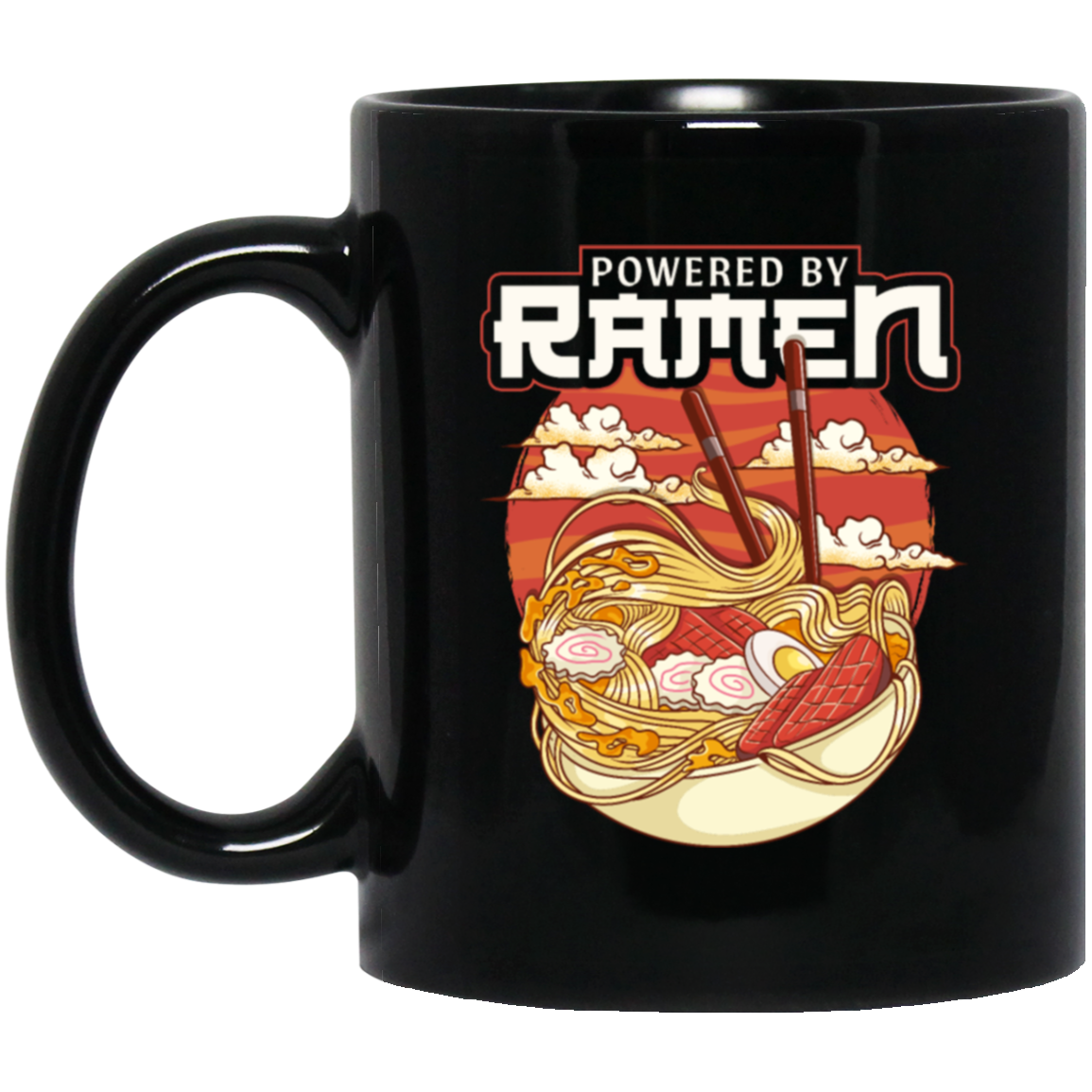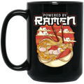 Cute Japanese Noodle Gift, Funny Anime Gift, Kawaii Powered By Ramen Black Mug