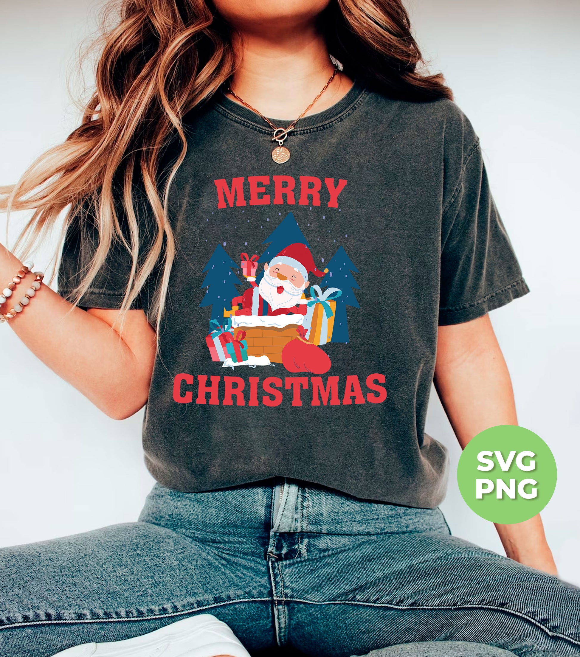 Cute Santa, Happy Santa, Funny Santa, Santa With Gift, Digital Files, Png Sublimation