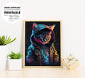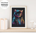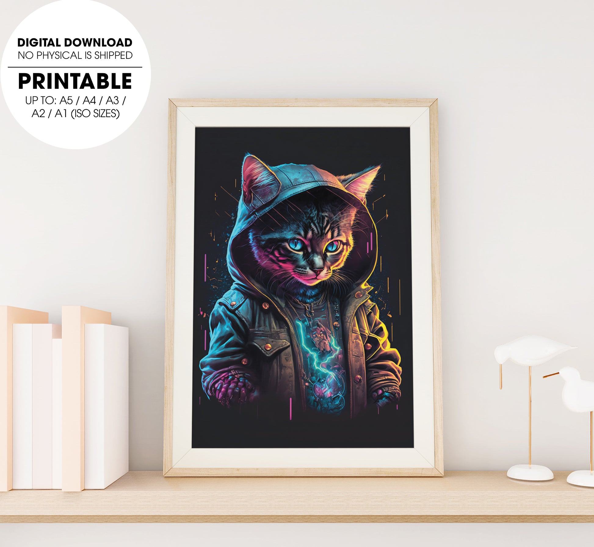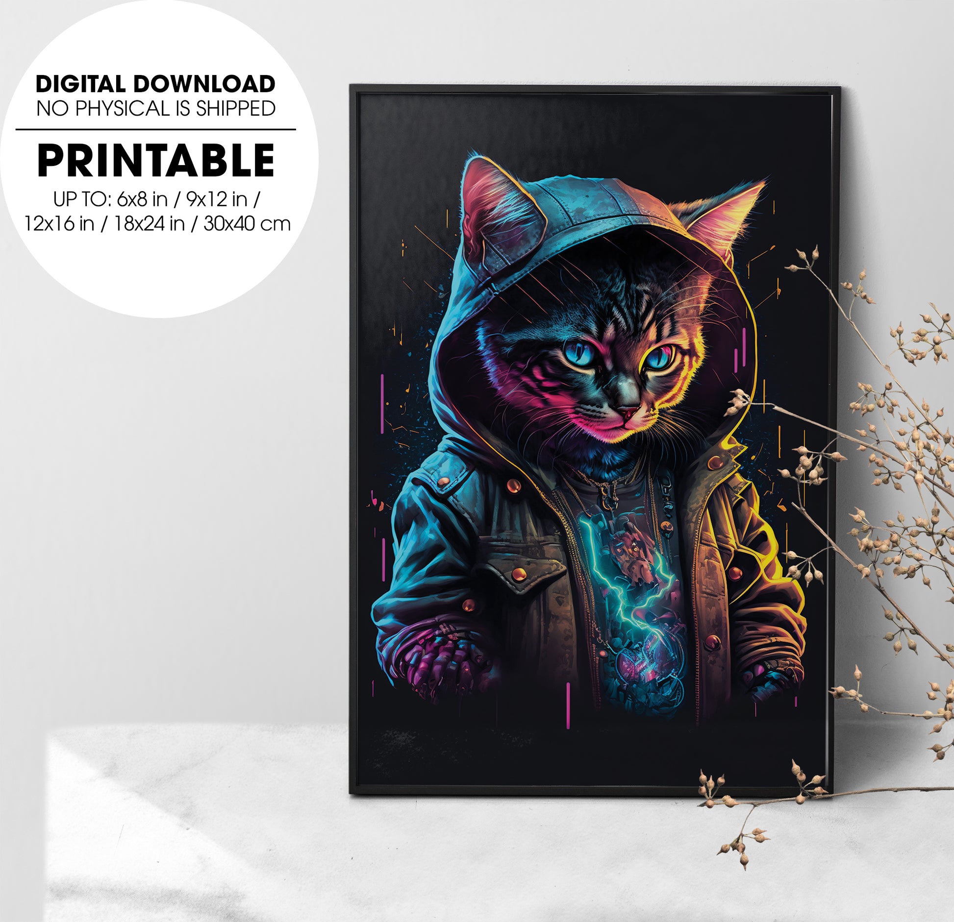 Cyberpunk Cute Kitten Dressed As A Mage, Negative Space, Poster Design, Printable Art
