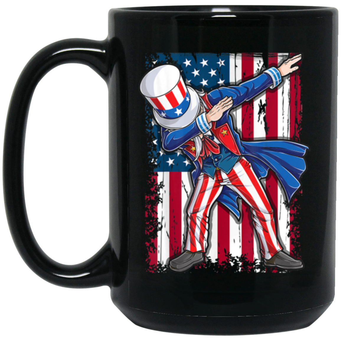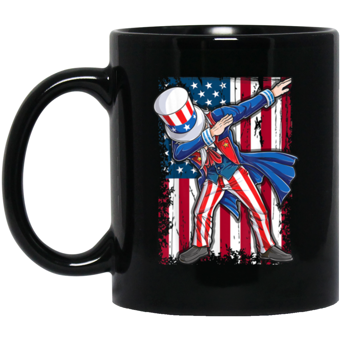 Dabbing Uncle, 4th Of July Gift, Great July 4th, American Flag, US Dabbing Black Mug