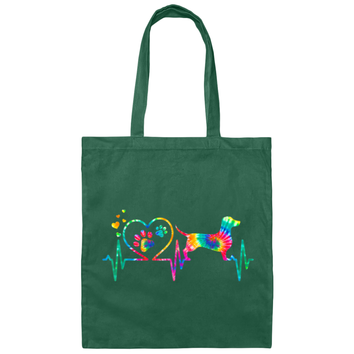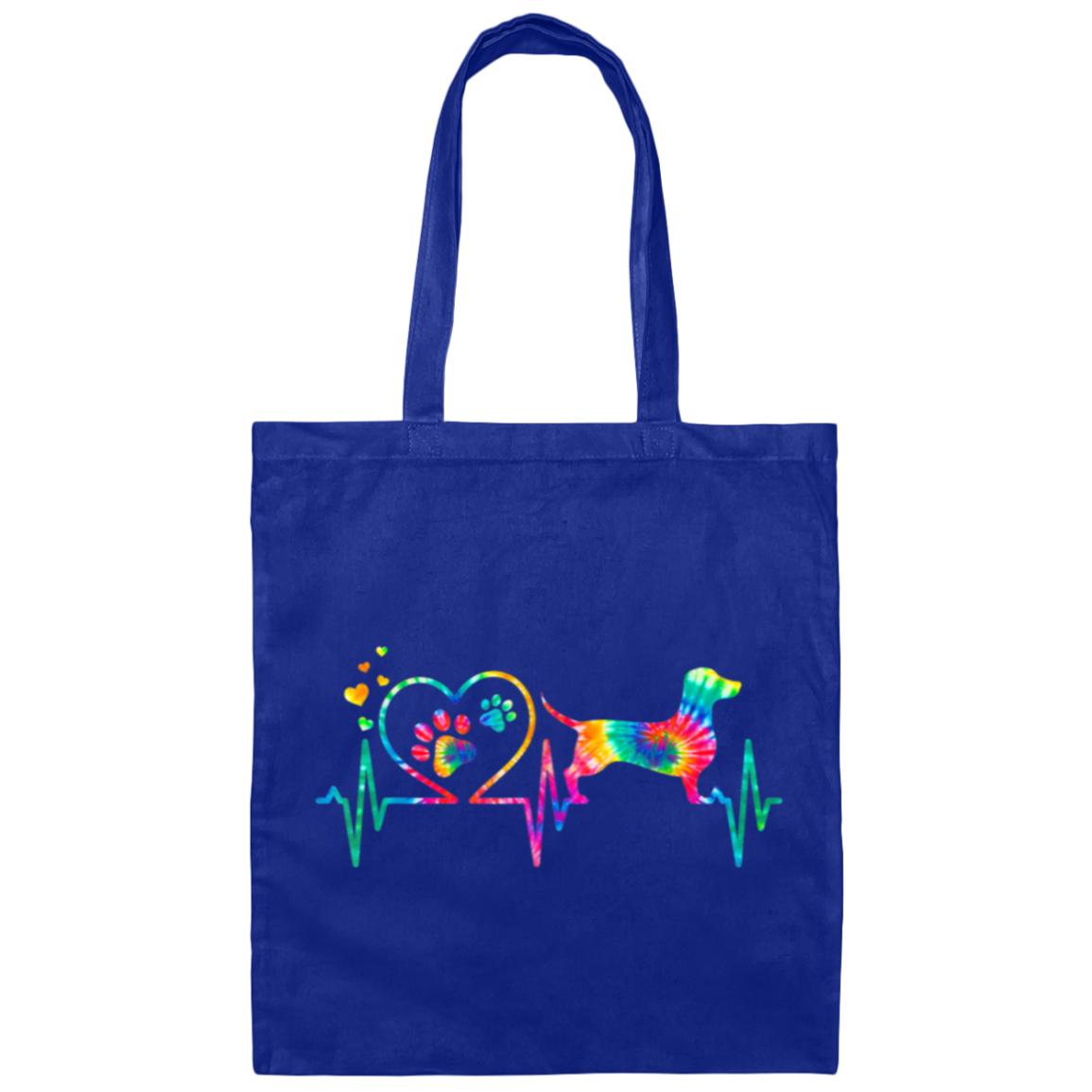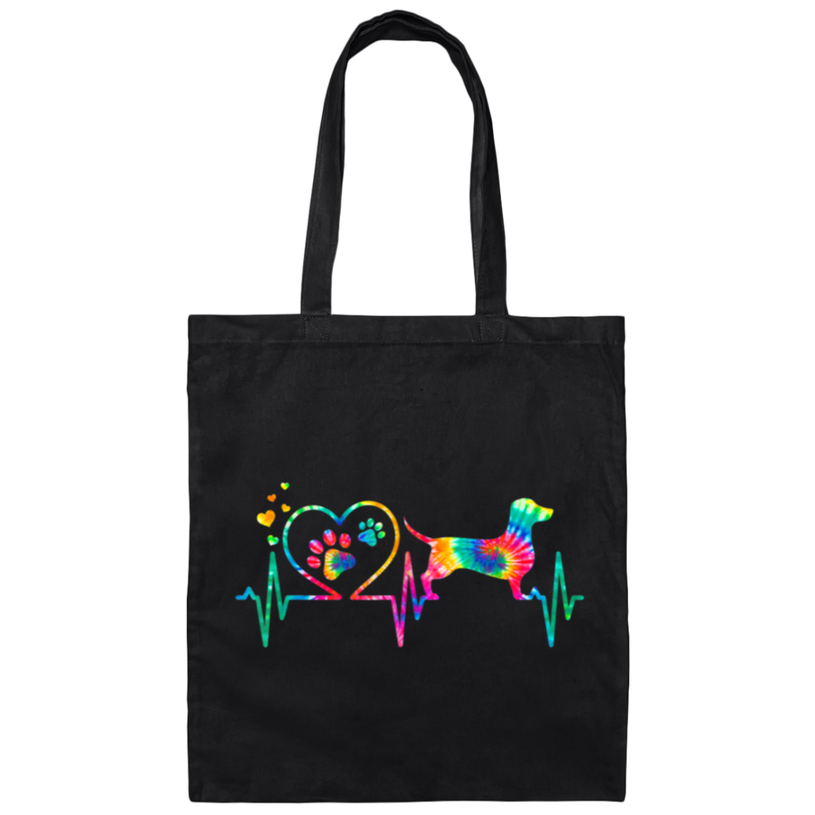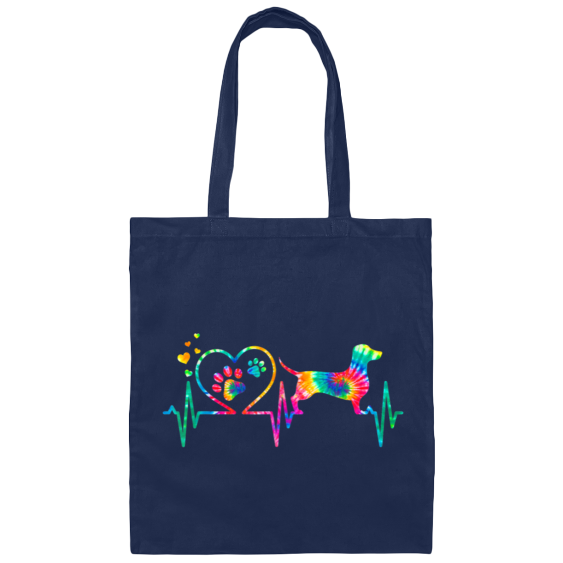 Dachshund Doxie Weenie Mom Dad Heartbeat Tie Dye Dog Canvas Tote Bag